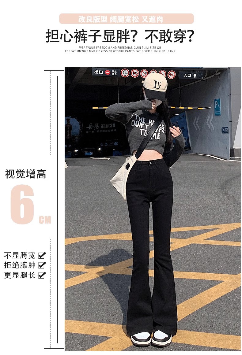 블랙 마이크로 플레어 진 여성용 2025 얇은 하이웨이스트 슬림 핏 핫걸 아메리칸 레트로 신축성 있는 말굽 바지스토어 가기