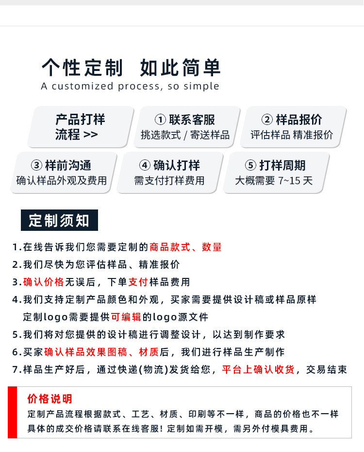(定制款如需开模,需另外付开模费用)