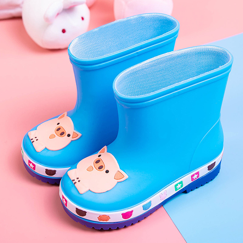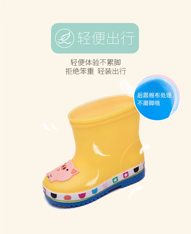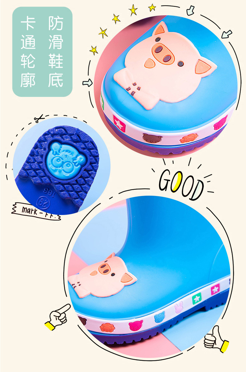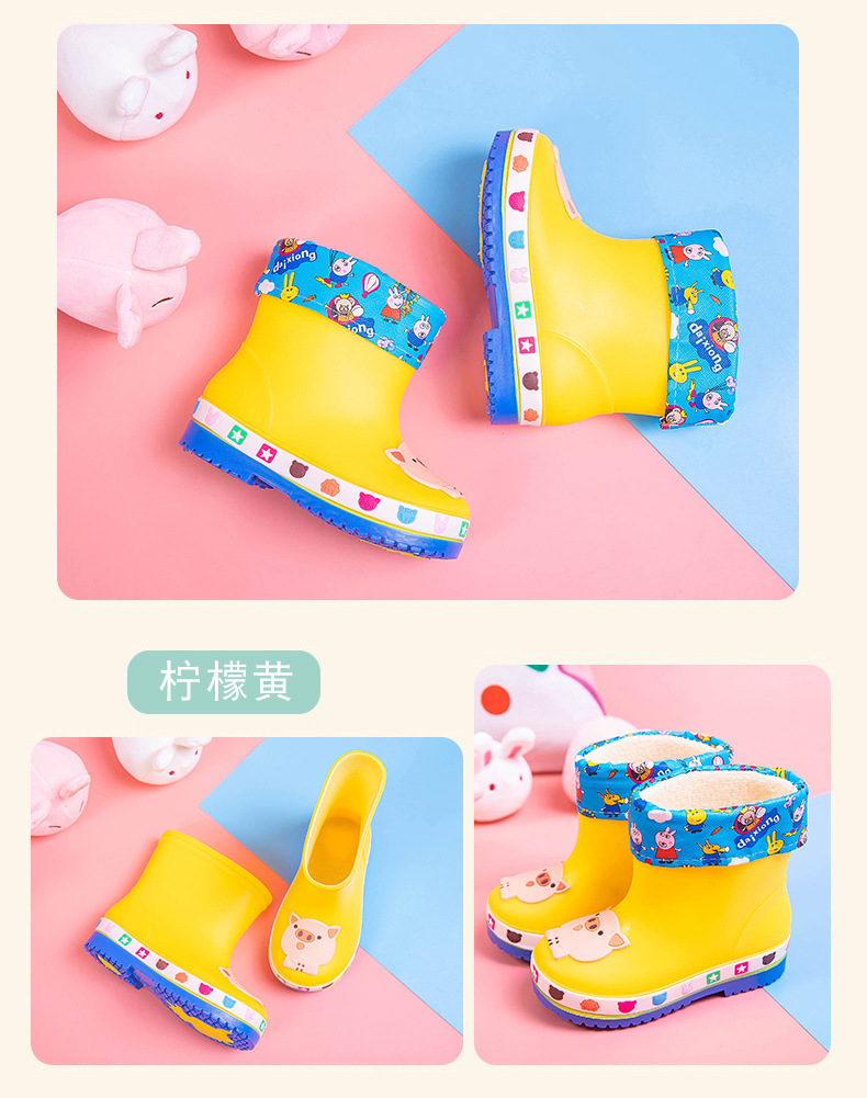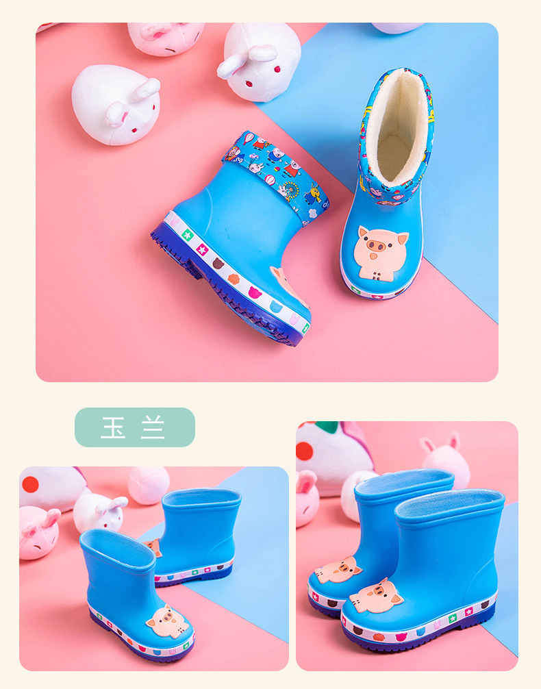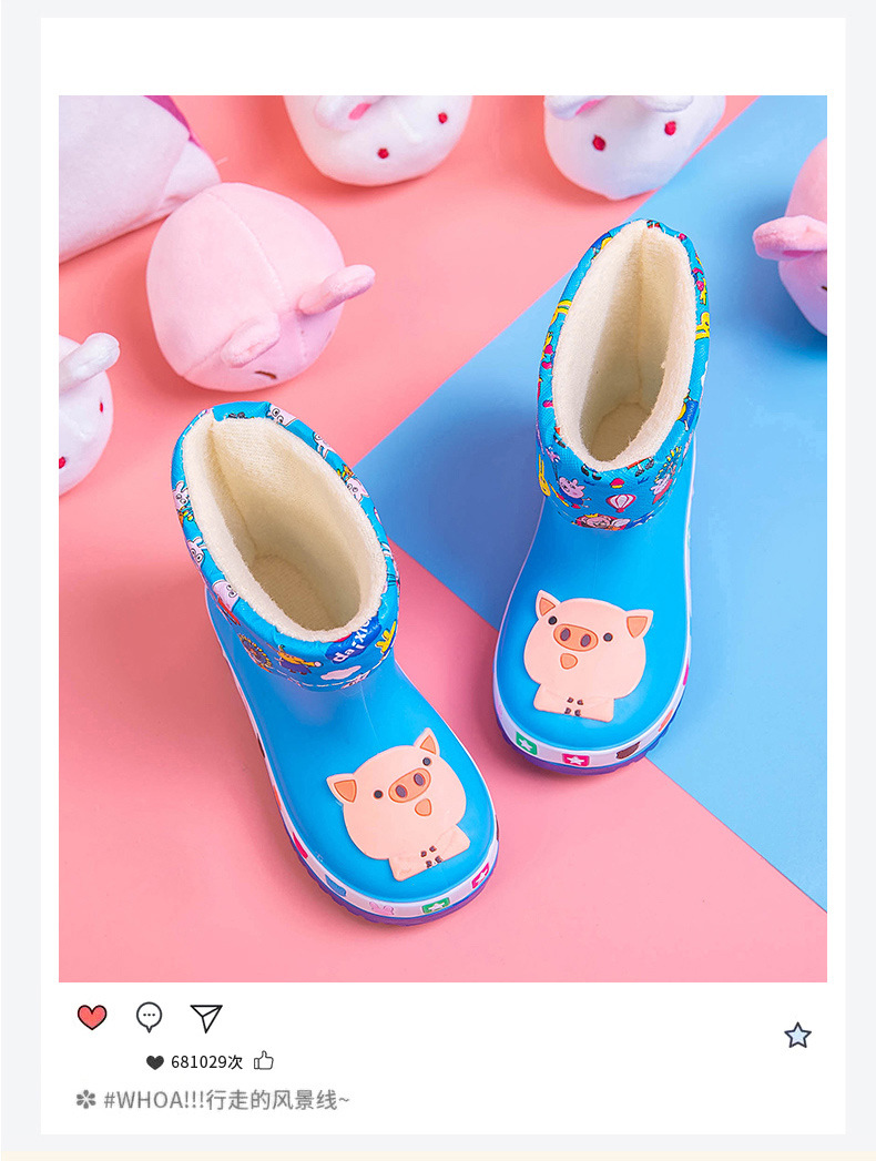 Taobao 폭발 돼지 만화 어린이 비 신발 소년과 소녀 아기 방수 벨벳 따뜻한 비 신발 국경스토어 가기