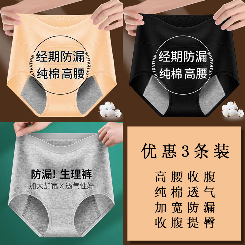 • 세 쌍의 생리적 바지 [다크 파우더/진한 베이지/블랙]]