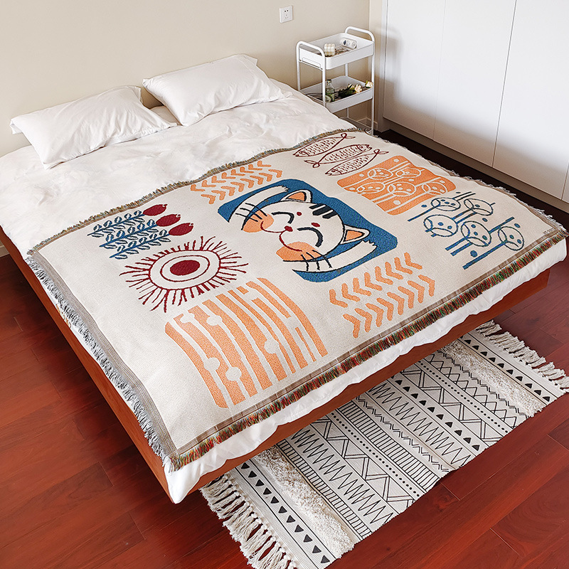 보헤미안 스타일 면사 자카드 커버 담요 침대 끝 장식 수건 호텔 린넨 호텔 홈스테이 침대 끝 수건스토어 가기