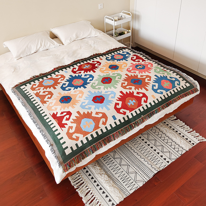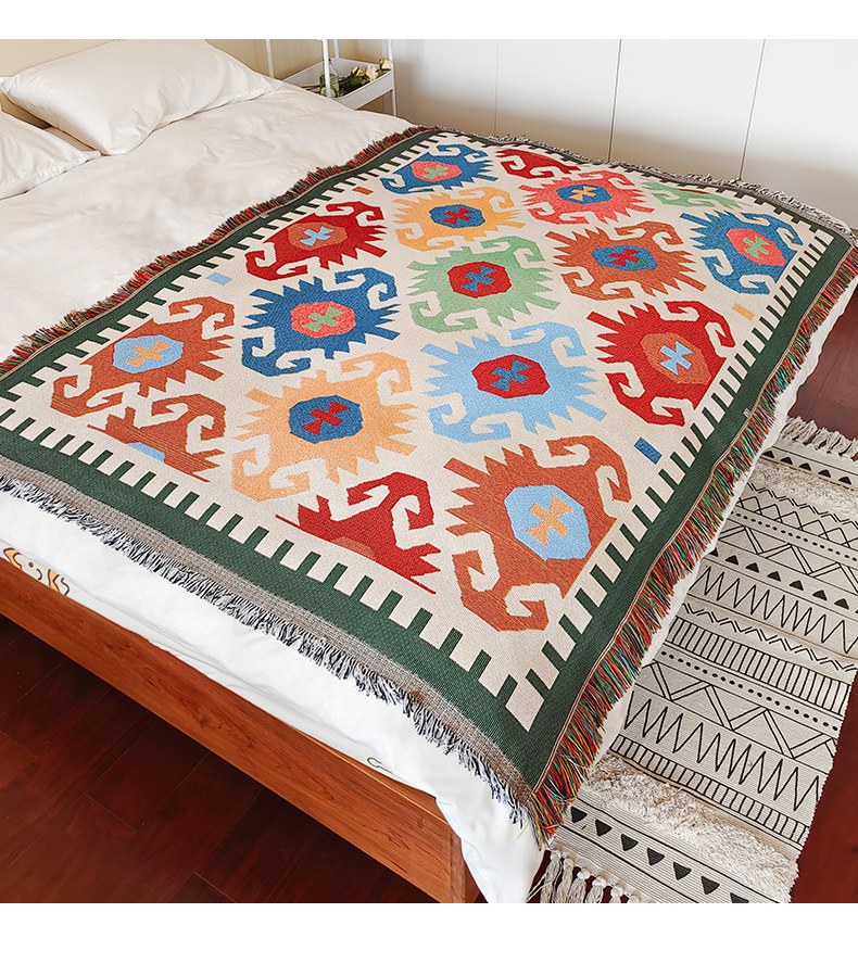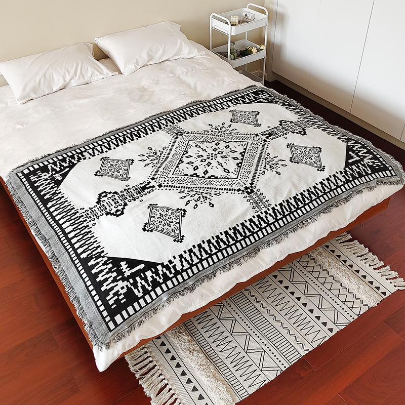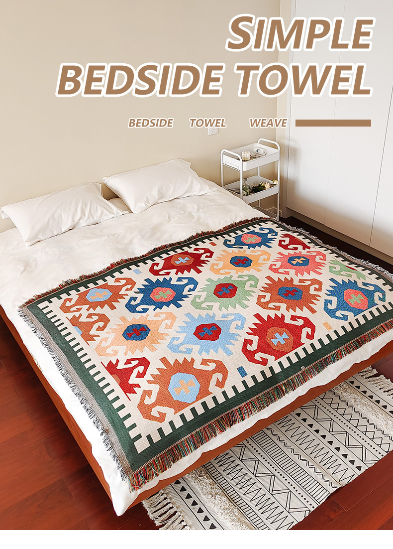 보헤미안 스타일 면사 자카드 커버 담요 침대 끝 장식 수건 호텔 린넨 호텔 홈스테이 침대 끝 수건