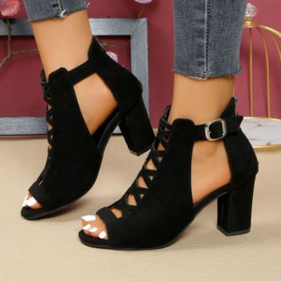 대외 무역 2025 여름 새로운 스타일 유럽과 미국 패션 여성 겉옷 물고기 입 지퍼 하이힐 샌들 여성 하이힐스토어 가기