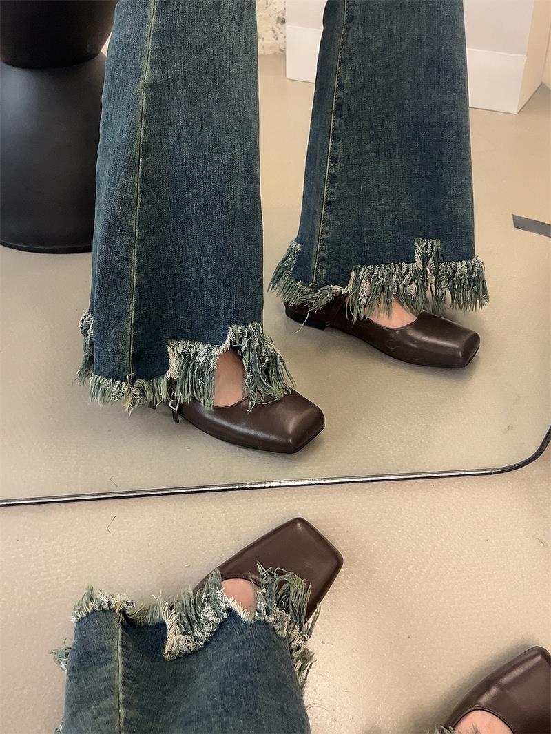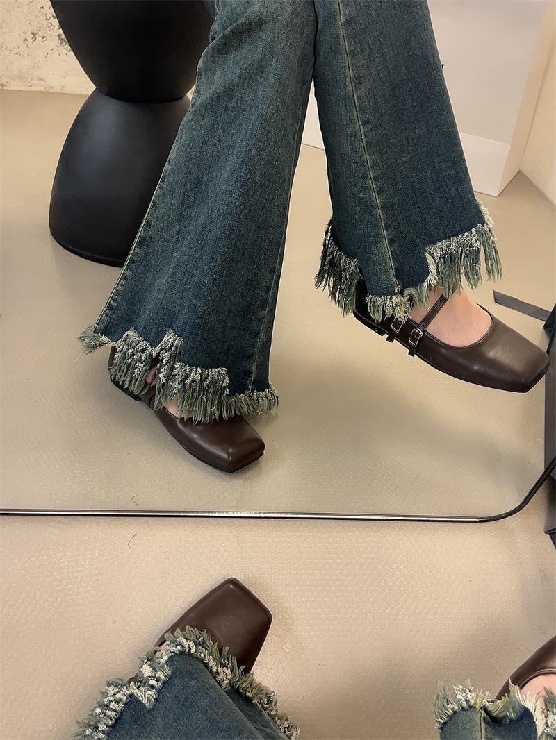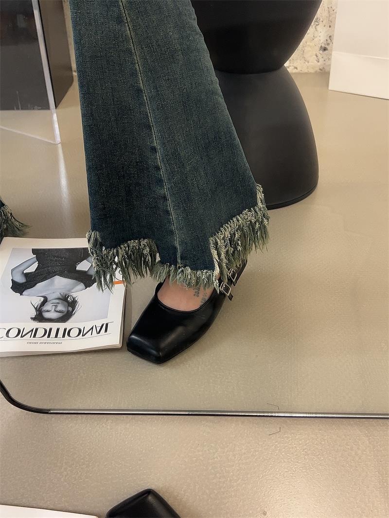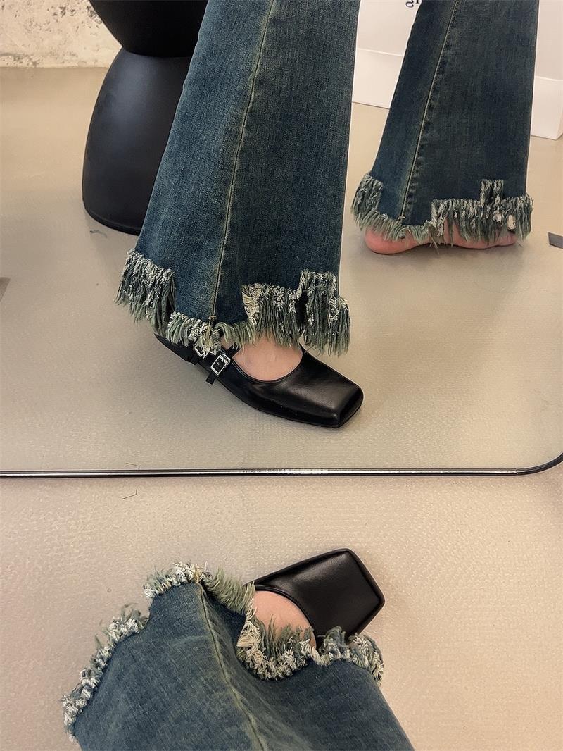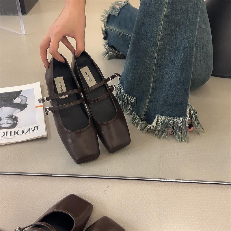 프랑스 스타일 스퀘어 발가락 얕은 입 신발 여성 2024 봄 새로운 한국 스타일 프랑스 스타일 우아한 요정 부드러운 메리 제인 신발스토어 가기