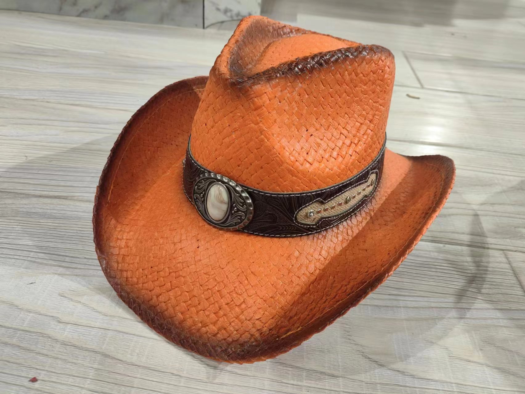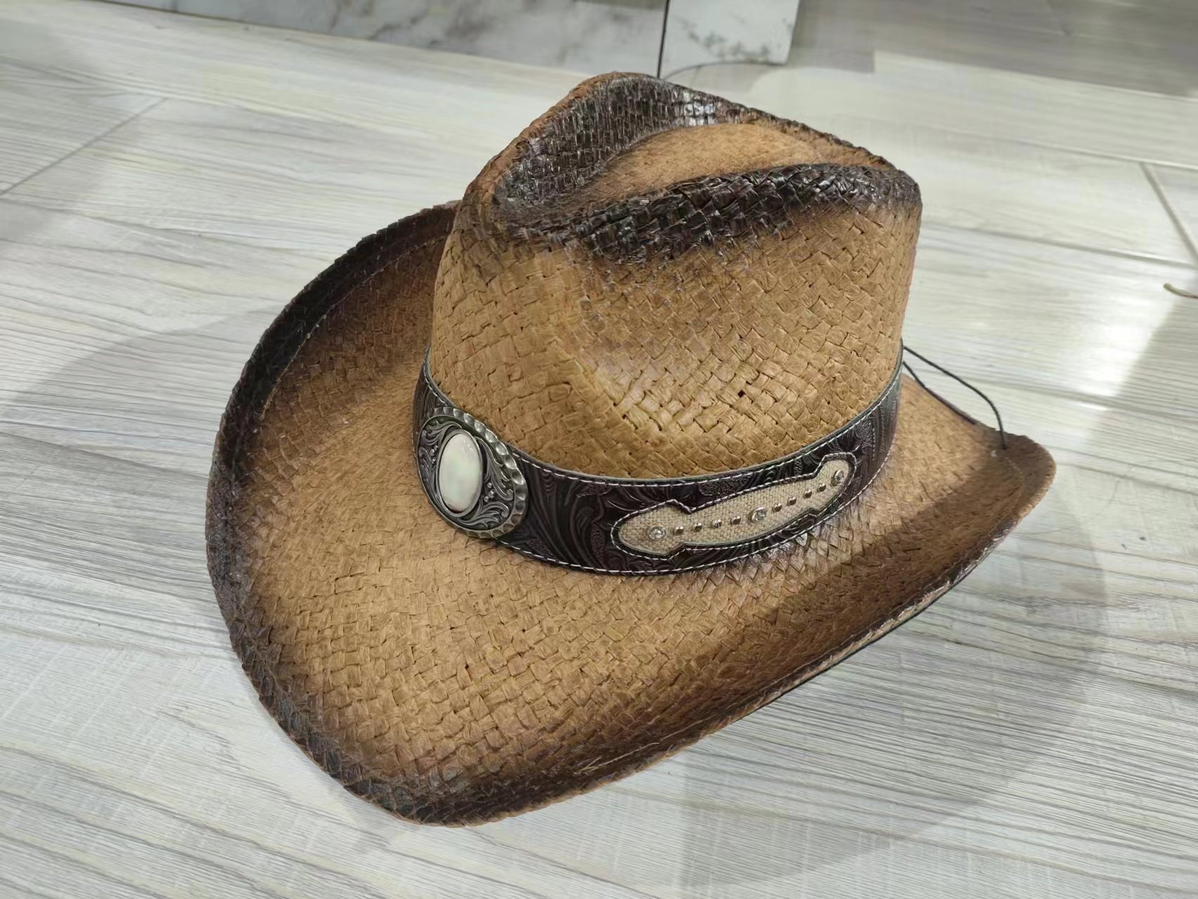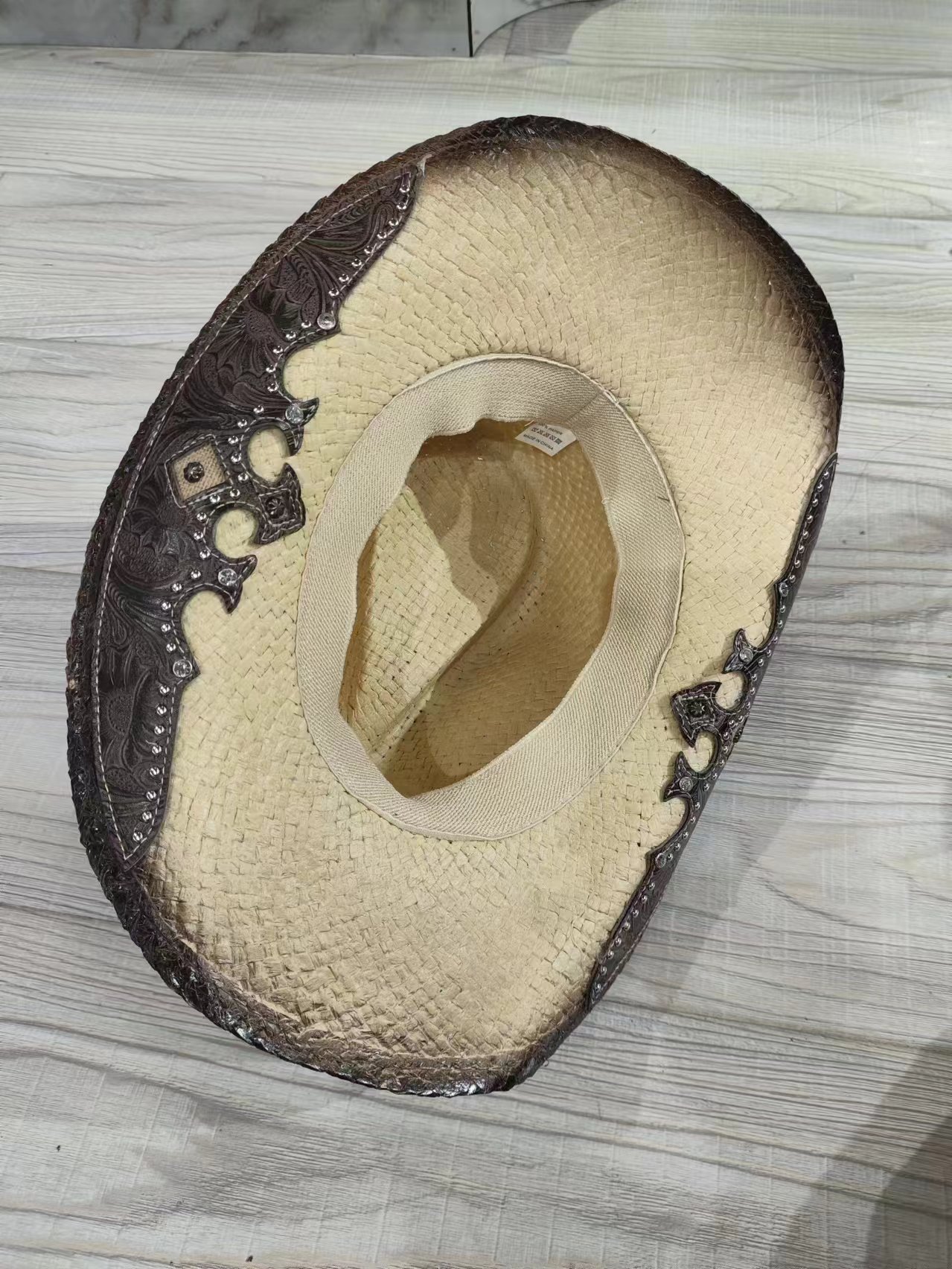 2024 새로운 복고풍 고급 서양 카우보이 모자 수제 밀짚 야외 하이킹 모자 차양 해변 모자 조수