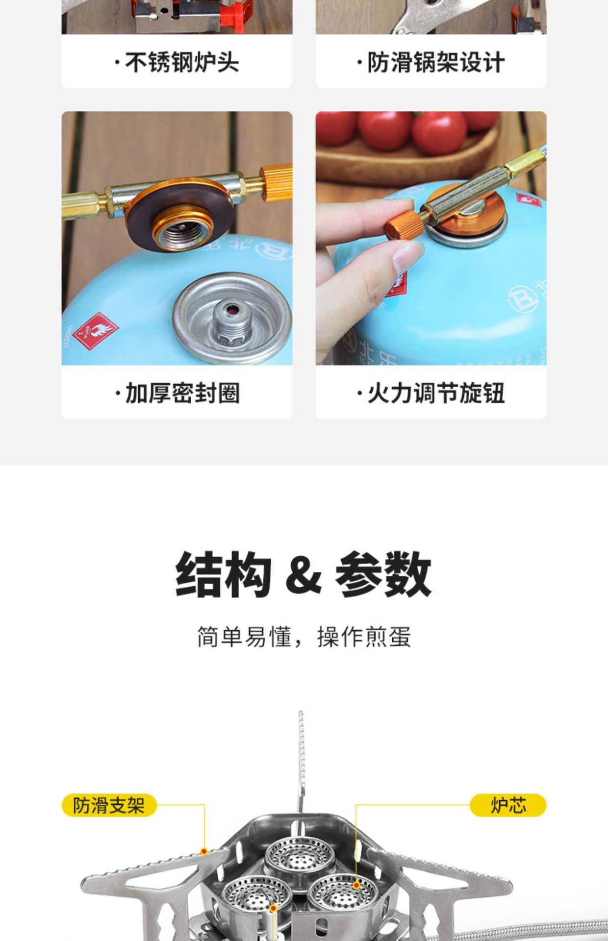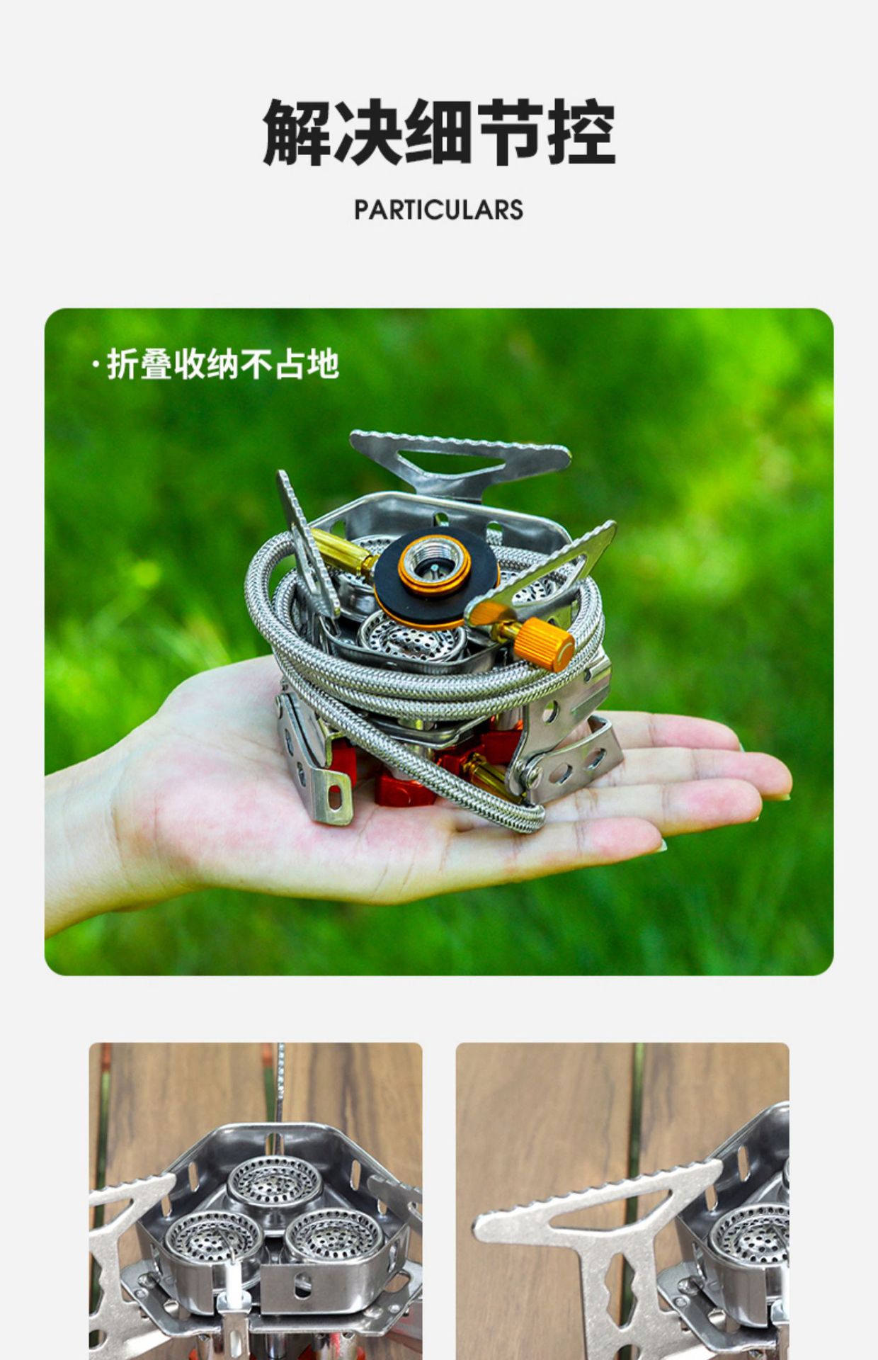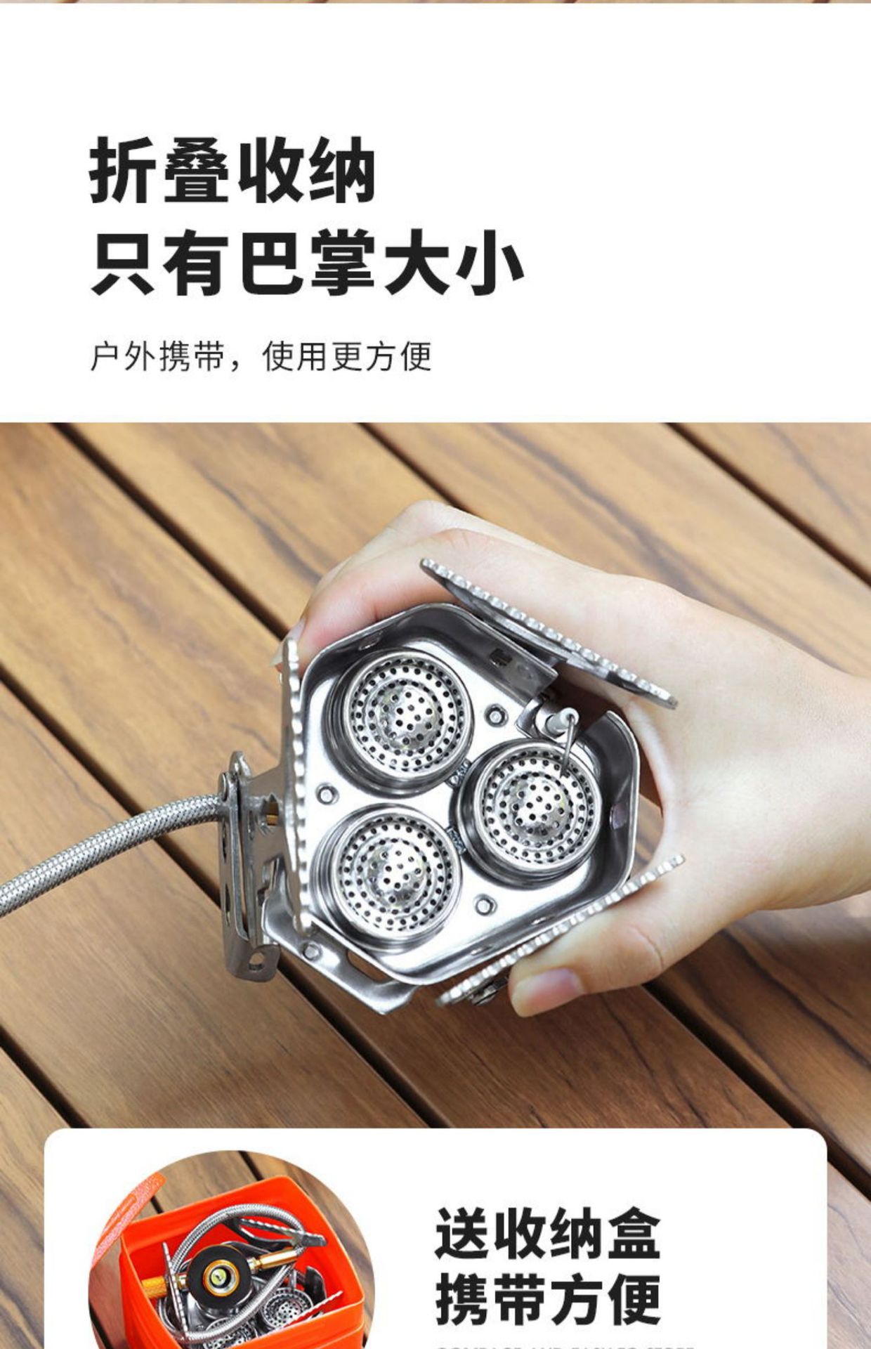 카세트 스토브 야외 스토브 휴대용 방풍 가스 3 헤드 치열한 화재 작은 스토브 헤드 접이식 가스 스토브 캠핑 끓는 물