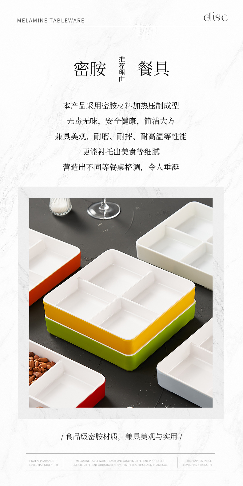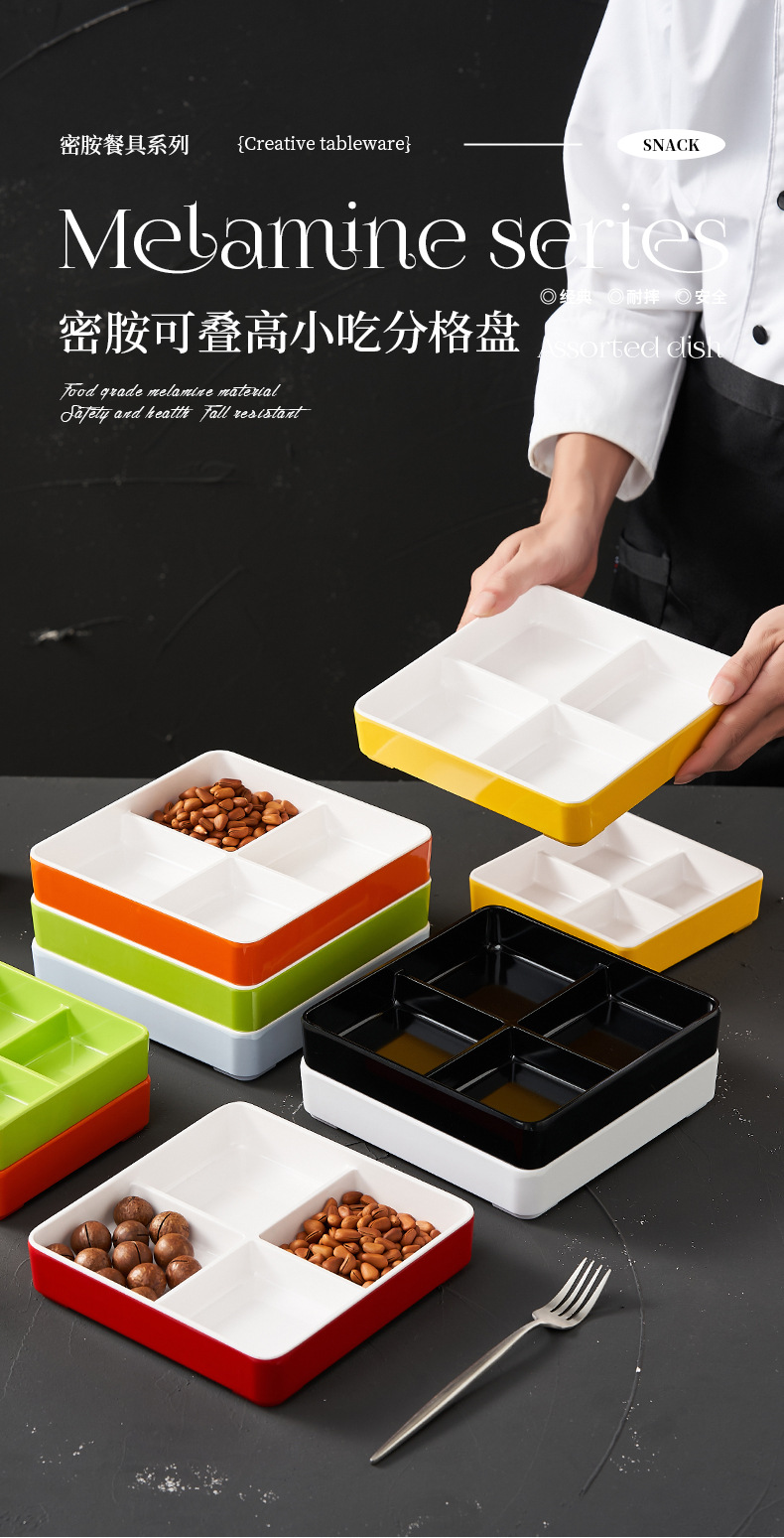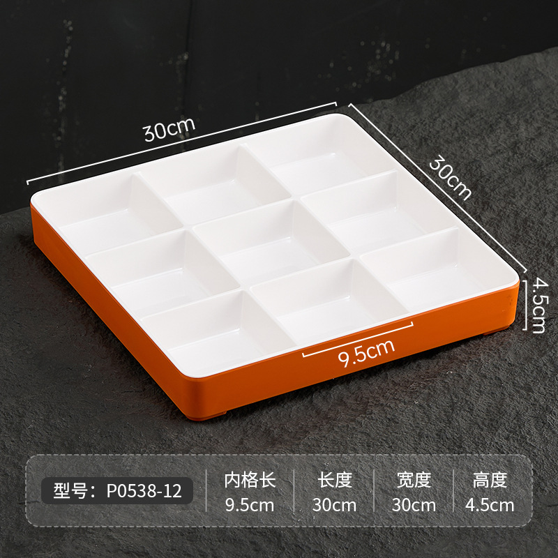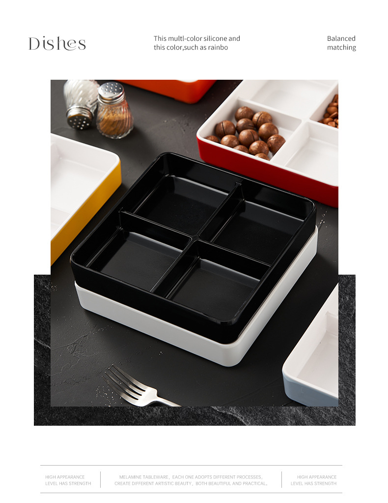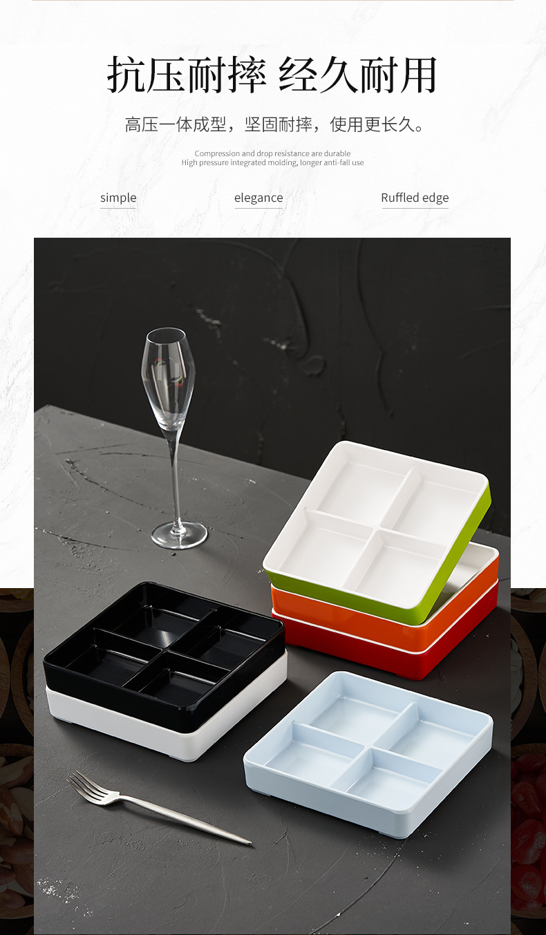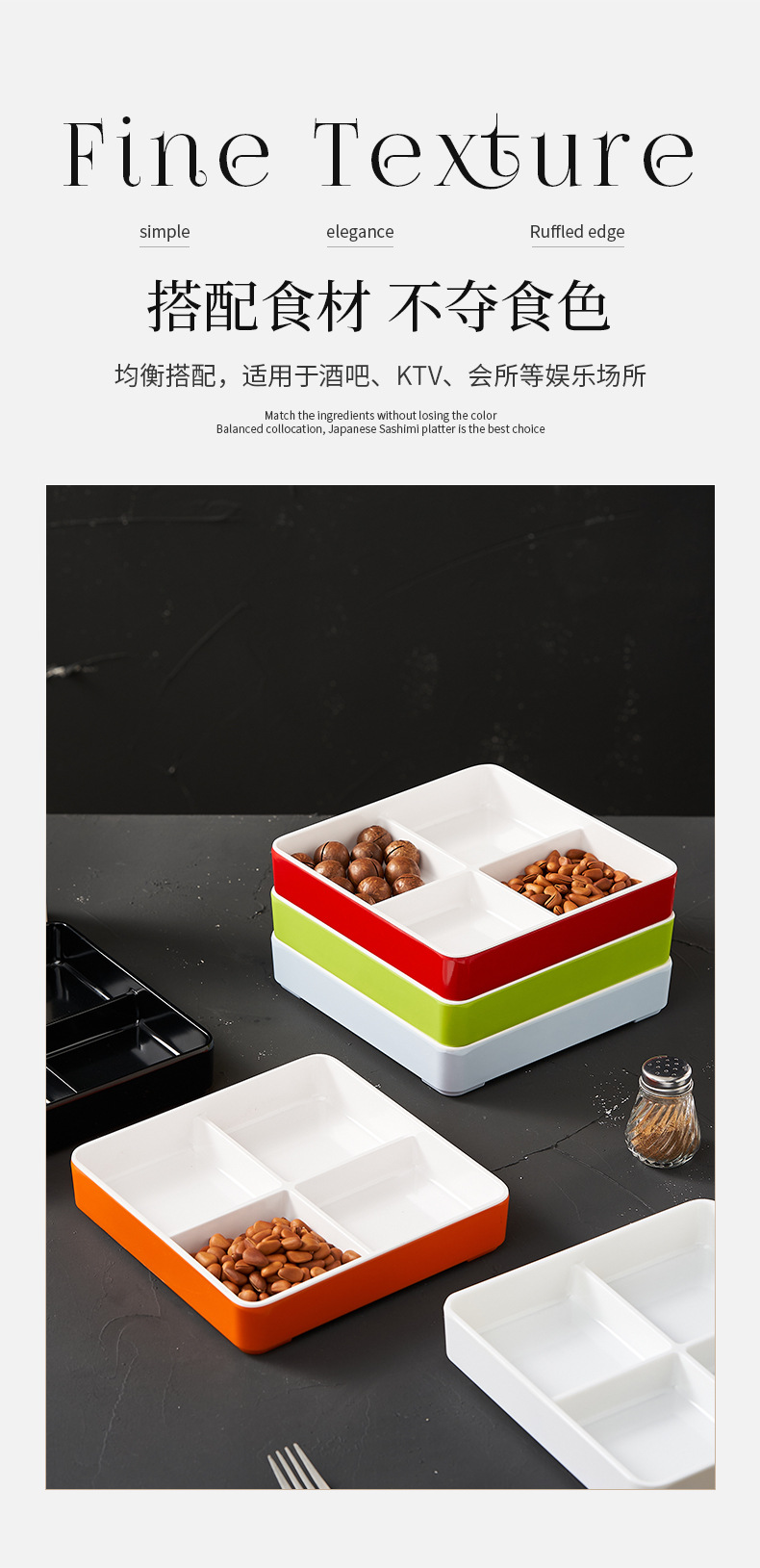 멜라민 전골 사각형 그리드 반찬 스낵 플래터 플라스틱 그리드 바 말린 과일 플래터 KTV 과일 플래터 스낵 플래터