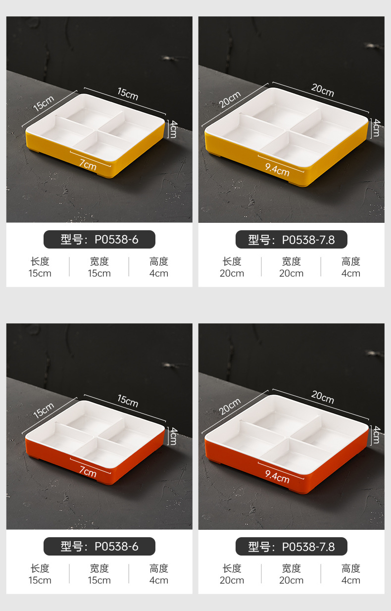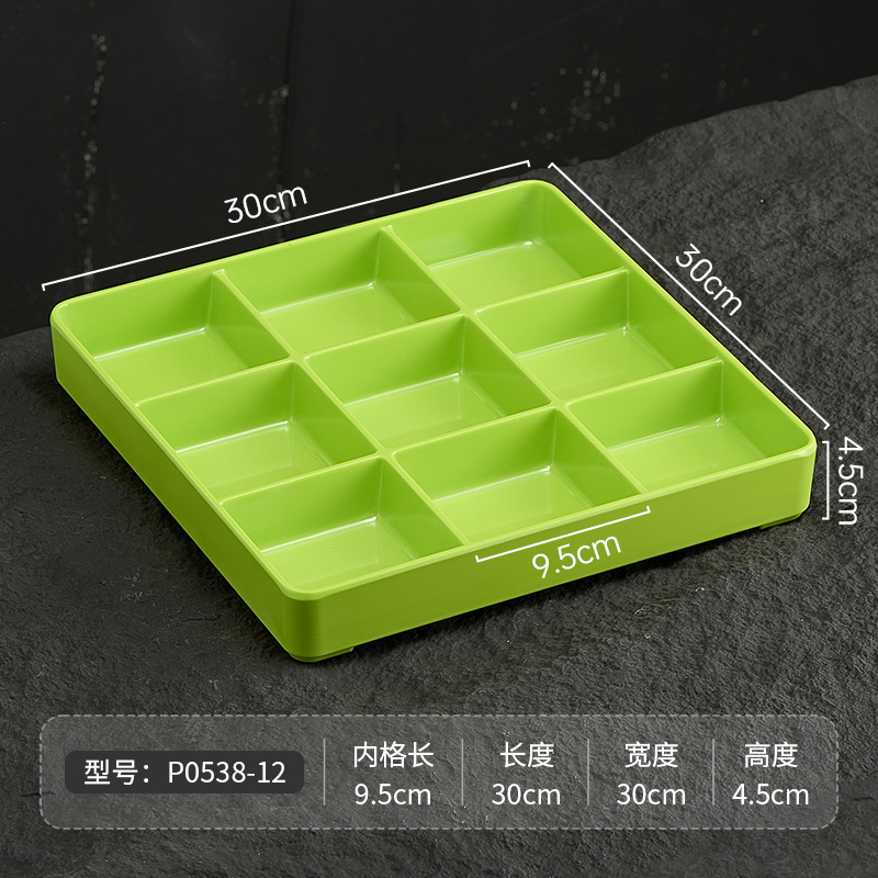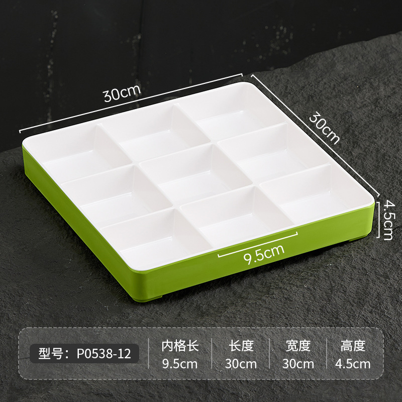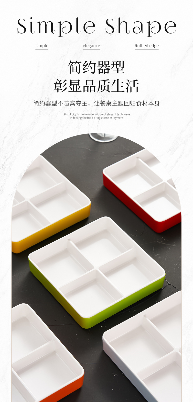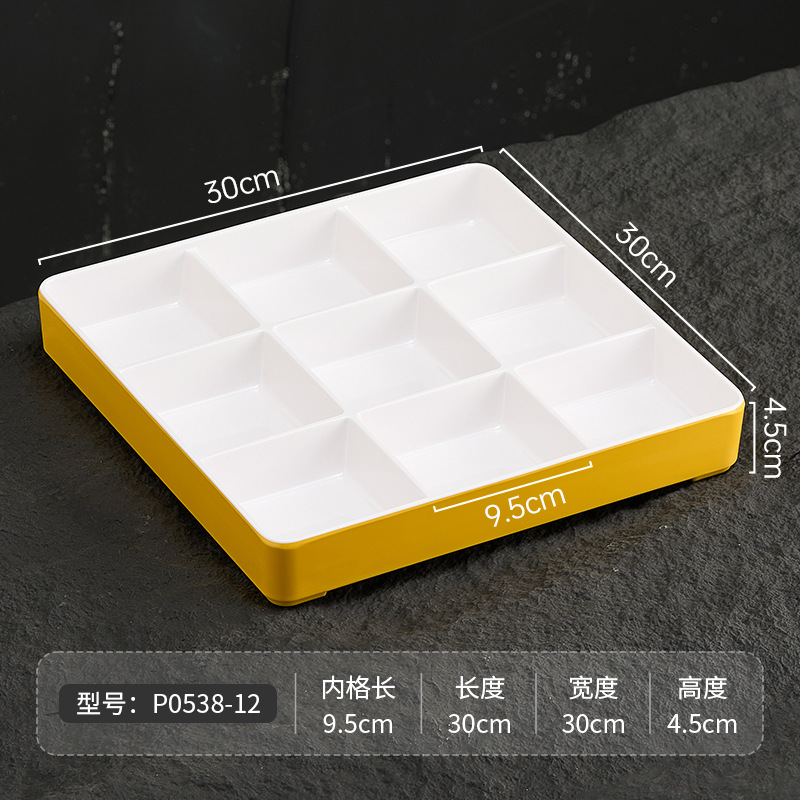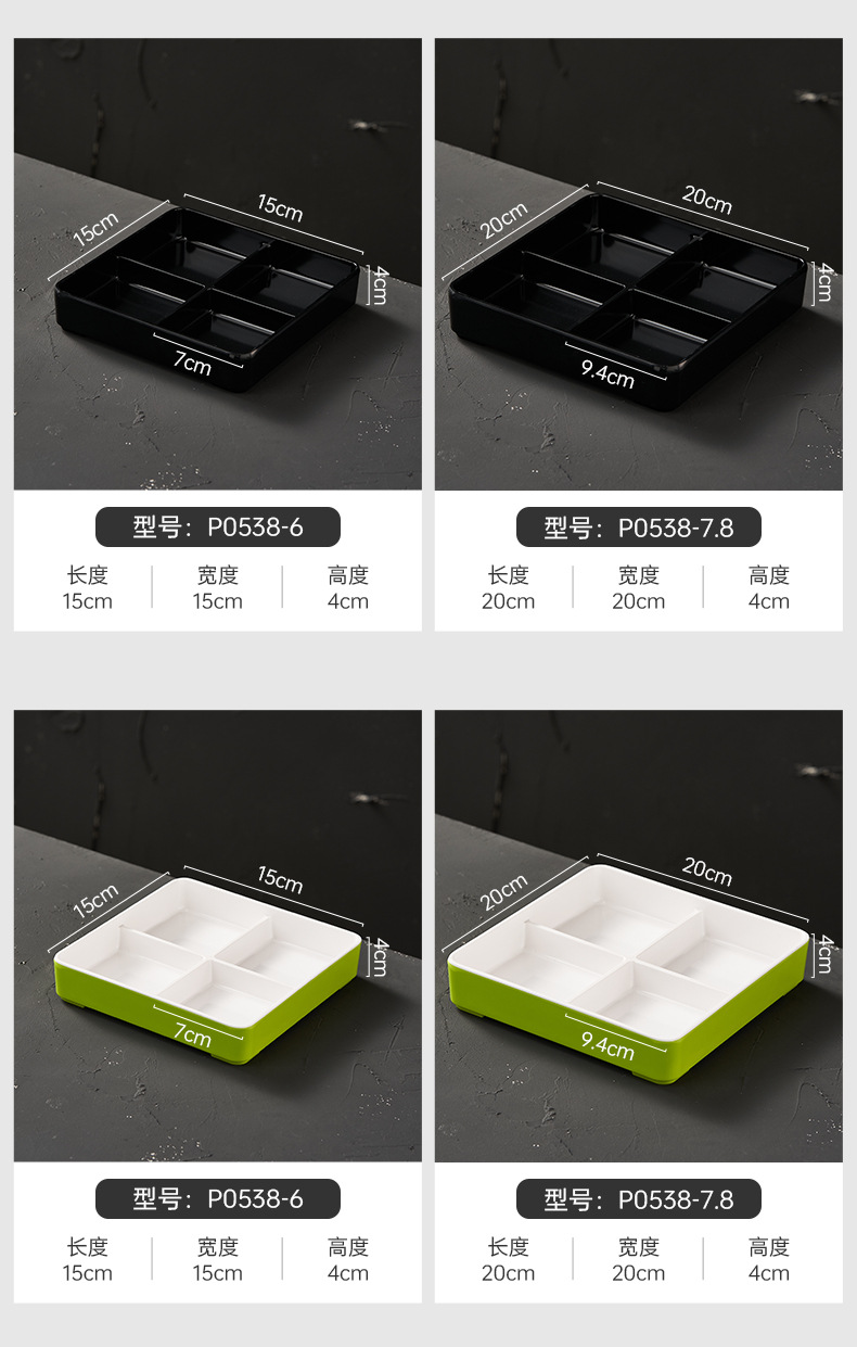 멜라민 전골 사각형 그리드 반찬 스낵 플래터 플라스틱 그리드 바 말린 과일 플래터 KTV 과일 플래터 스낵 플래터