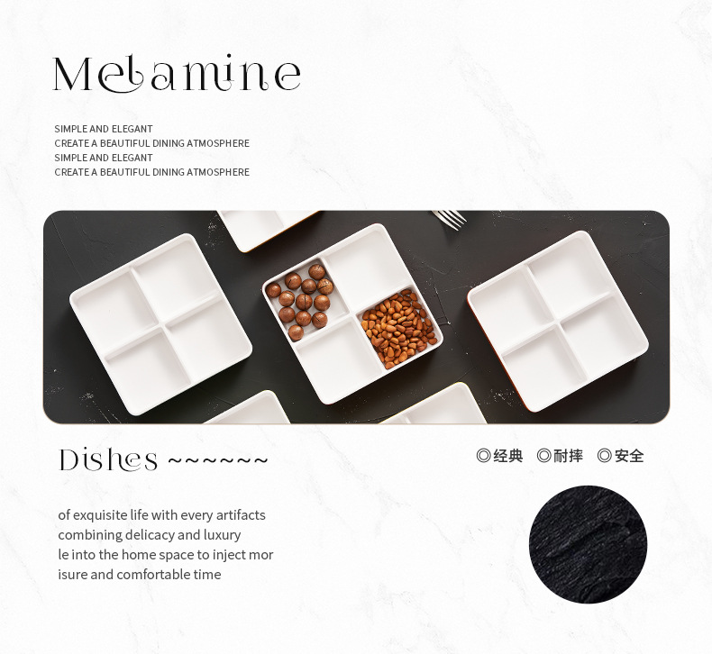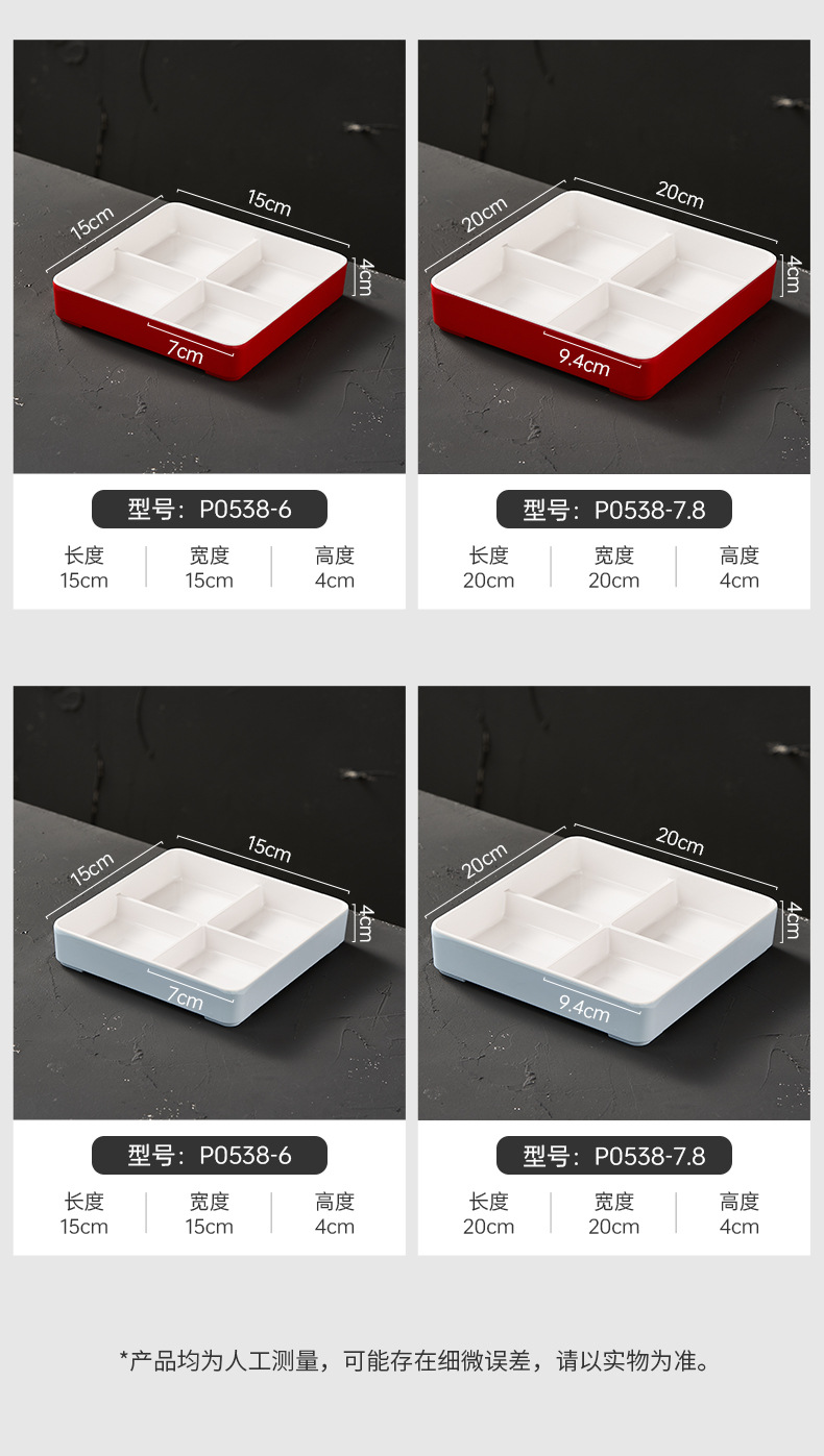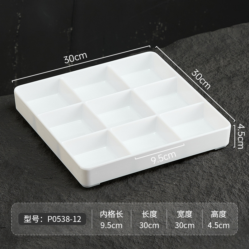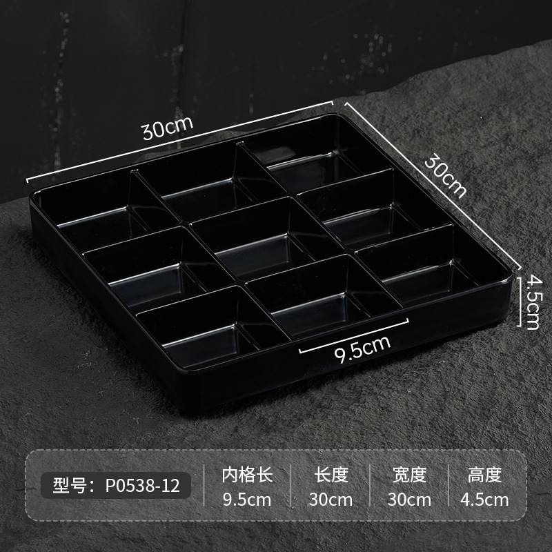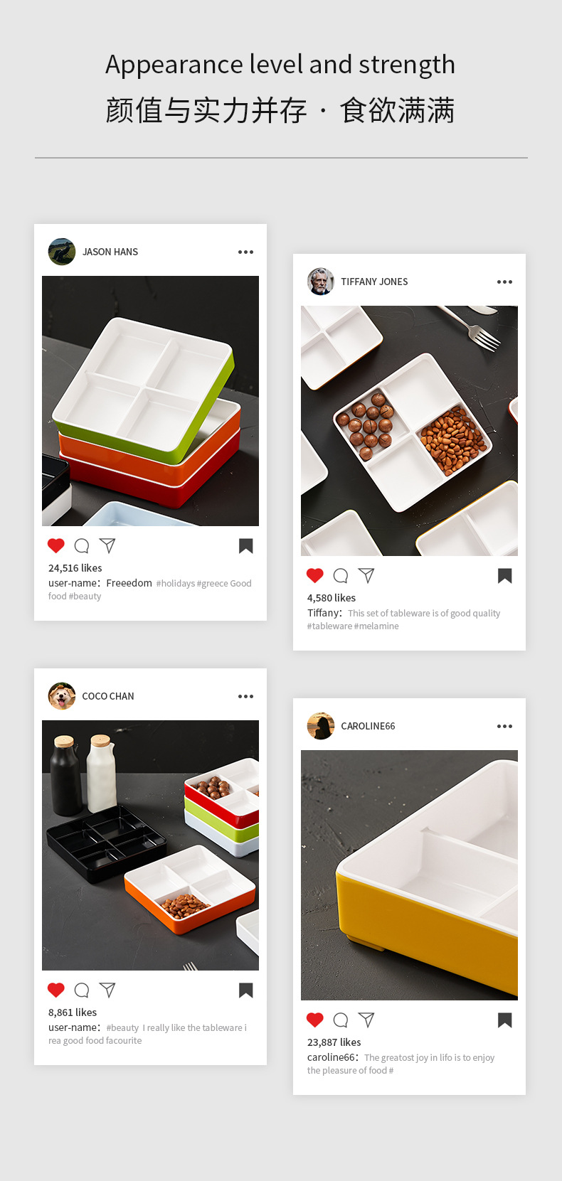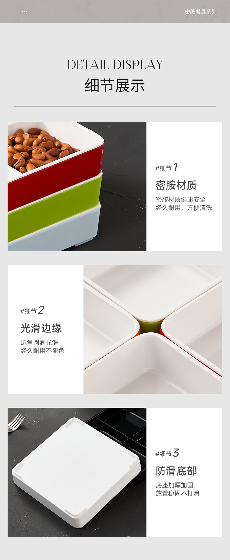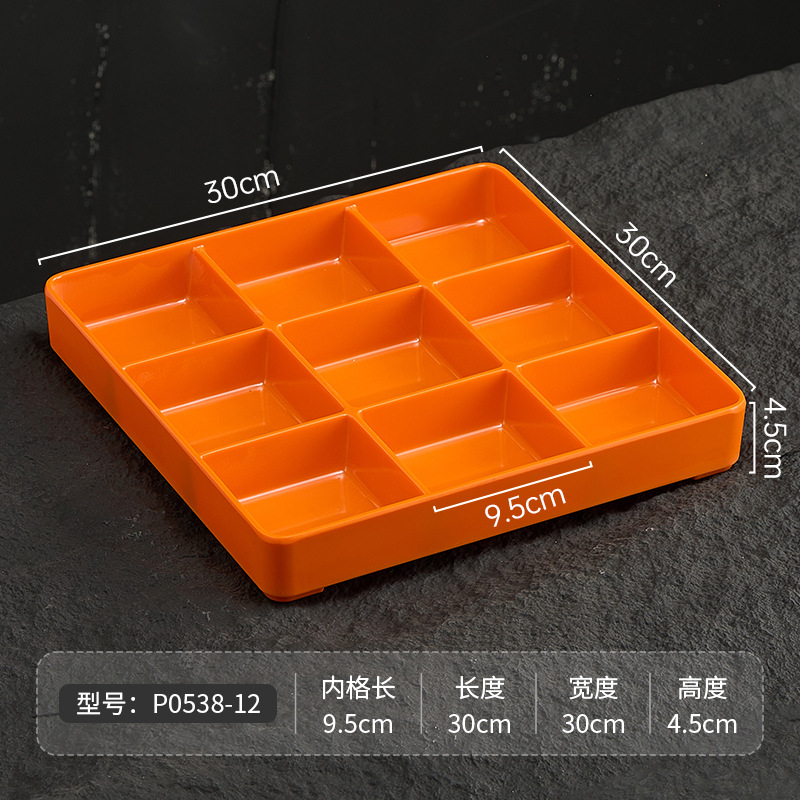 멜라민 전골 사각형 그리드 반찬 스낵 플래터 플라스틱 그리드 바 말린 과일 플래터 KTV 과일 플래터 스낵 플래터