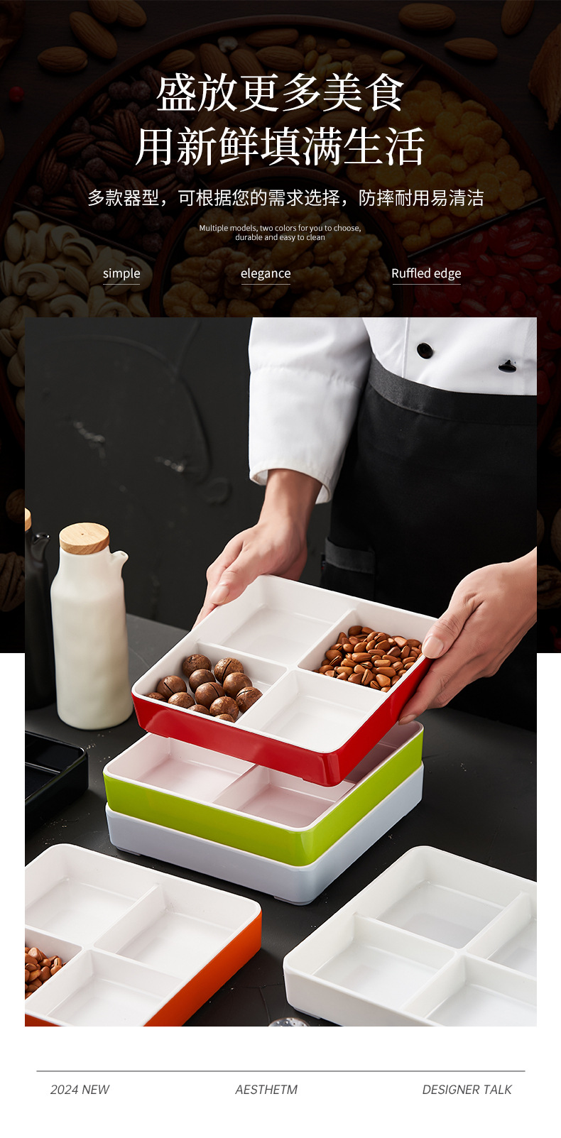 멜라민 전골 사각형 그리드 반찬 스낵 플래터 플라스틱 그리드 바 말린 과일 플래터 KTV 과일 플래터 스낵 플래터스토어 가기