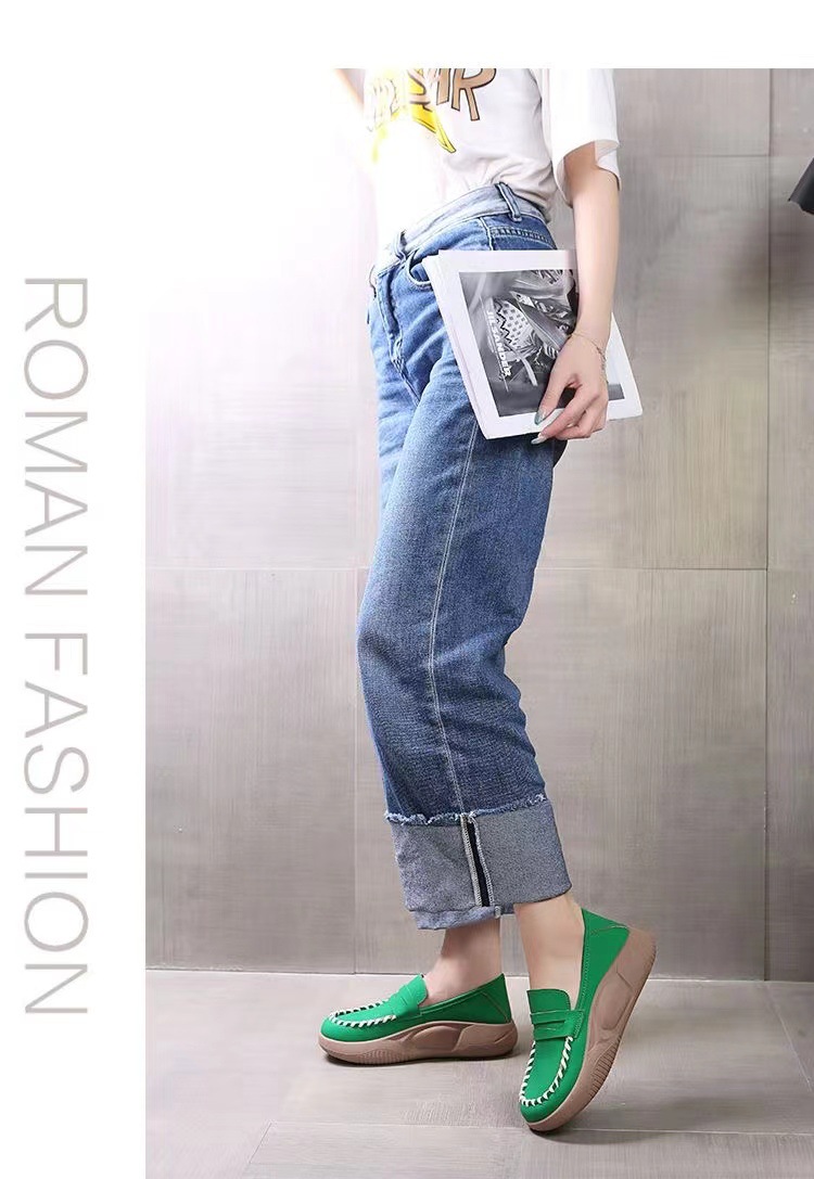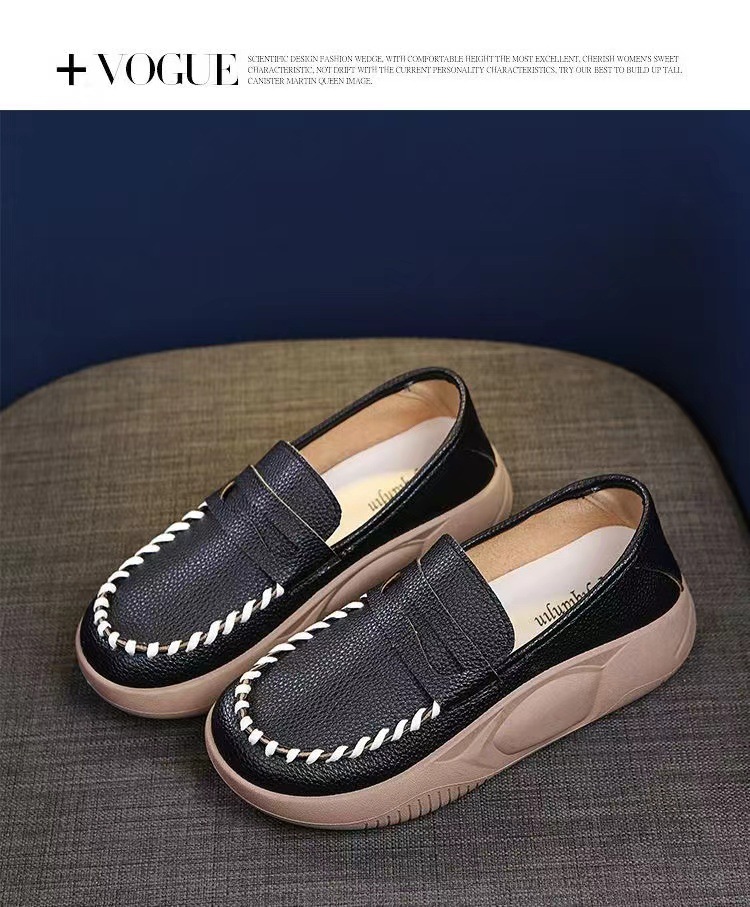 가을 2024 새로운 인터넷 연예인 캐주얼 두꺼운 부드러운 가죽 신발 여성용 슬립 온 로킹 신발 편안한 로퍼스토어 가기