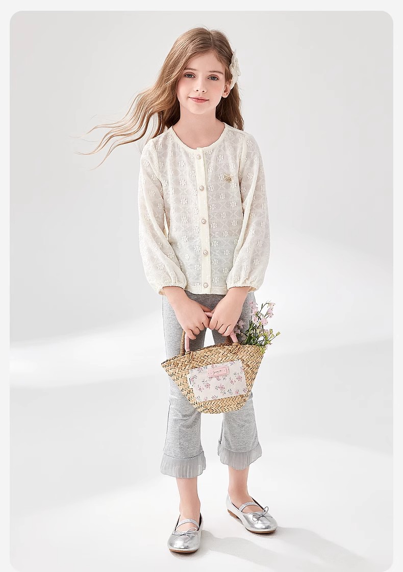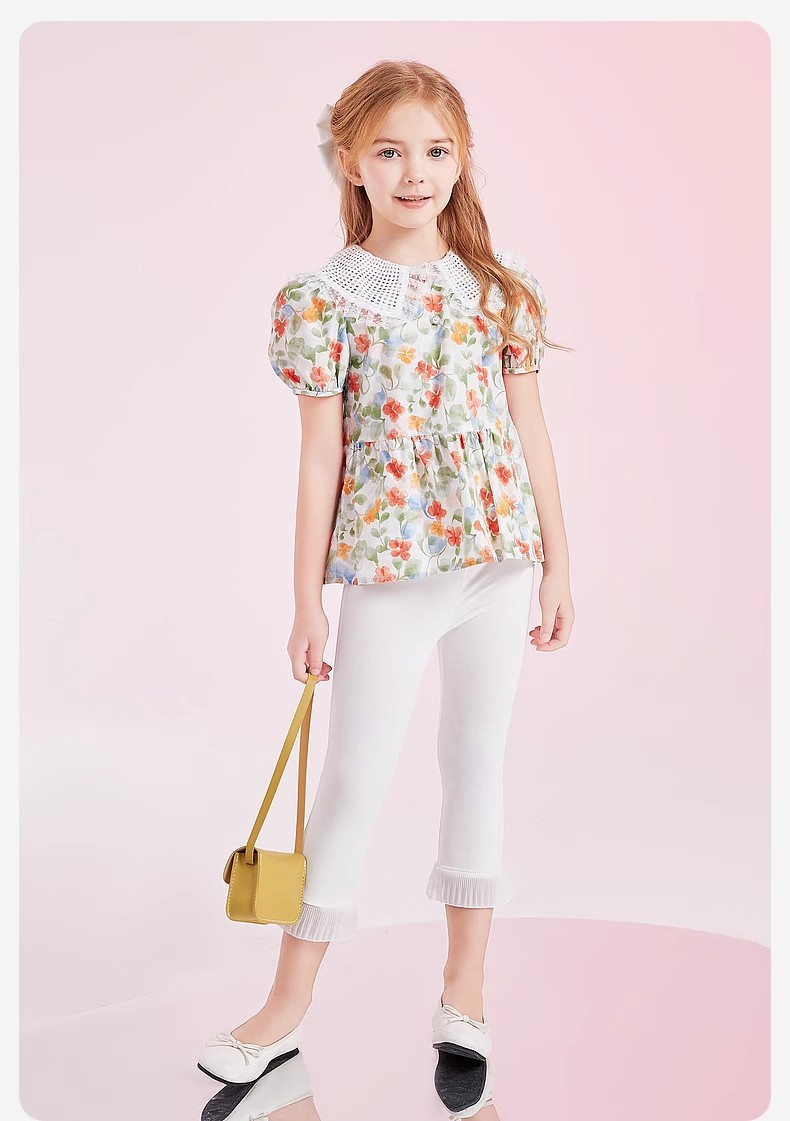 걸스 여름 레깅스 아우터웨어 2024 새로운 스타일 중대형 어린이 9 점 캐주얼 바지 유행 어린이 레이스 플래 팬츠