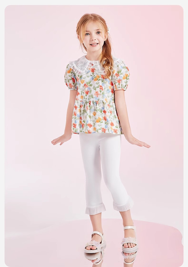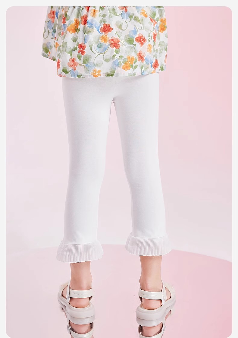 걸스 여름 레깅스 아우터웨어 2024 새로운 스타일 중대형 어린이 9 점 캐주얼 바지 유행 어린이 레이스 플래 팬츠스토어 가기