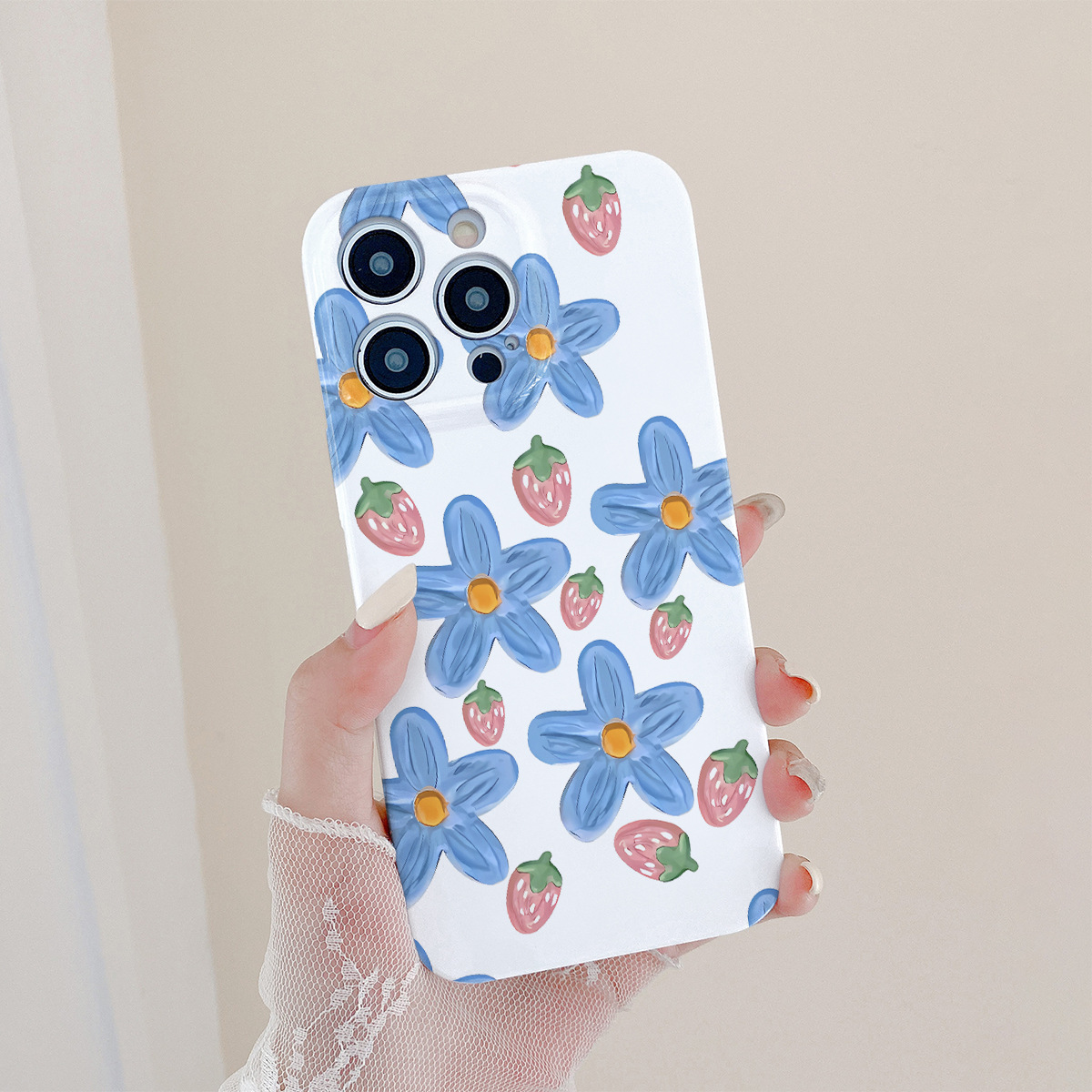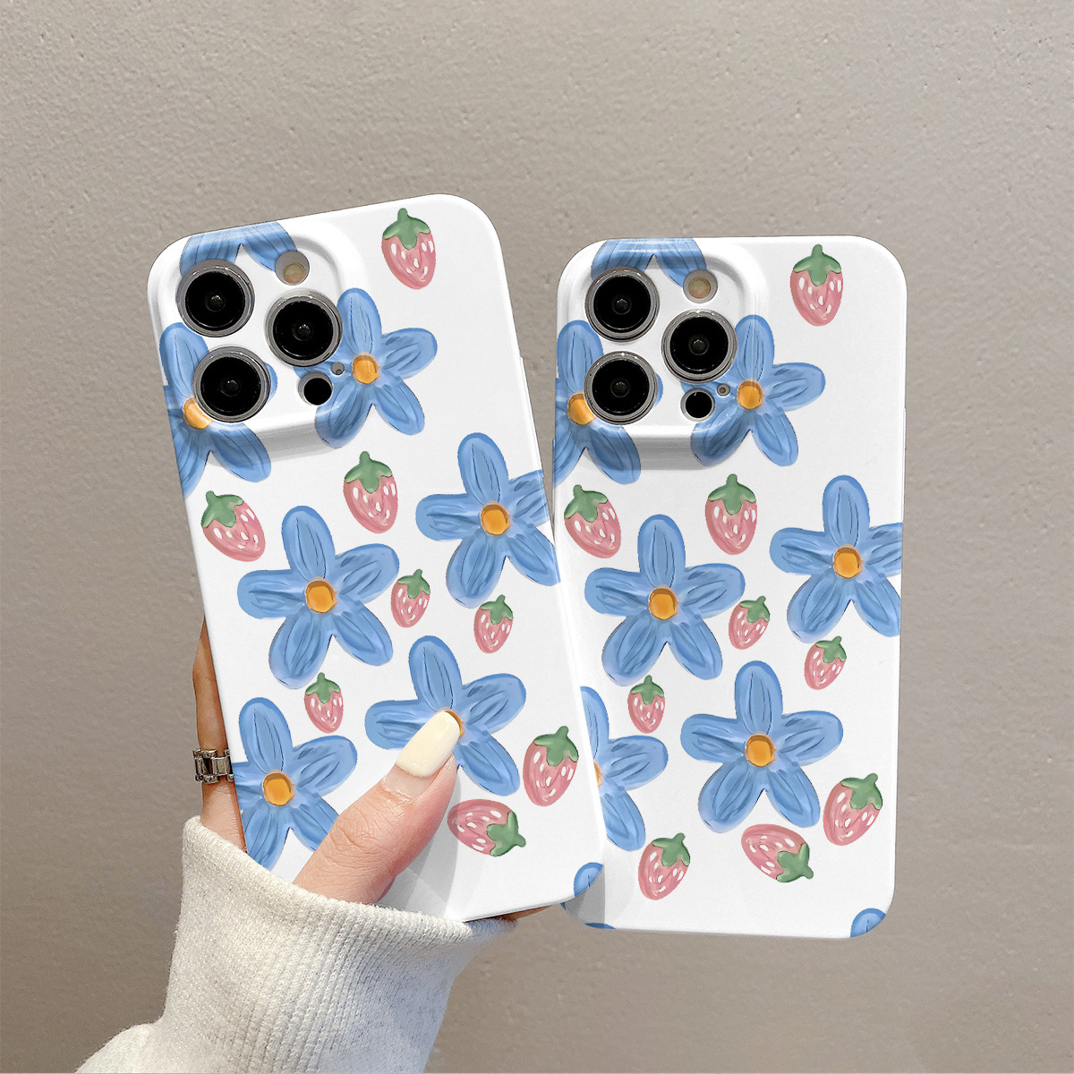 간단한 푸른 꽃 12 원래 애플 11 유화 전화 케이스 iphone15 애플 13Pro 보호 케이스에 적합스토어 가기