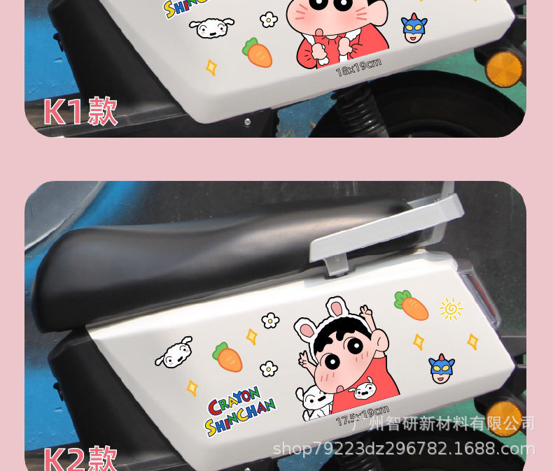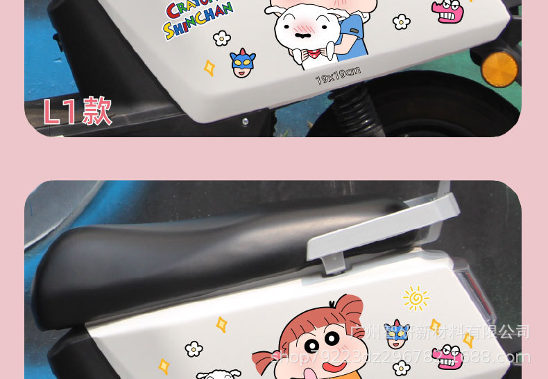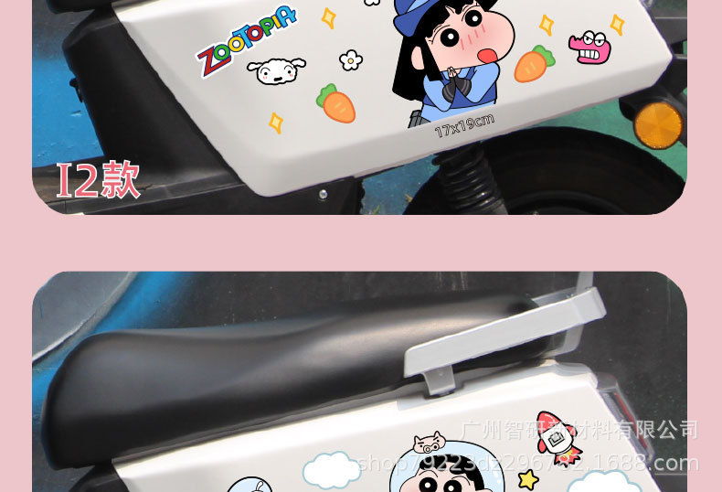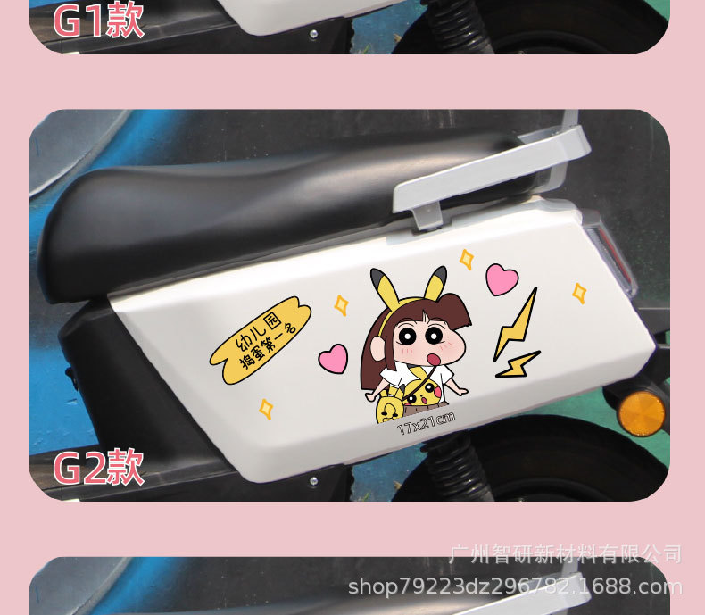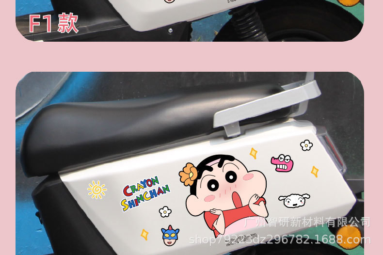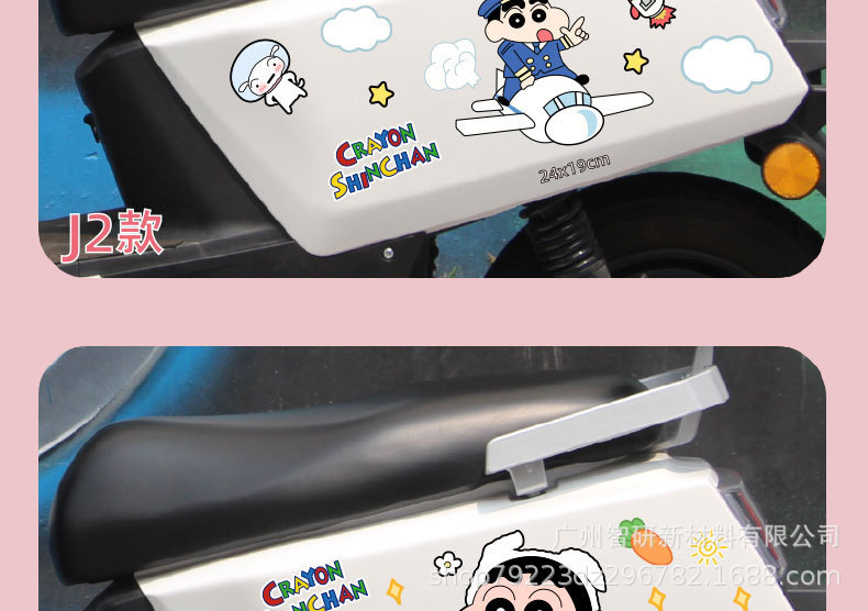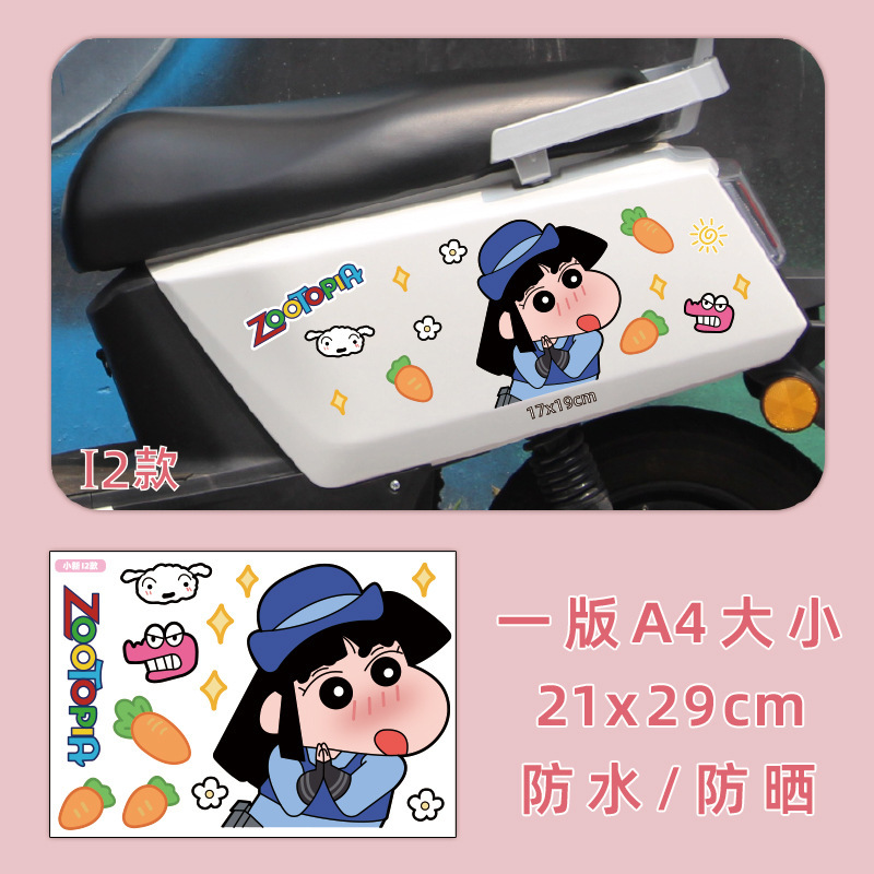 크레용 신 새로운 전기 오토바이 스티커 만화 음영 스크래치 엠마 매버릭스 야디 배터리 자동차 스티커 장식