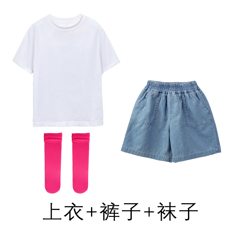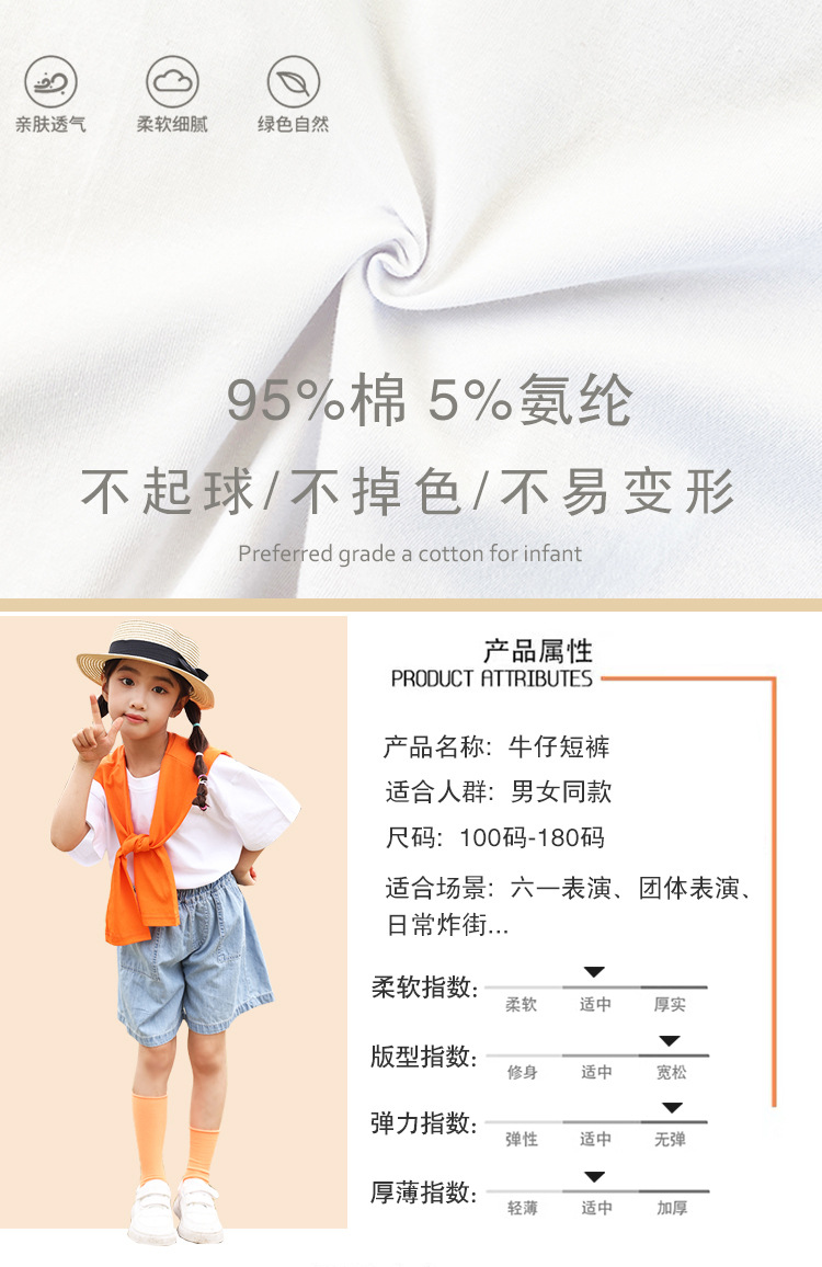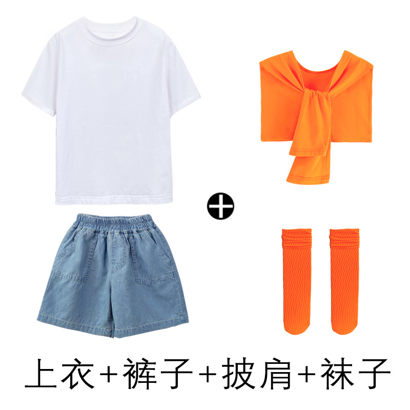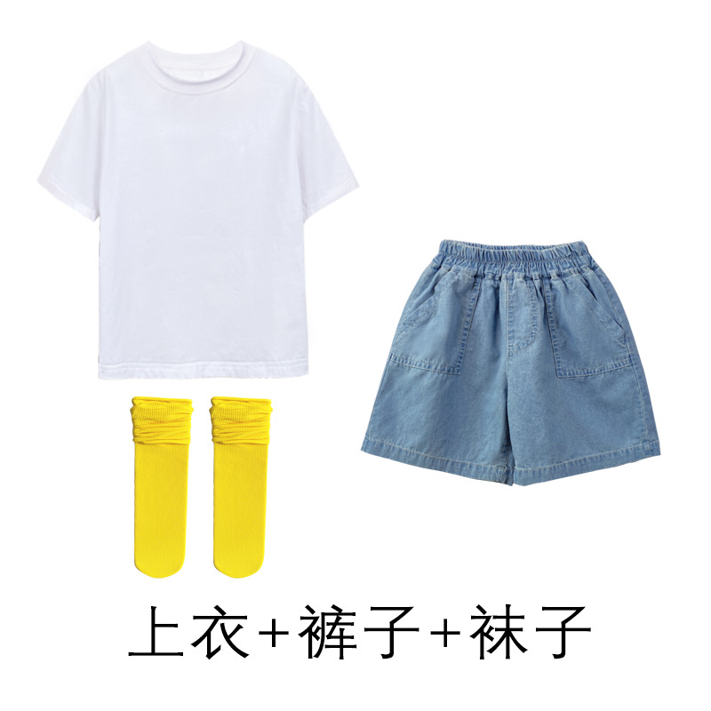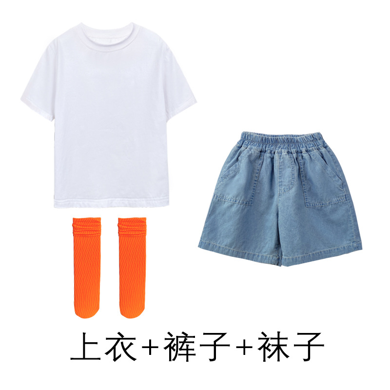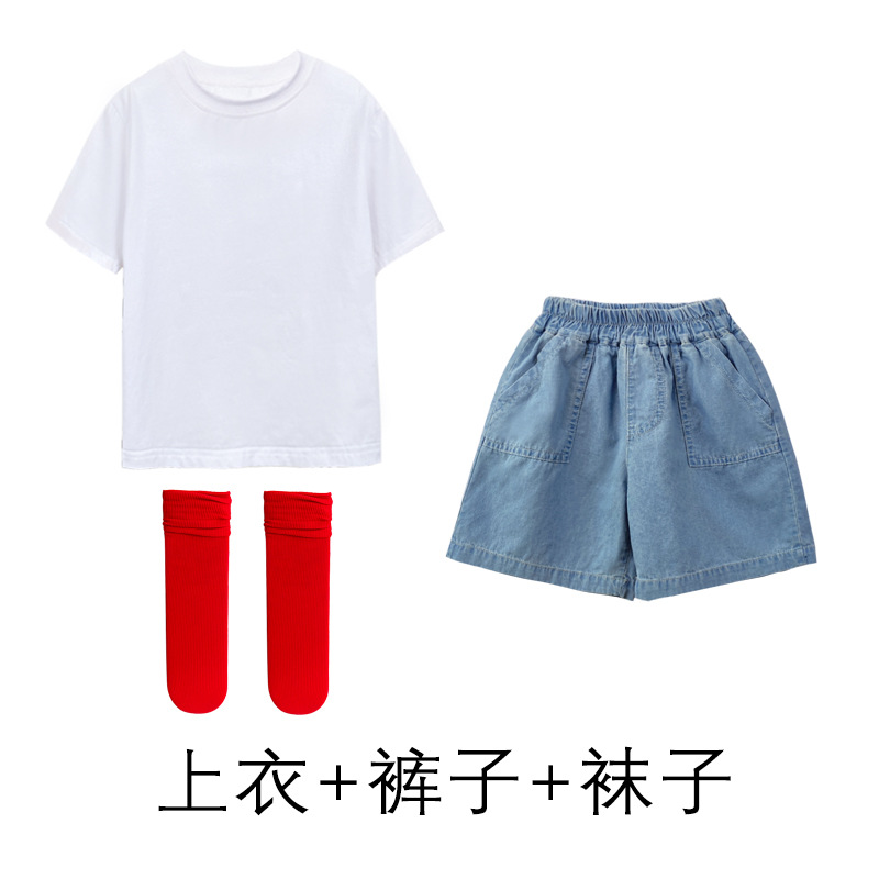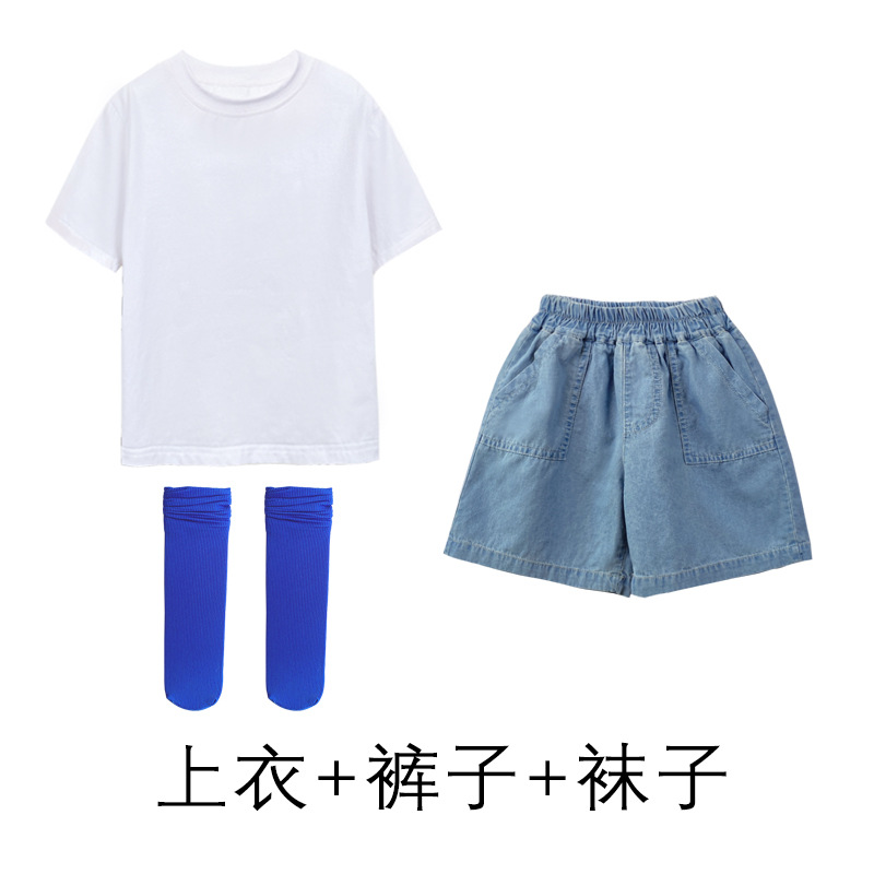 어린이 날 공연 의류 유치원 졸업 사진 댄스 코러스 의류 초등학생 데님 반바지 공연 의류 여름