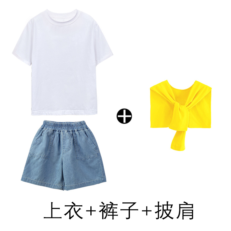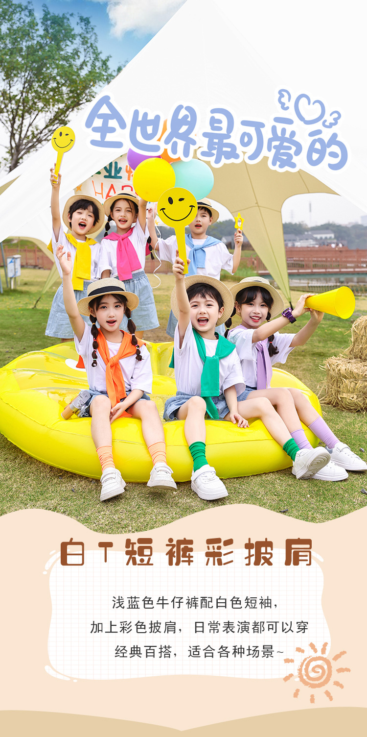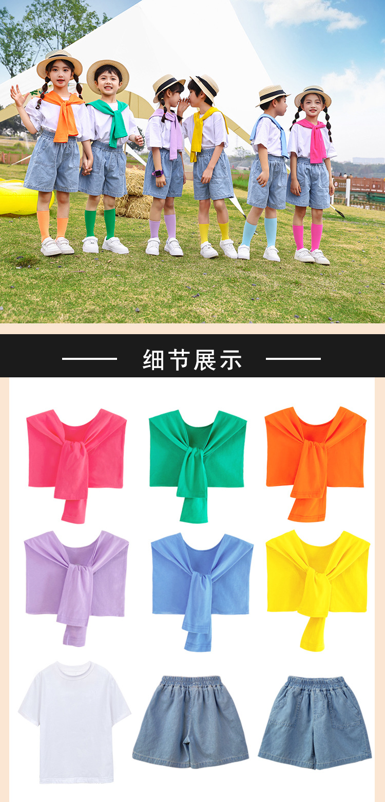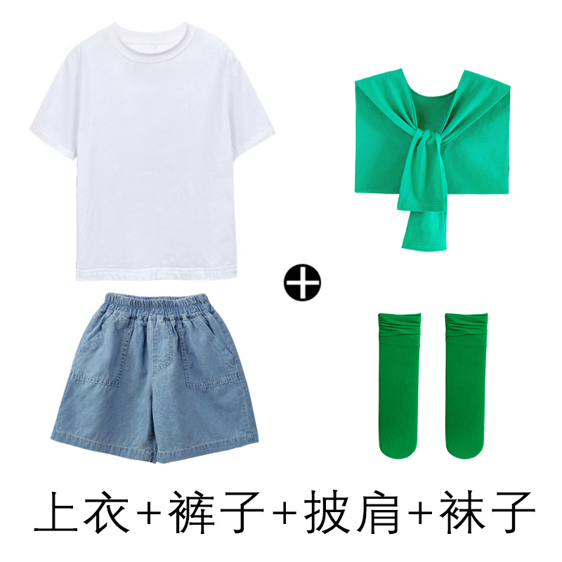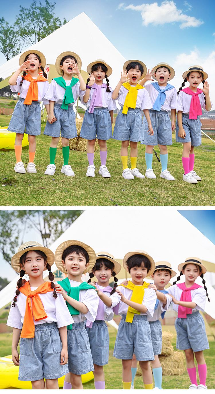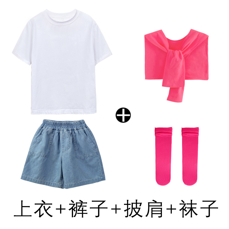 어린이 날 공연 의류 유치원 졸업 사진 댄스 코러스 의류 초등학생 데님 반바지 공연 의류 여름