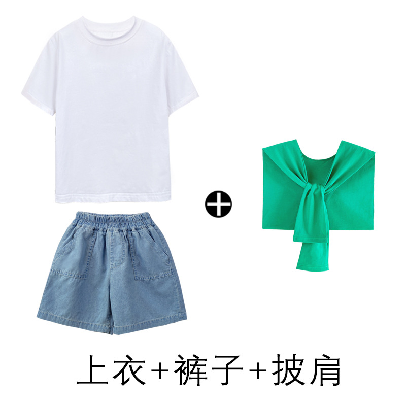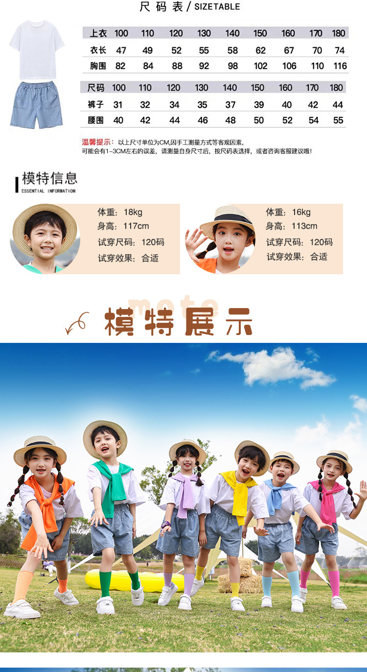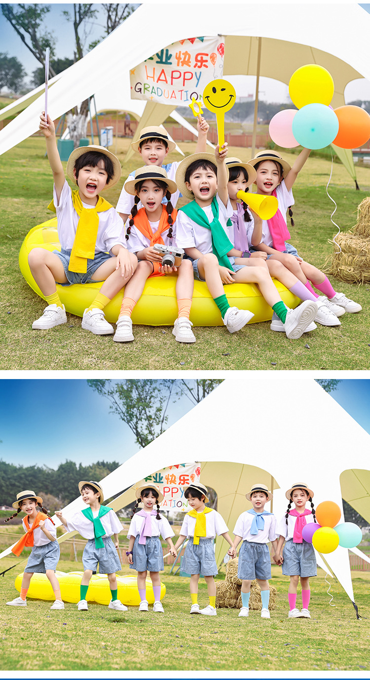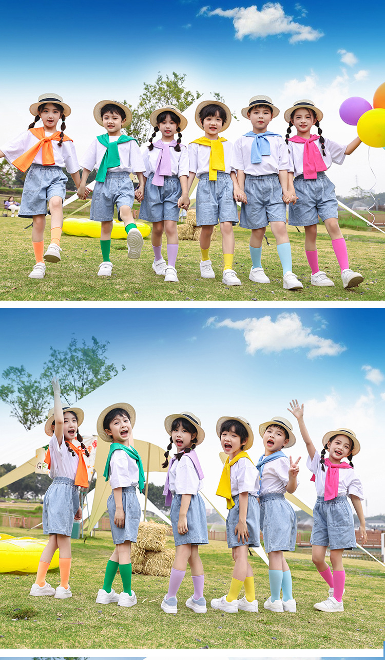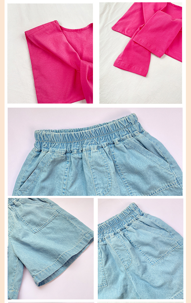 어린이 날 공연 의류 유치원 졸업 사진 댄스 코러스 의류 초등학생 데님 반바지 공연 의류 여름