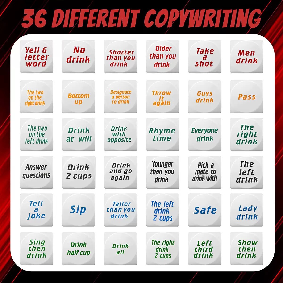 외국 무역 핫 컬러 인쇄 영어 와인 주문 주사위 창조적 인 주사위 영어 주사위 플라스틱 컬러 KTV 장난감 주사위