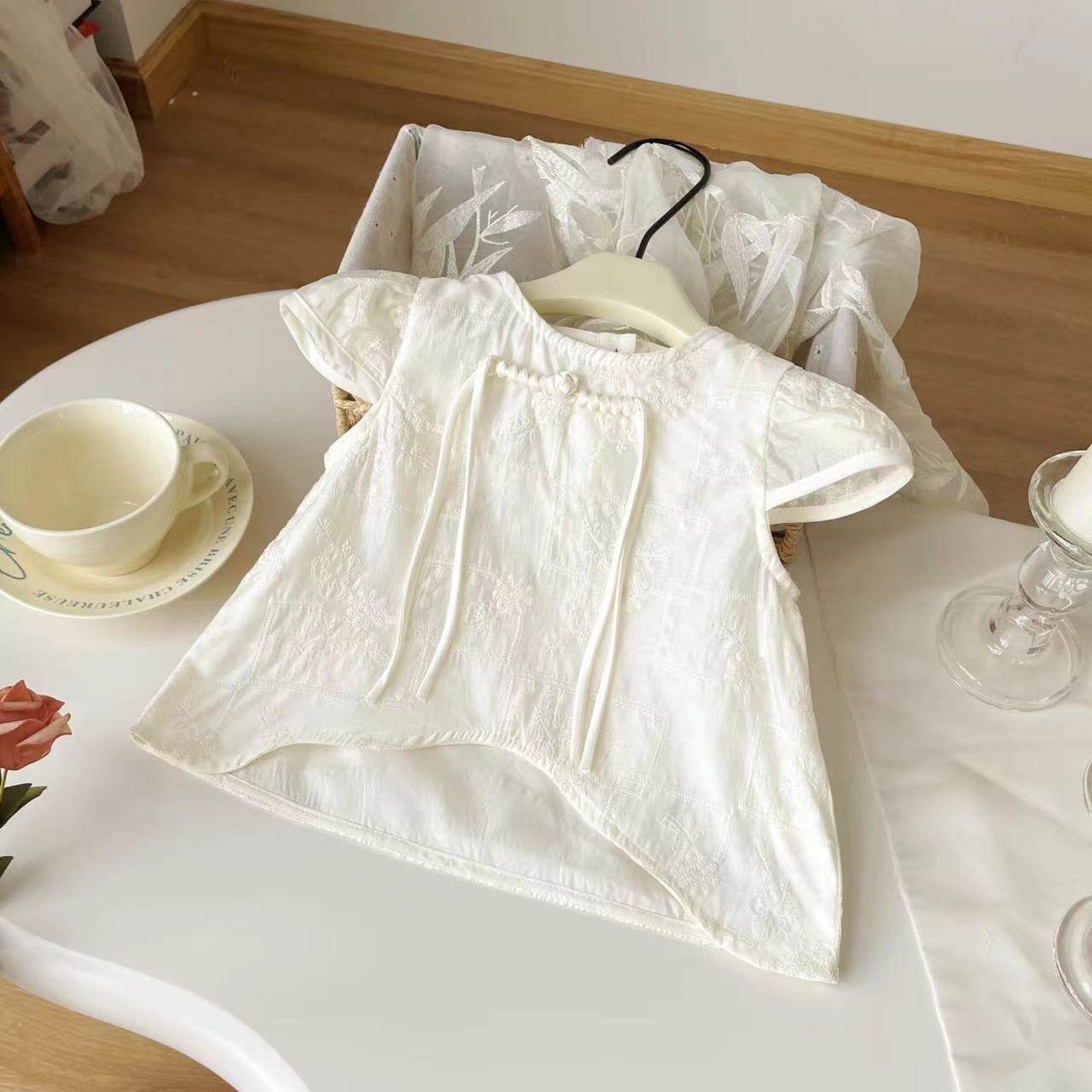 여아복 세트 2024 여름 신상 아동복 한국 스타일 패션 티셔츠 상의 세련된 꽃잎 바지 투피스 세트스토어 가기