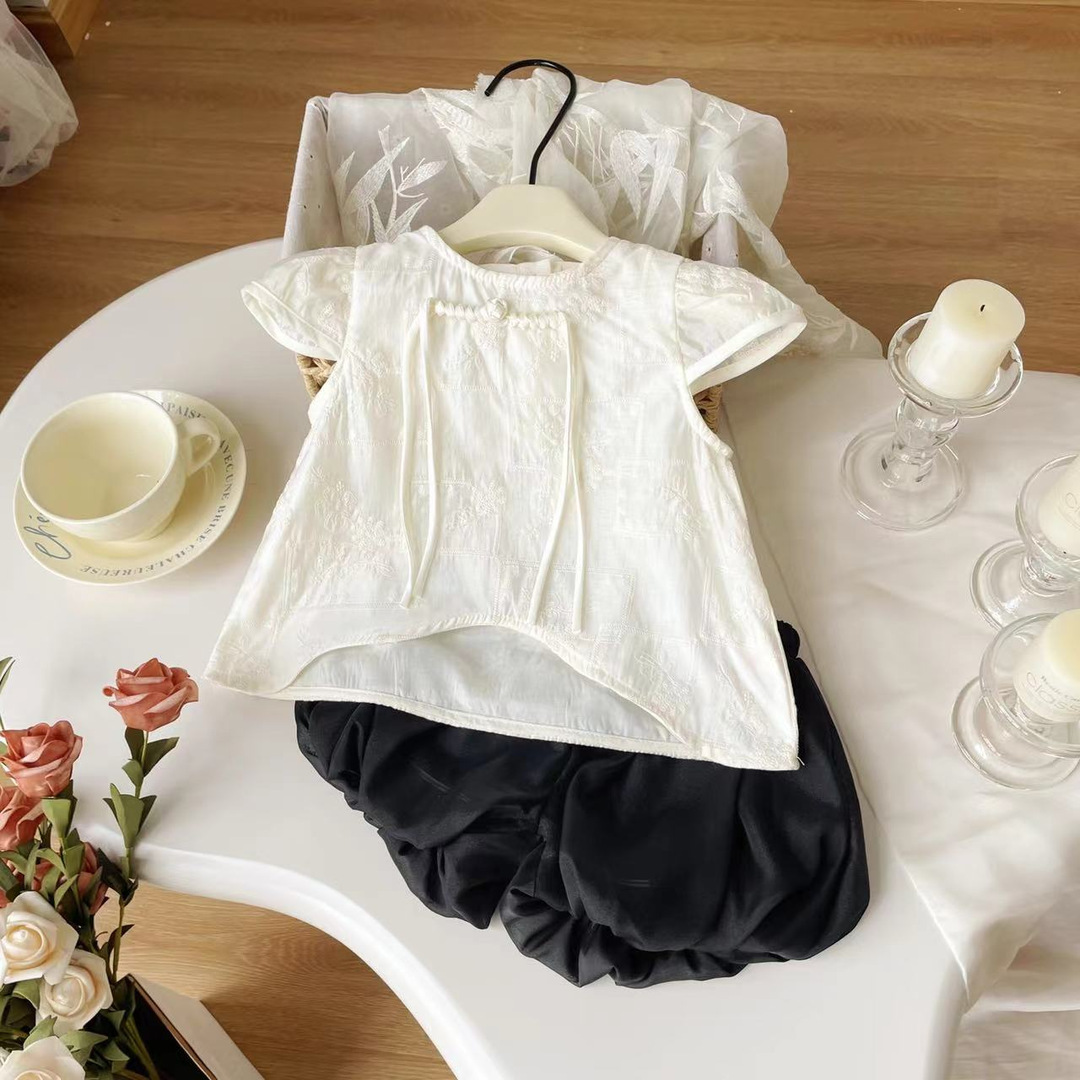 여아복 세트 2024 여름 신상 아동복 한국 스타일 패션 티셔츠 상의 세련된 꽃잎 바지 투피스 세트