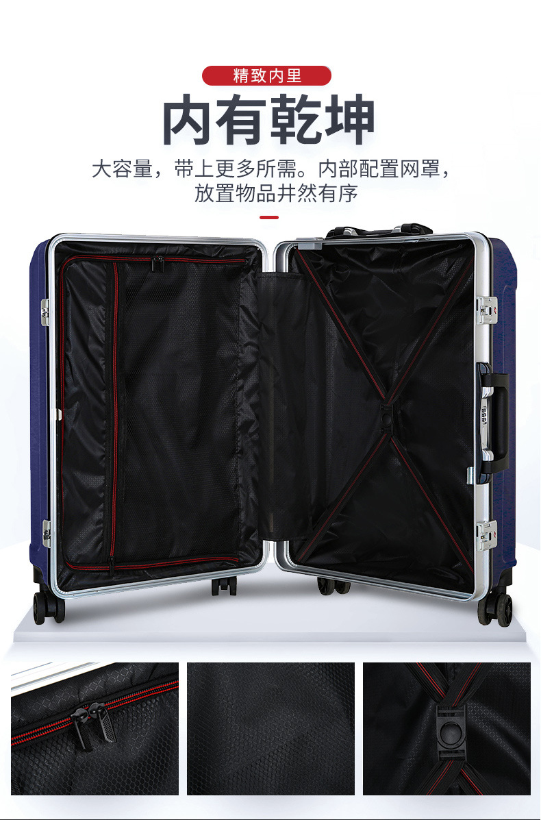 도매 세대 헤어 알루미늄 프레임 트롤리 케이스 남성과 여성의 보편적 인 휠 가방 패션 대용량 암호 상자 가방 학생 상자