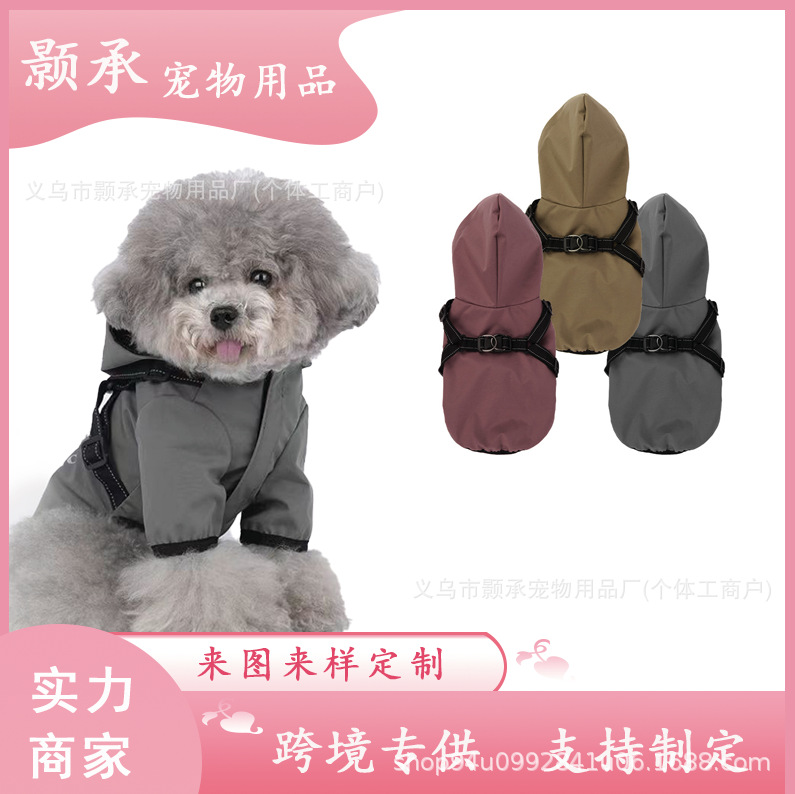 견인줄이 달린 개 비옷 개 옷 개 방수 따뜻한 코트 사계절 소형견 비옷스토어 가기