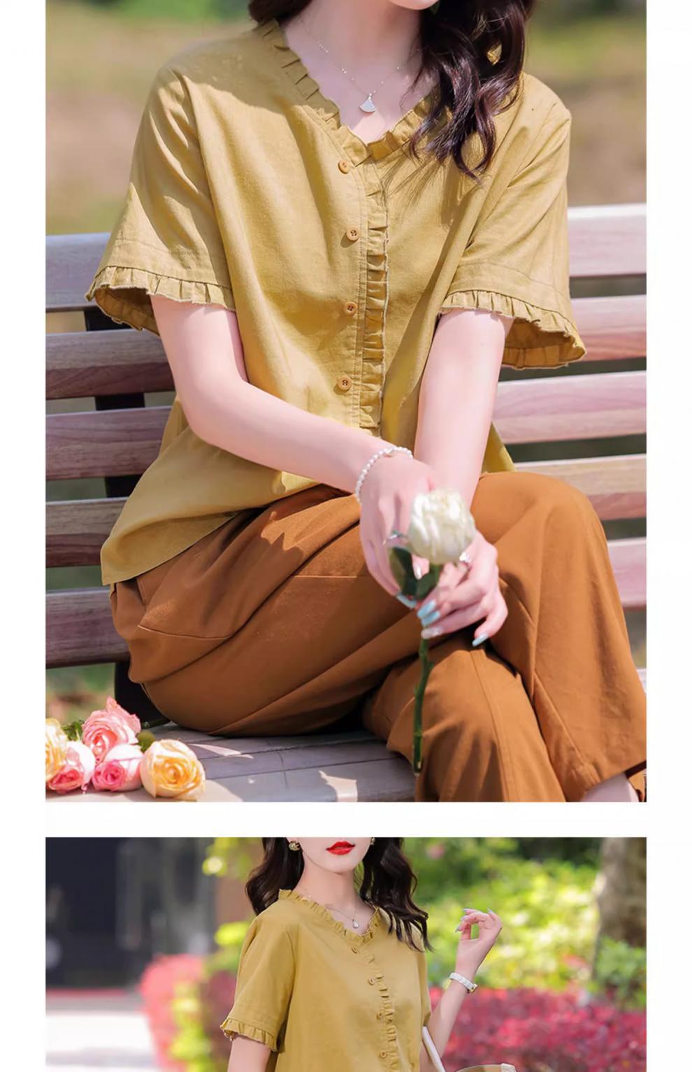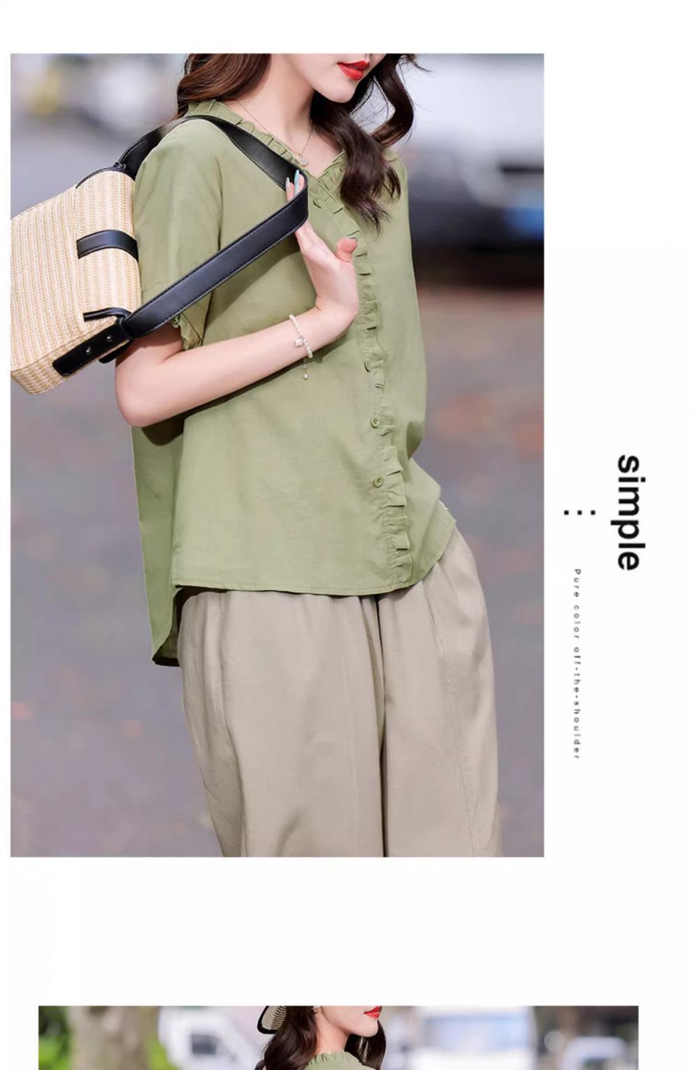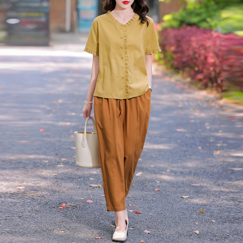 국경 간 면화와 리넨 세트 여성 여름 새로운 서양식 시대 감소 패션 캐주얼 여성의 느슨한 통기성 통근 투피스 세트