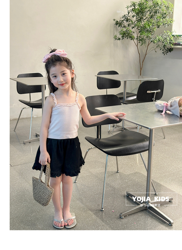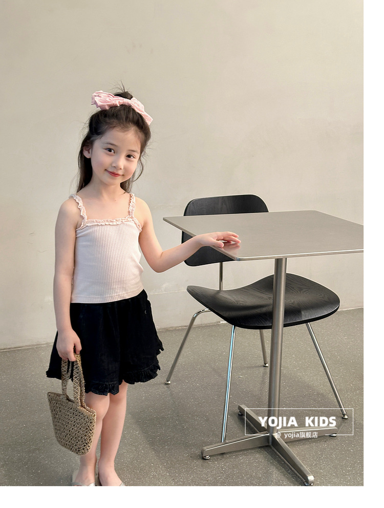 YOJIA Girls 'Sling Summer 2024 새로운 스타일 서양식 아우터웨어 걸스 민소매 탑 어린이 조끼 여름