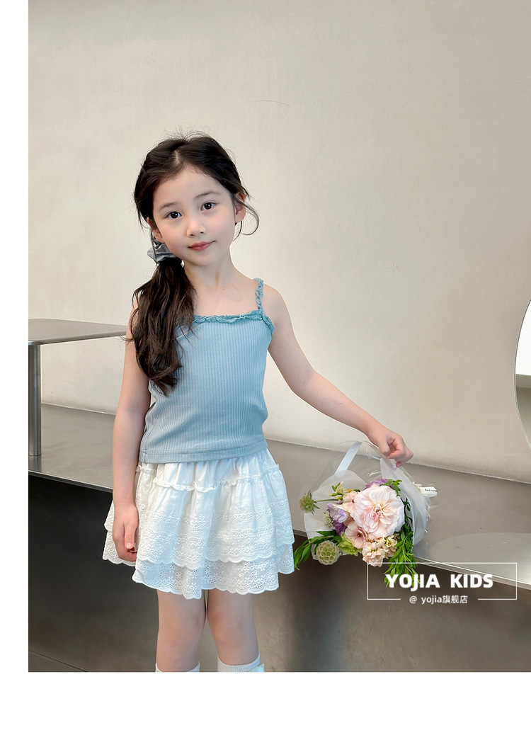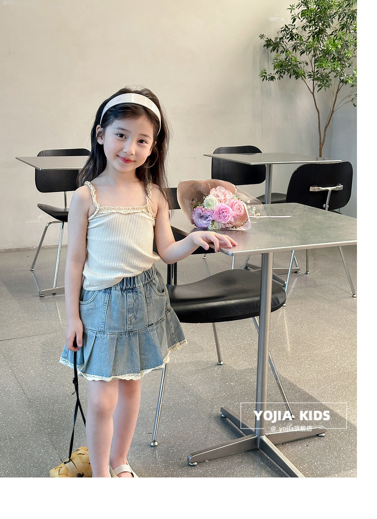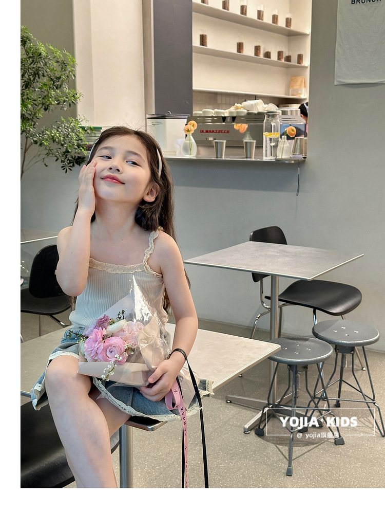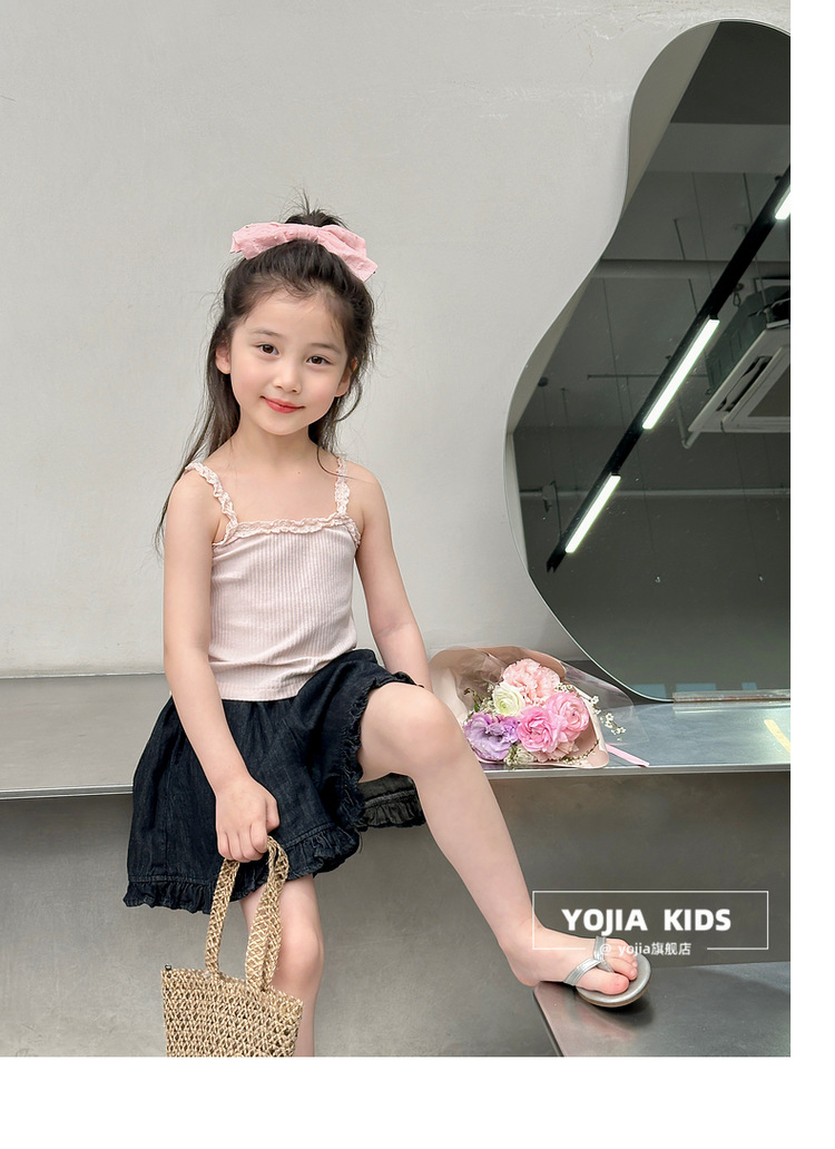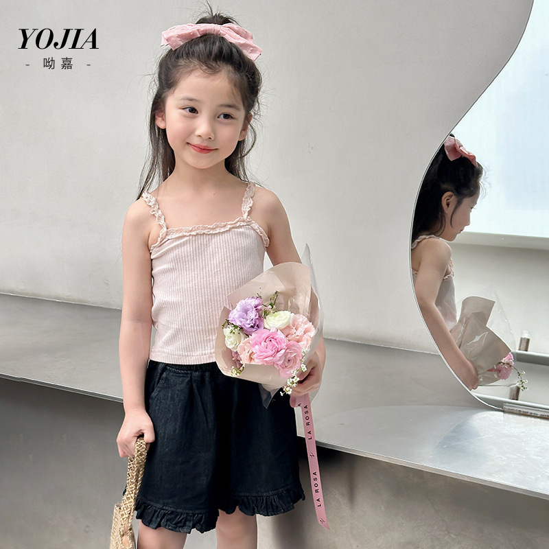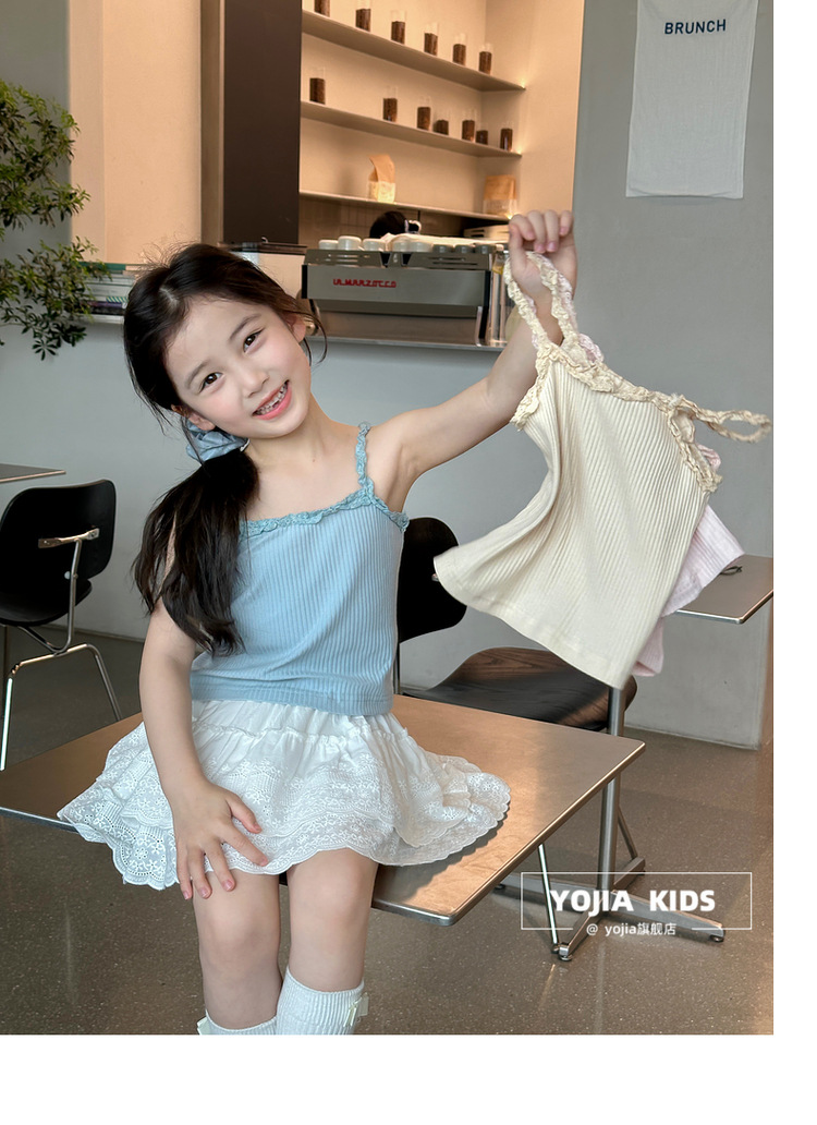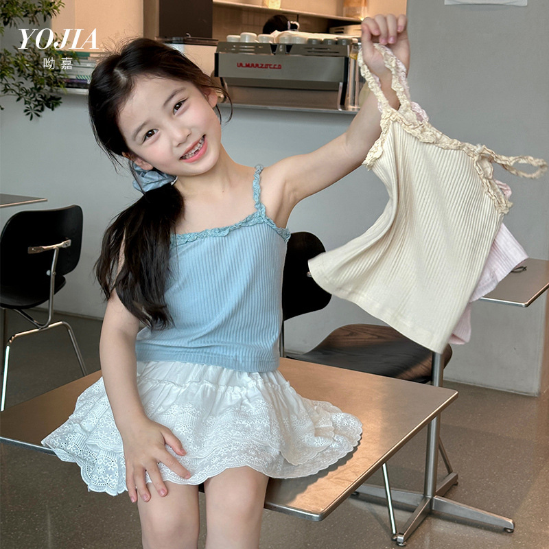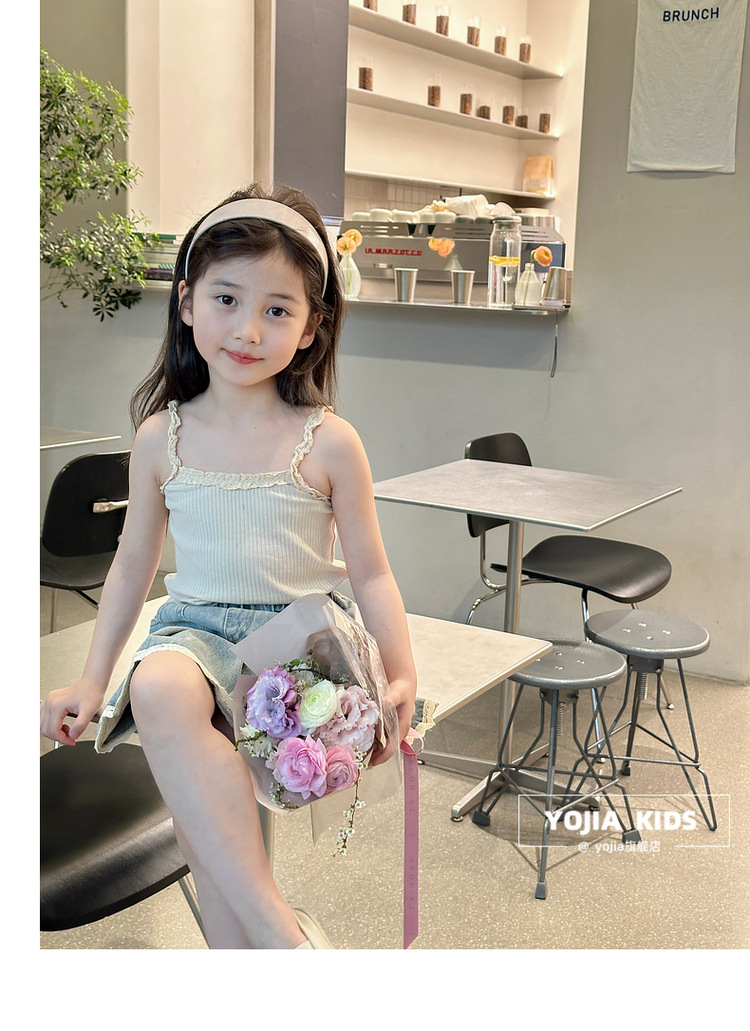 YOJIA Girls 'Sling Summer 2024 새로운 스타일 서양식 아우터웨어 걸스 민소매 탑 어린이 조끼 여름스토어 가기
