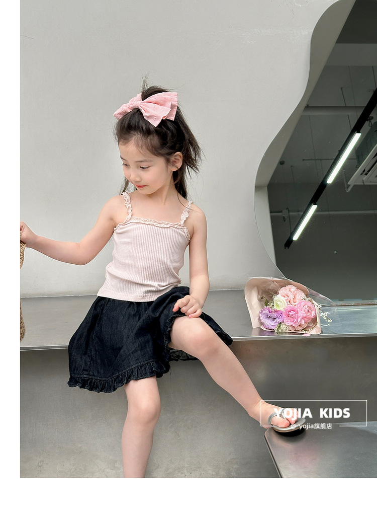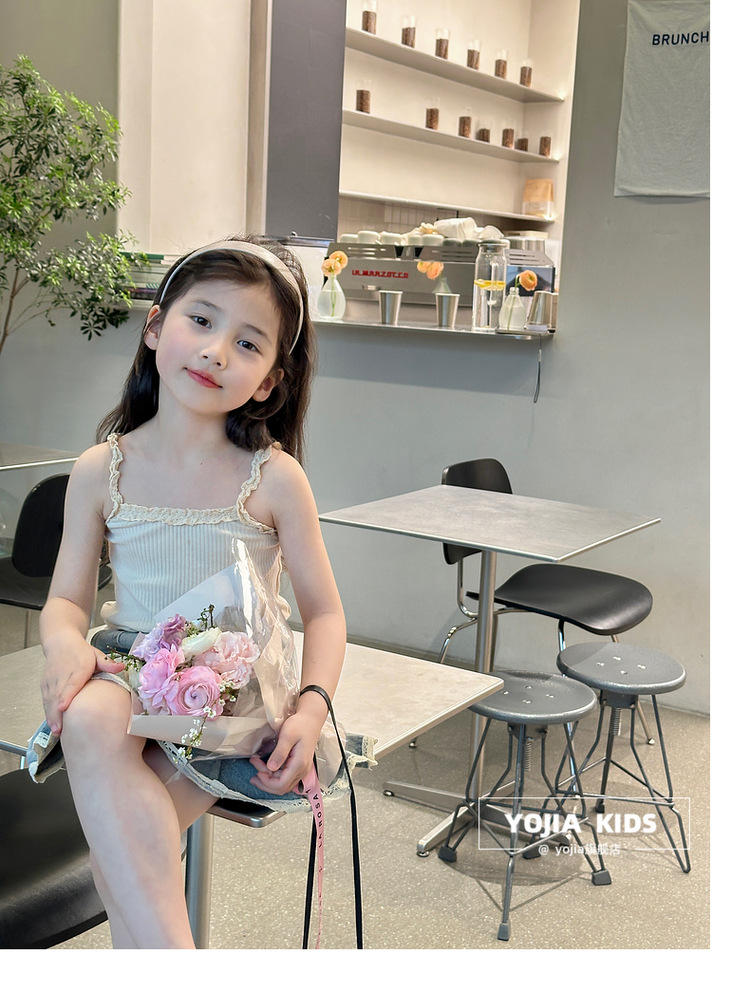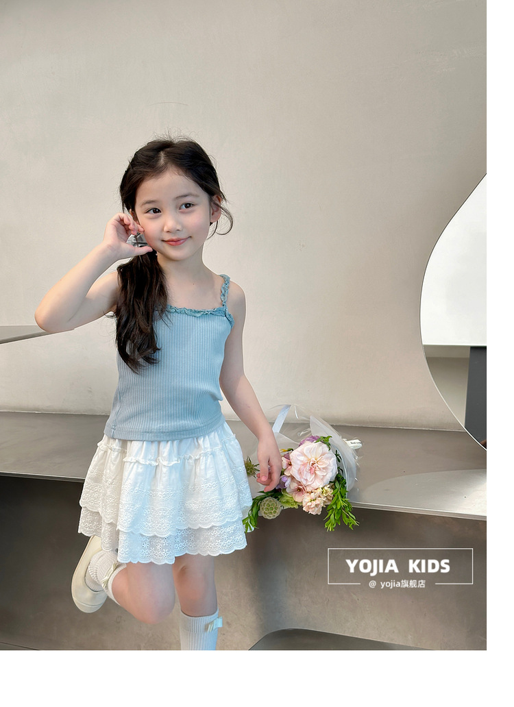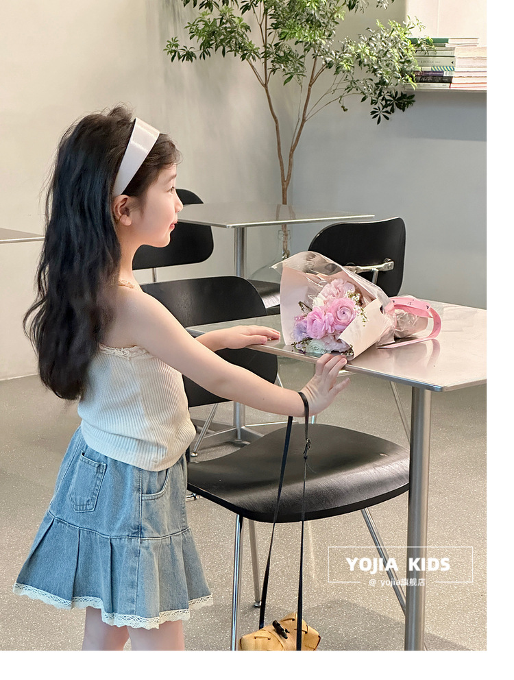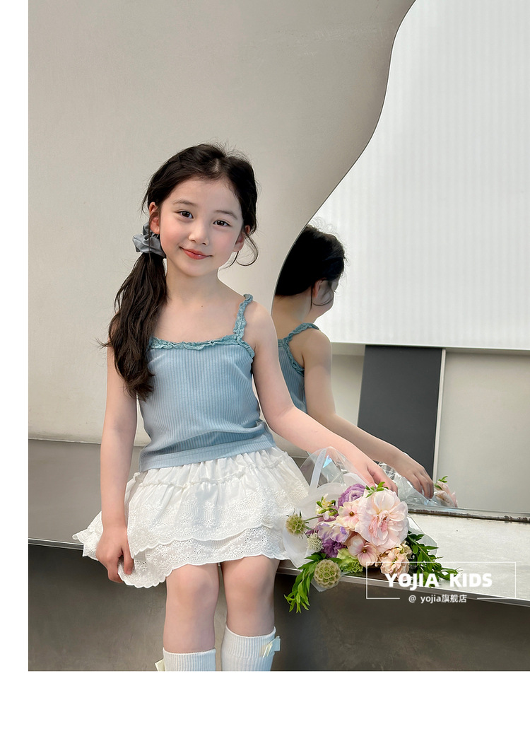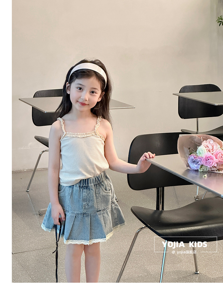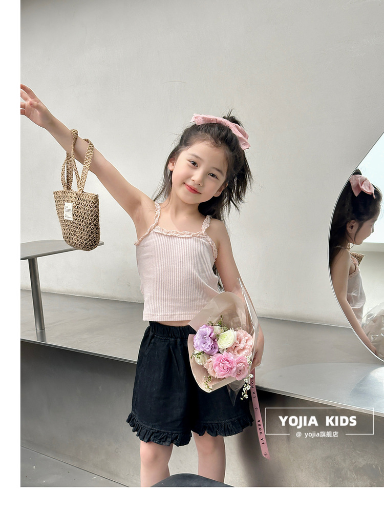 YOJIA Girls 'Sling Summer 2024 새로운 스타일 서양식 아우터웨어 걸스 민소매 탑 어린이 조끼 여름스토어 가기
