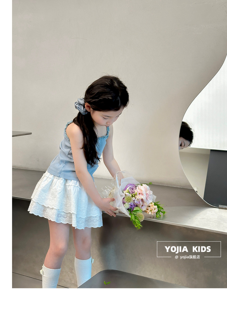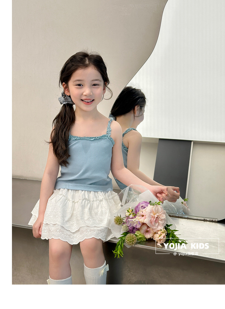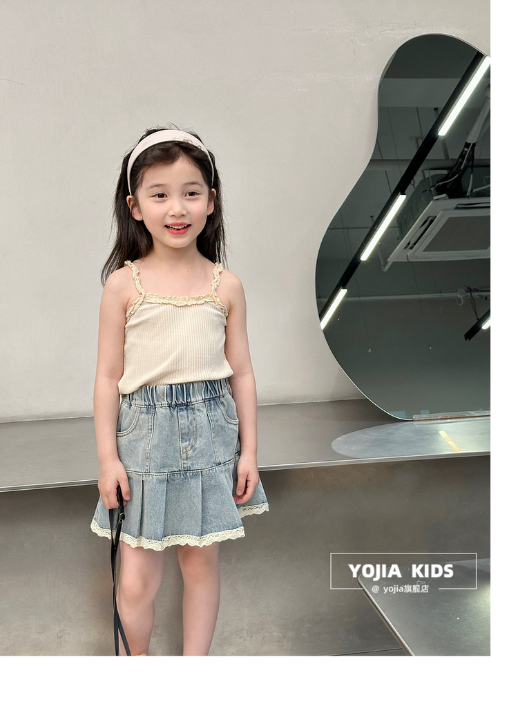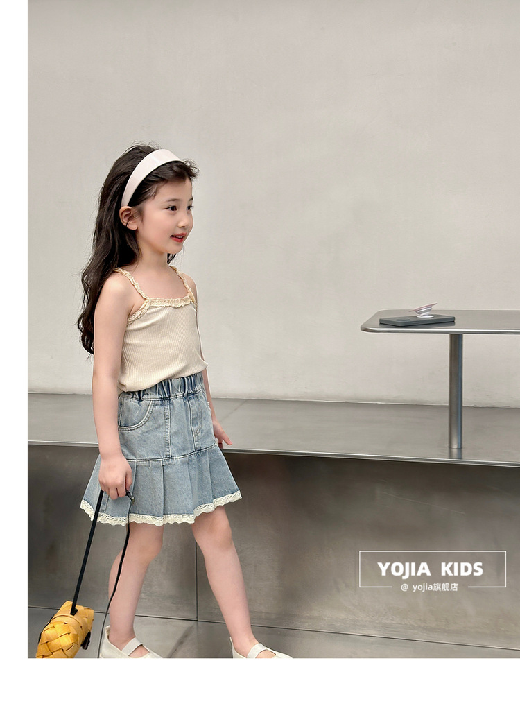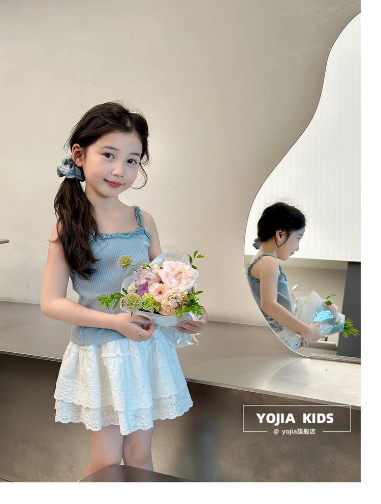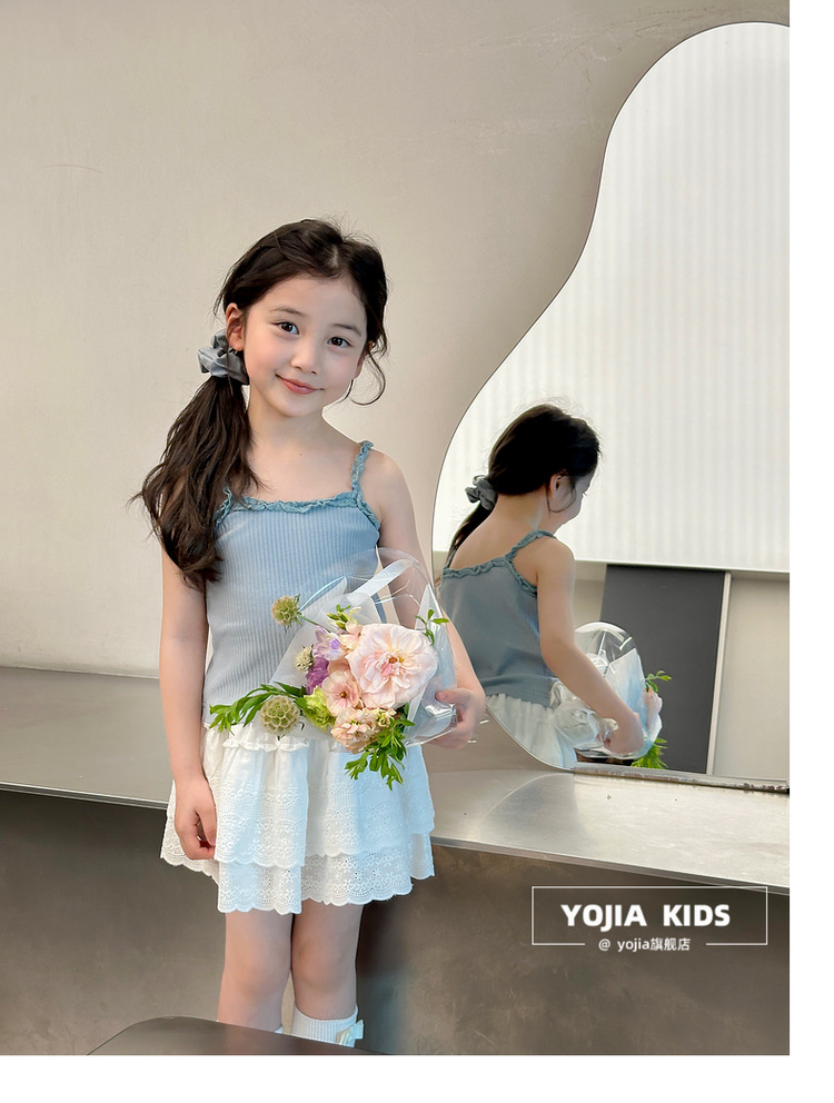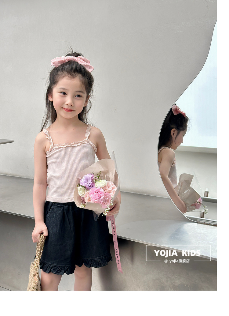 YOJIA Girls 'Sling Summer 2024 새로운 스타일 서양식 아우터웨어 걸스 민소매 탑 어린이 조끼 여름스토어 가기