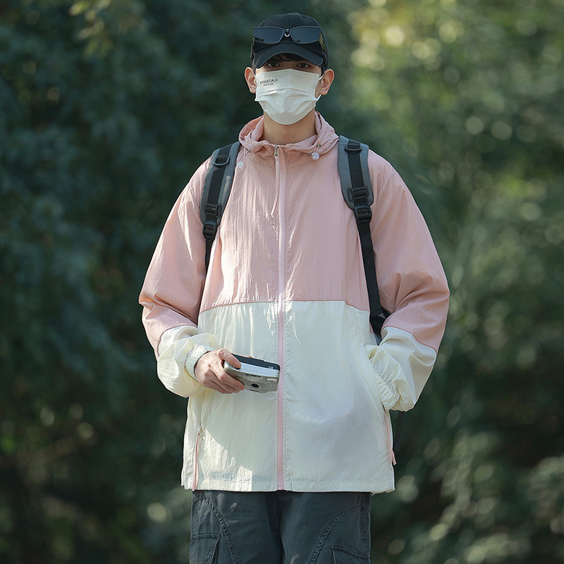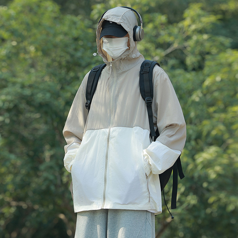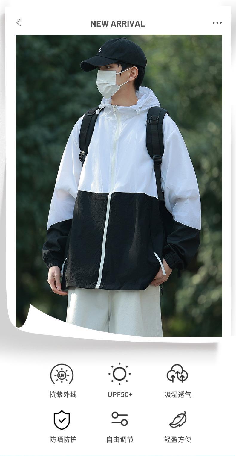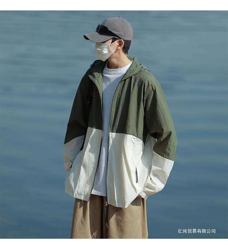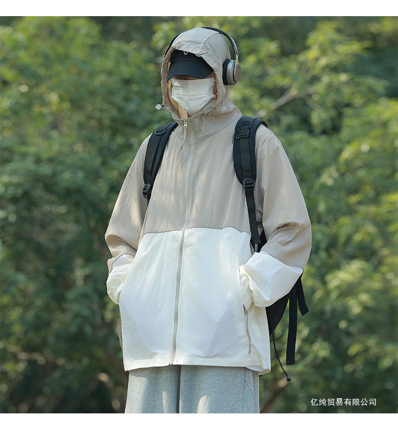 유명 브랜드와 같은 스타일의 아이스 실크 자외선 차단 의류, 남성용 여름 후드 스킨웨어, 야외 자외선 차단 통기성 배색 낚시복스토어 가기