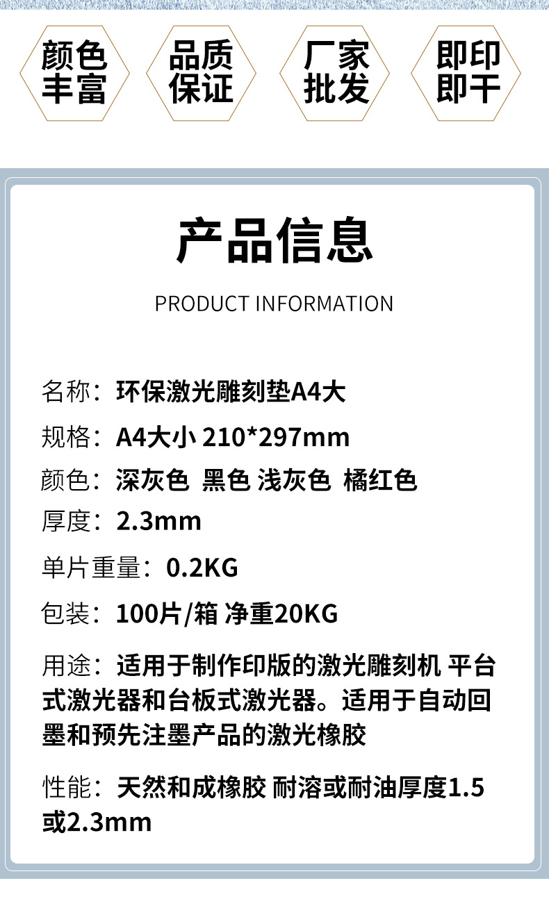 Zhuoda 잉크 씰 레이저 조각 고무 매트 무독성 무연 씰 조각 재료 도매 레이저 조각 매트스토어 가기
