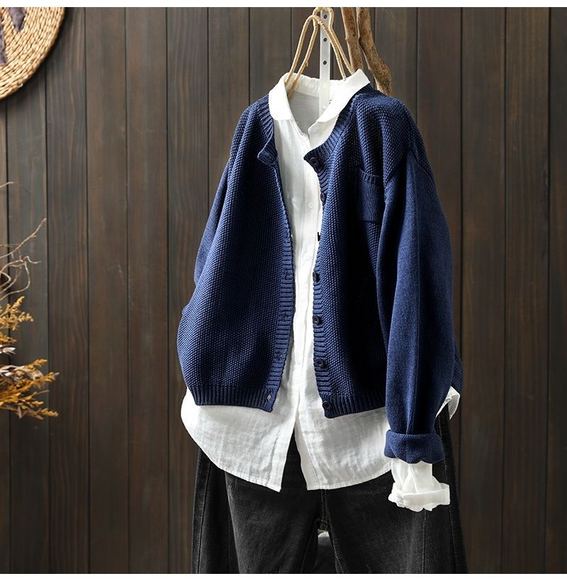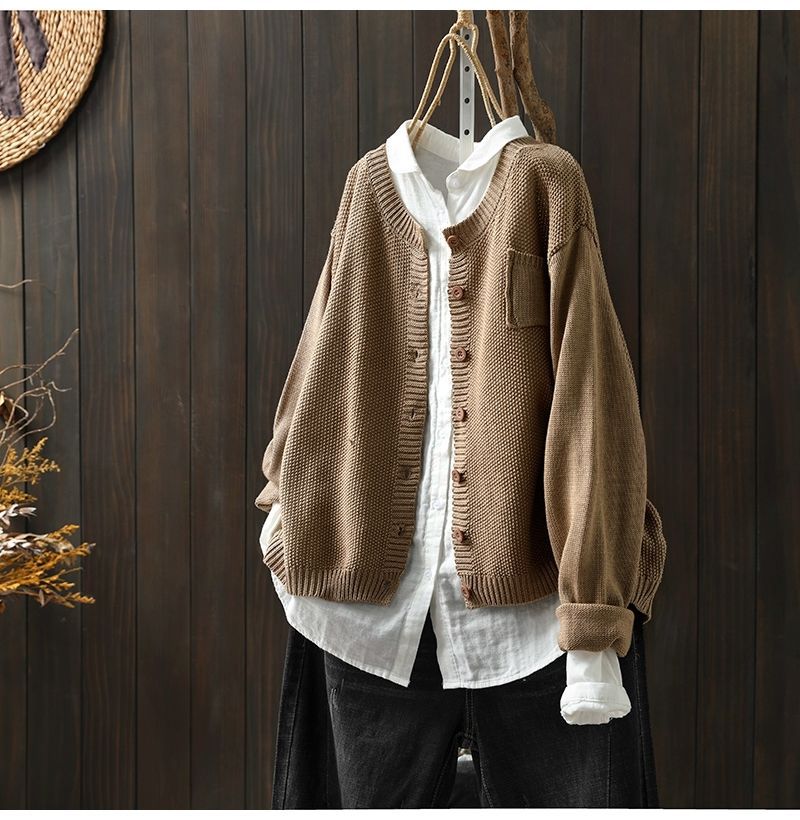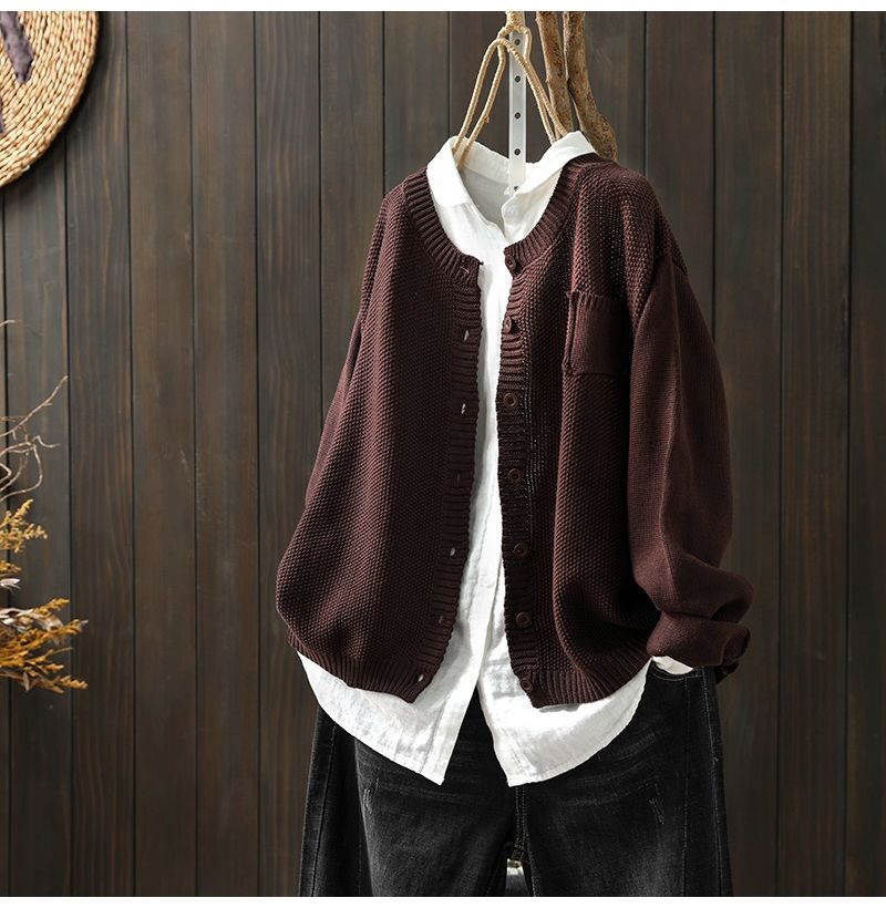 2025 봄, 가을 니트 카디건 자켓 여성 복고풍 문학 느슨한 캐주얼 다목적 긴팔 스웨터 한국 스타일스토어 가기