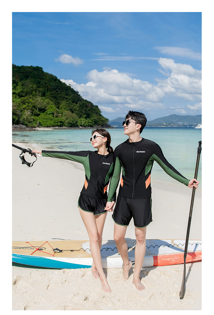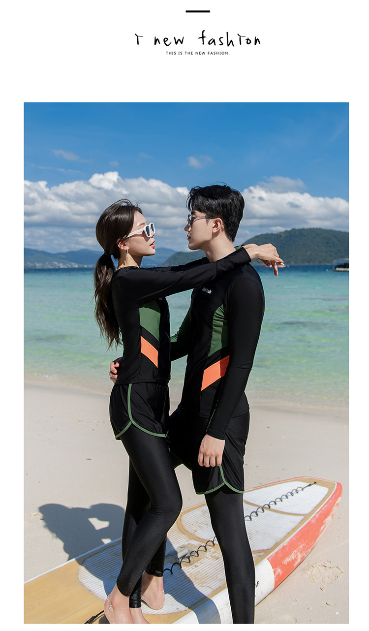 수영복 여성의 새로운 분할 긴 소매 바지 스포츠 복서 보수적 인 온천 수영복 서퍼 세트 커플의 다이빙 세트