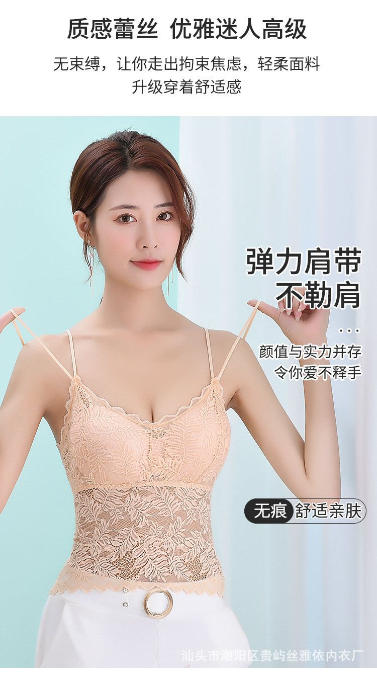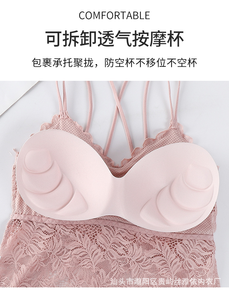 큰 크기 긴 레이스 크로스 뷰티 가슴 패드와 강철 반지 없이 다시 카미솔 조끼