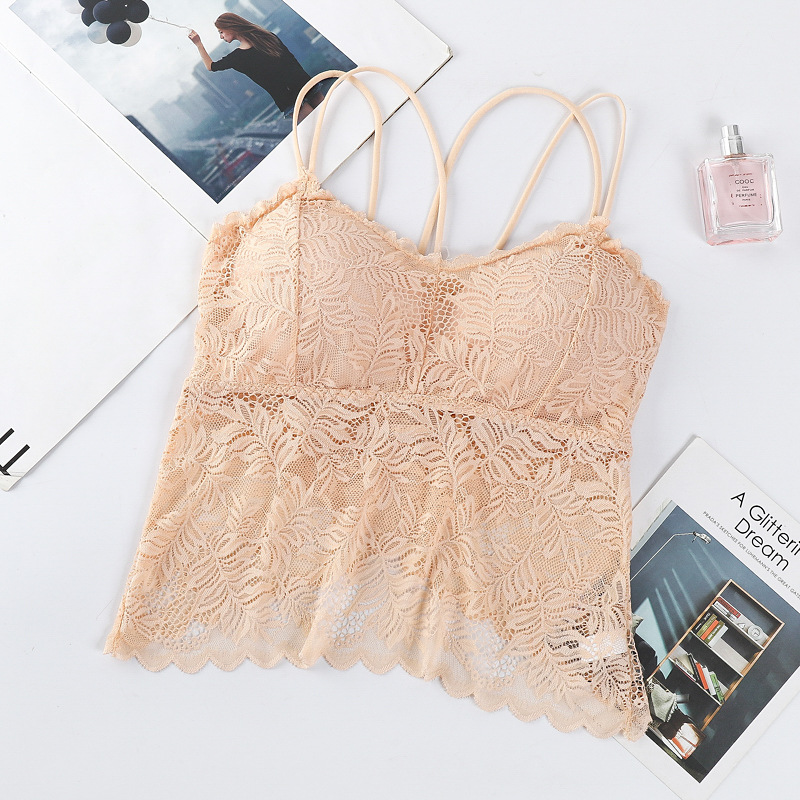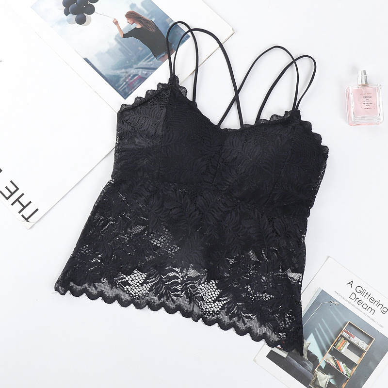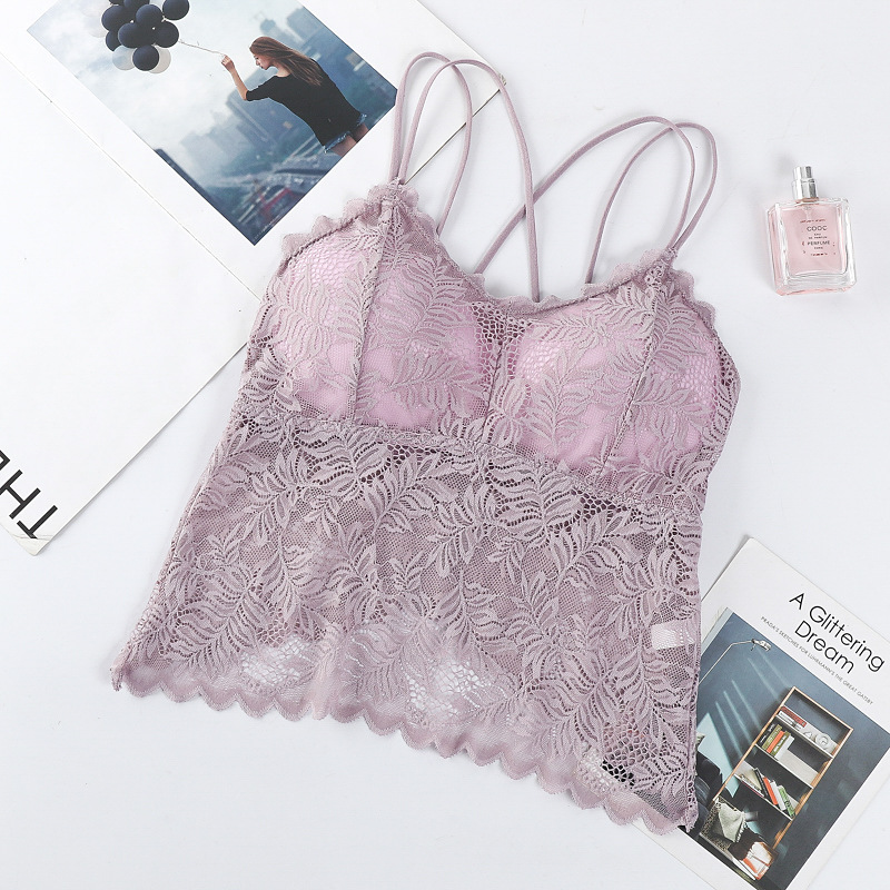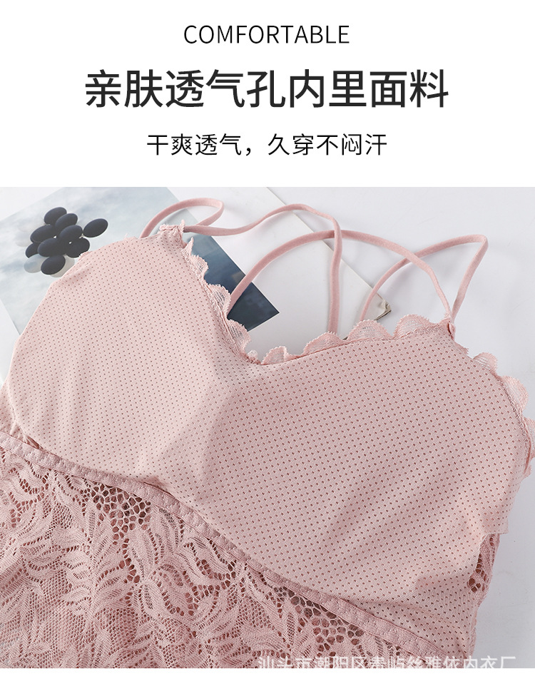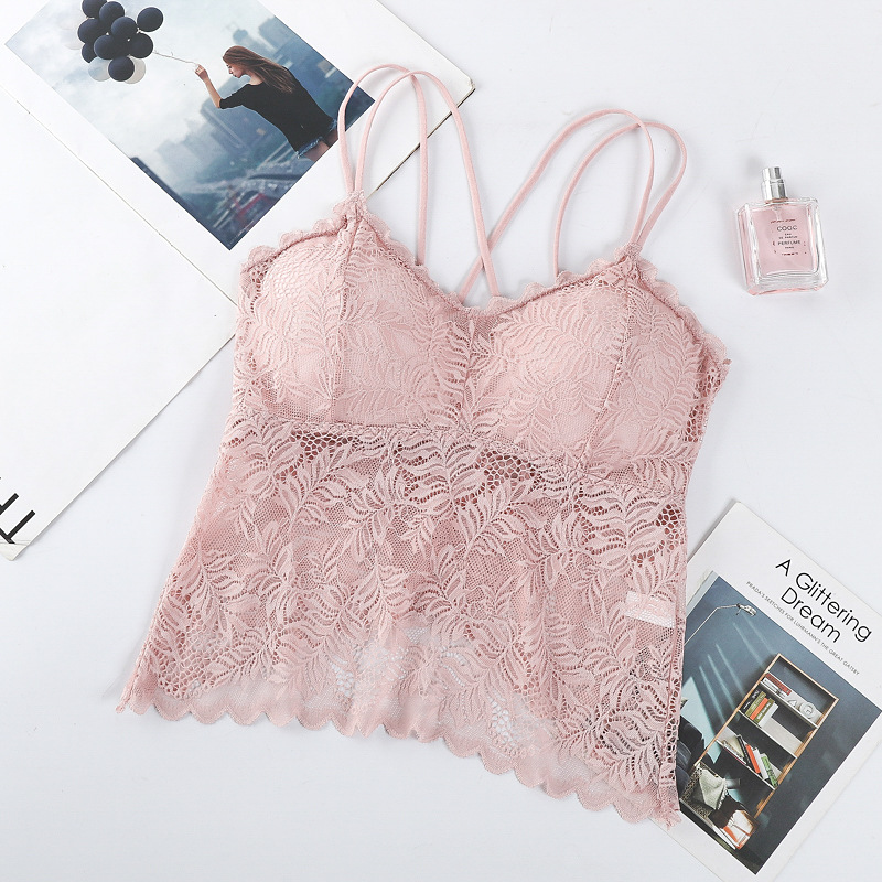 큰 크기 긴 레이스 크로스 뷰티 가슴 패드와 강철 반지 없이 다시 카미솔 조끼스토어 가기