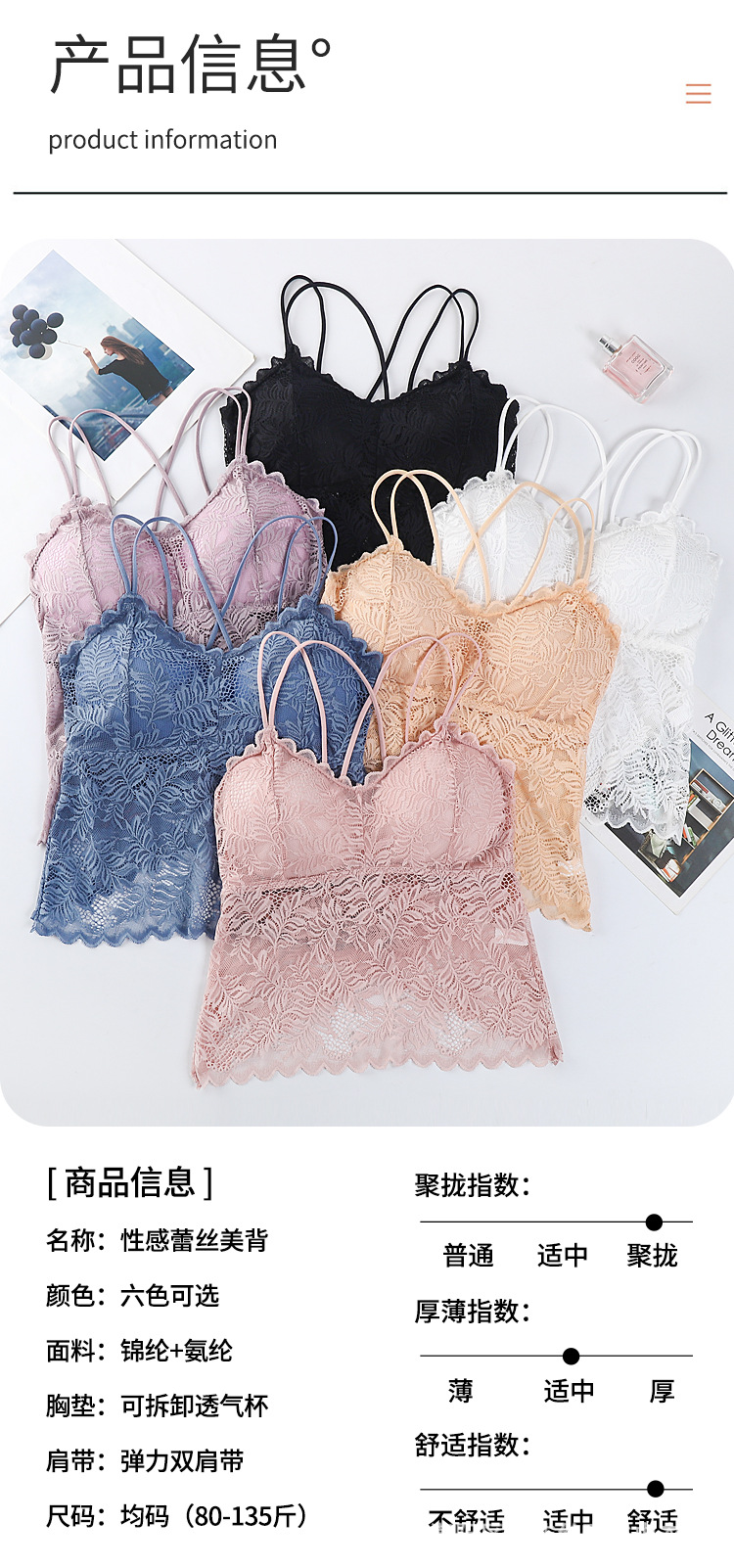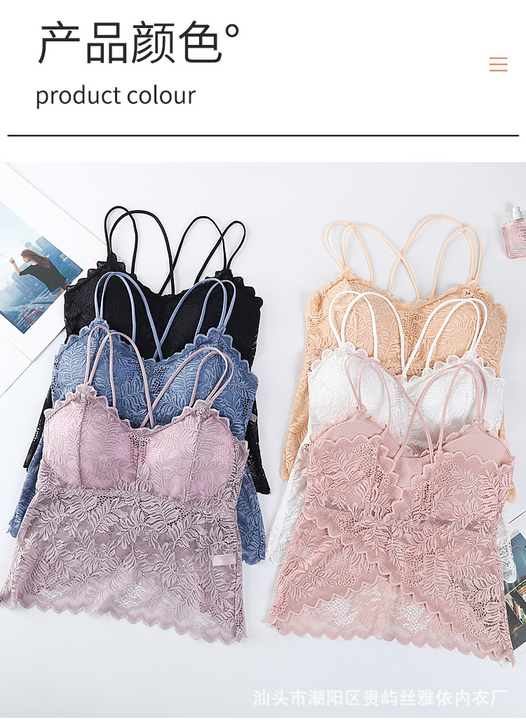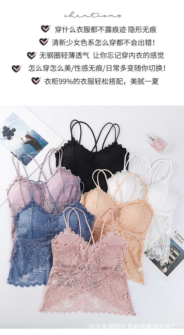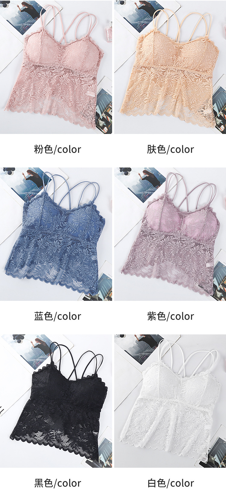 큰 크기 긴 레이스 크로스 뷰티 가슴 패드와 강철 반지 없이 다시 카미솔 조끼스토어 가기