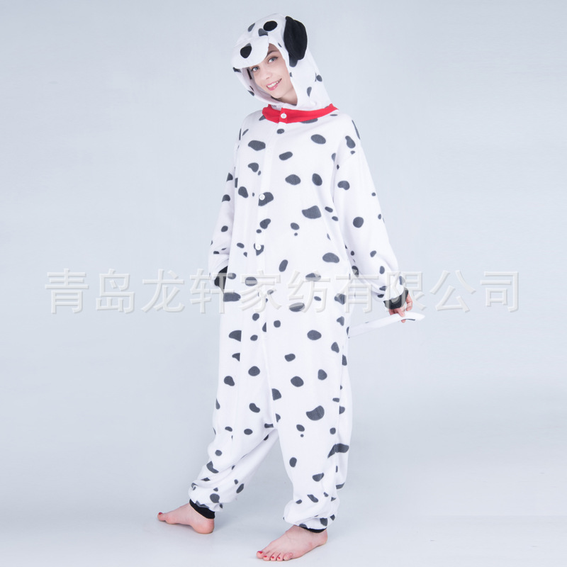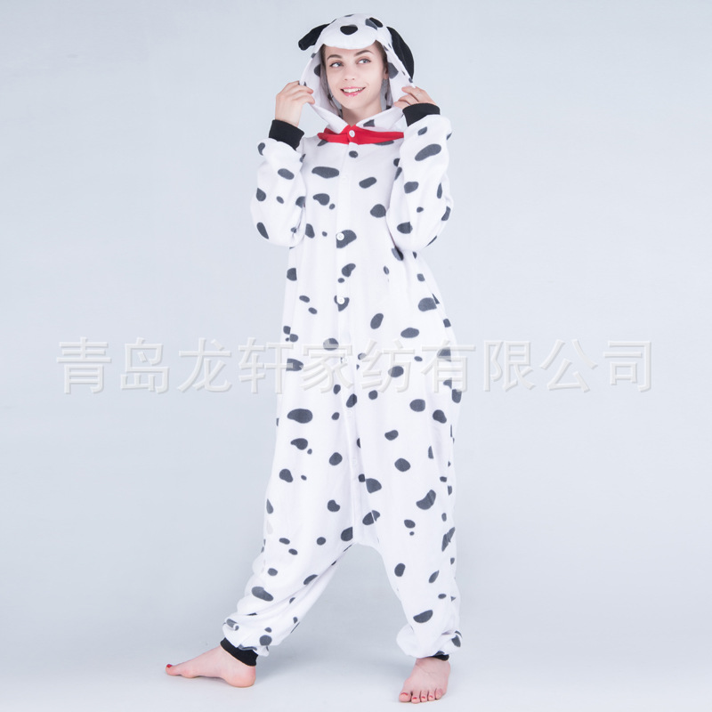 도매 달마시안 동물 만화 결합 된 잠옷 북극 양털 긴 소매 잠옷 연인을위한 가을과 겨울 대외 무역 집 옷스토어 가기