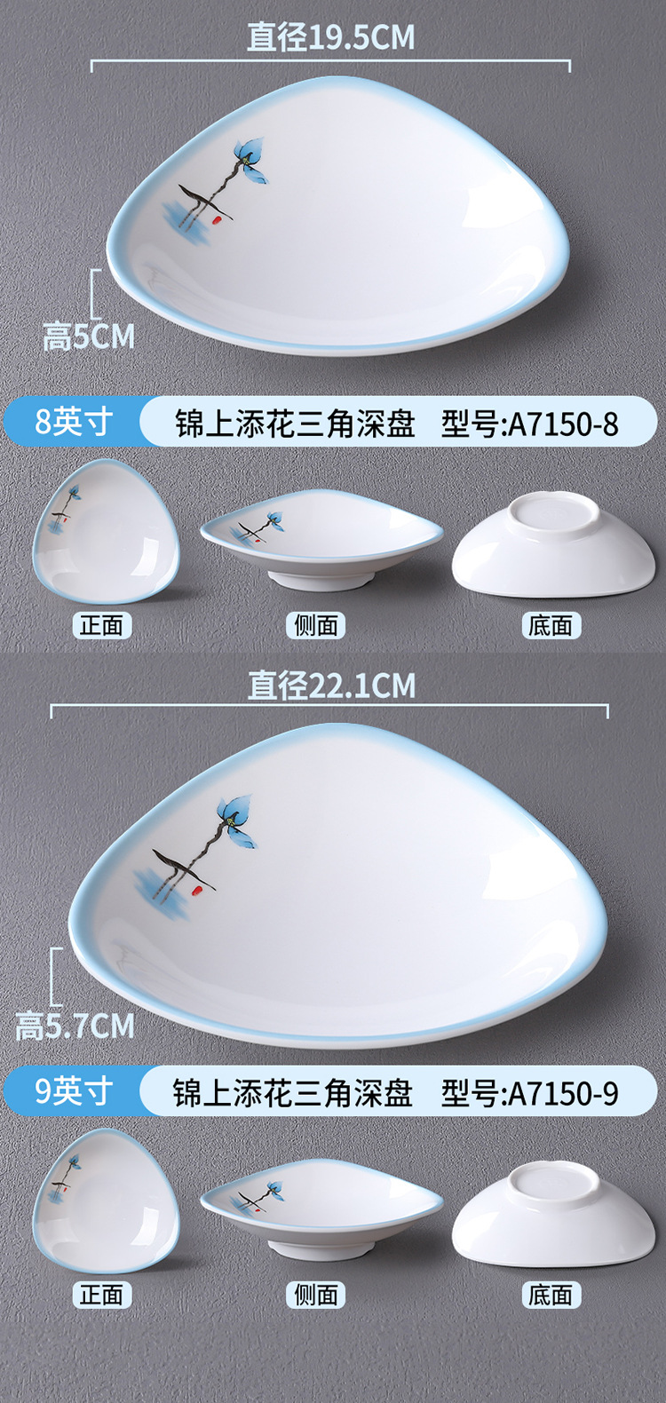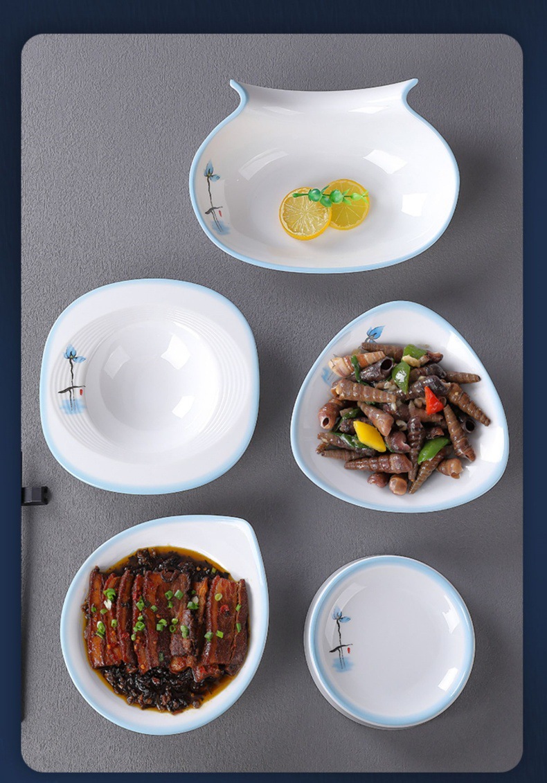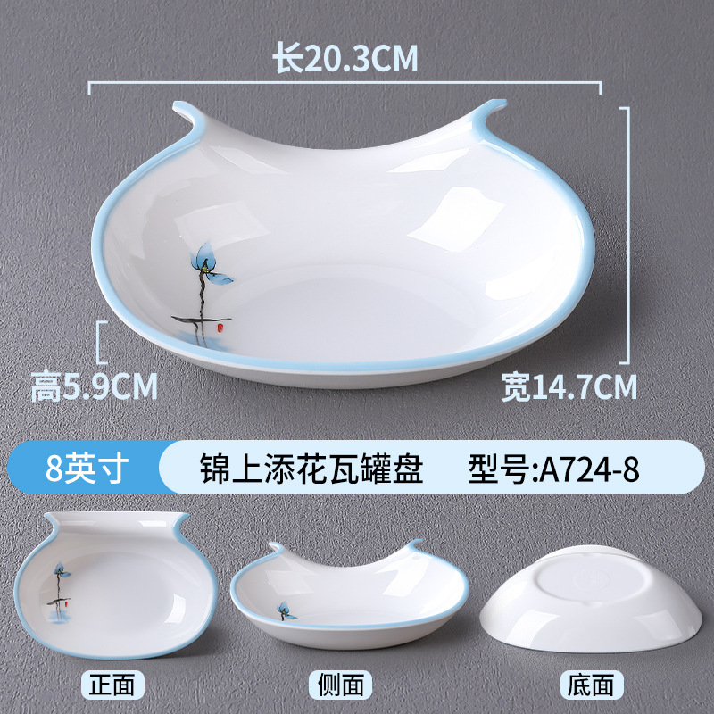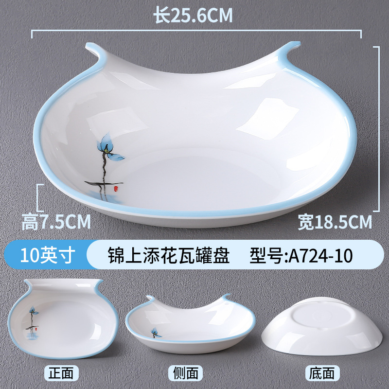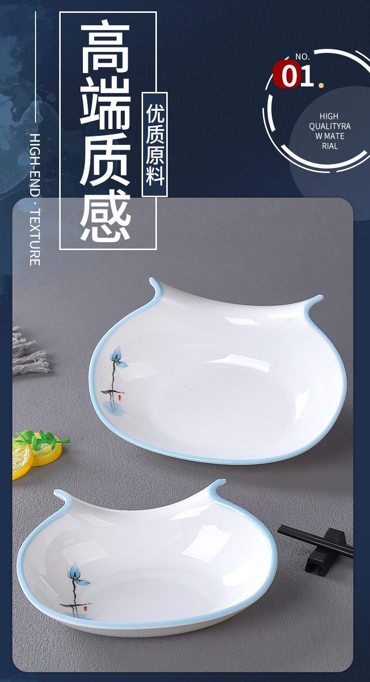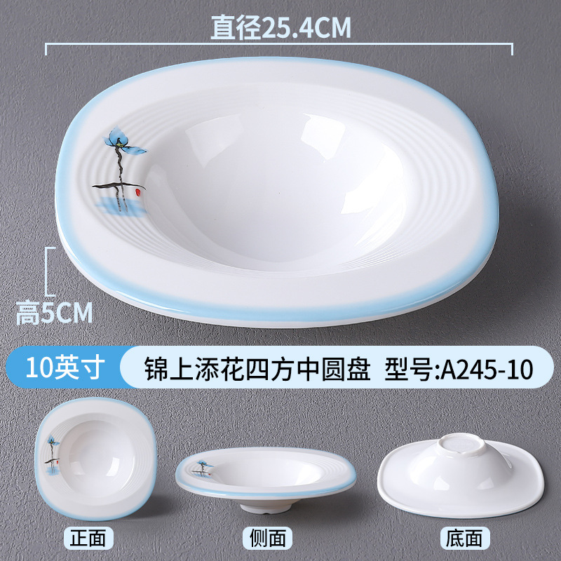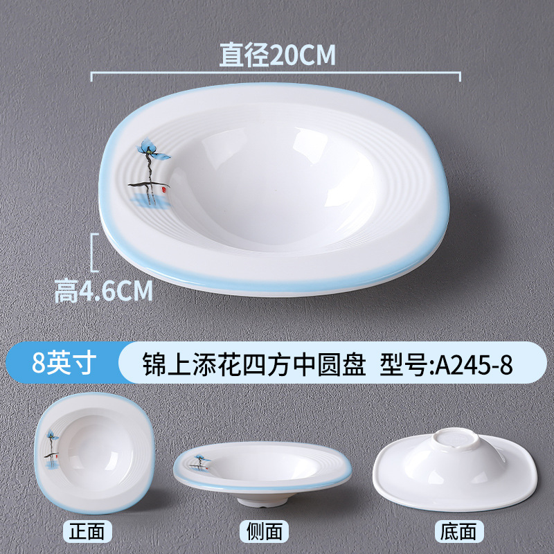 접시, 접시, 높은 원형 접시, 특수 모양의 접시, 깊은 접시, 수프 접시, 사각형 창작 중국 상업용 모조 도자기 식기 접시, 멜라민