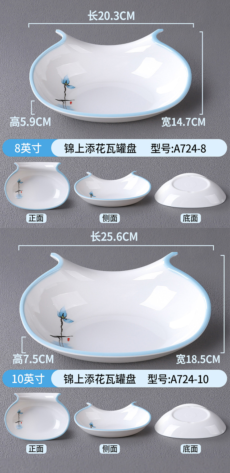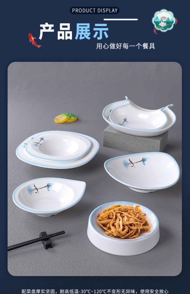 접시, 접시, 높은 원형 접시, 특수 모양의 접시, 깊은 접시, 수프 접시, 사각형 창작 중국 상업용 모조 도자기 식기 접시, 멜라민스토어 가기