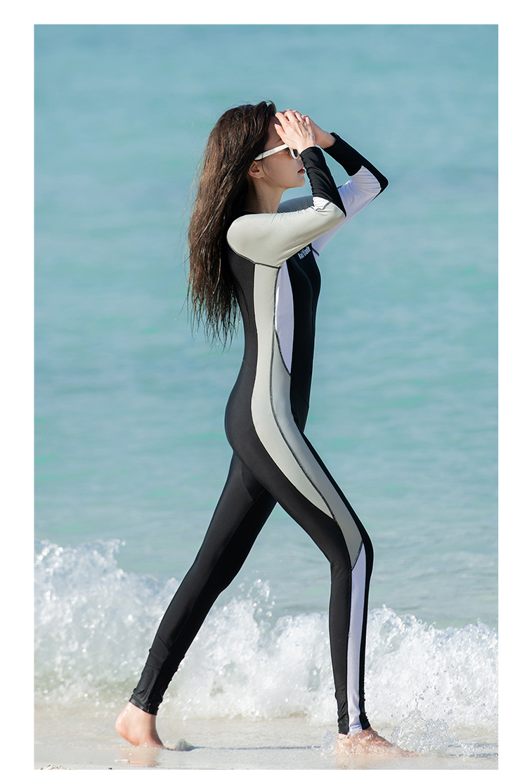 수영복 여성용 원피스 긴팔 바지 전신 수영복 보수적 인 태양 보호 서핑 떠 다니는 다이빙 세트 여성의 몸 슬리밍스토어 가기