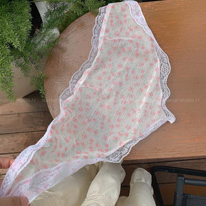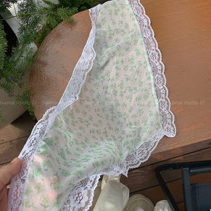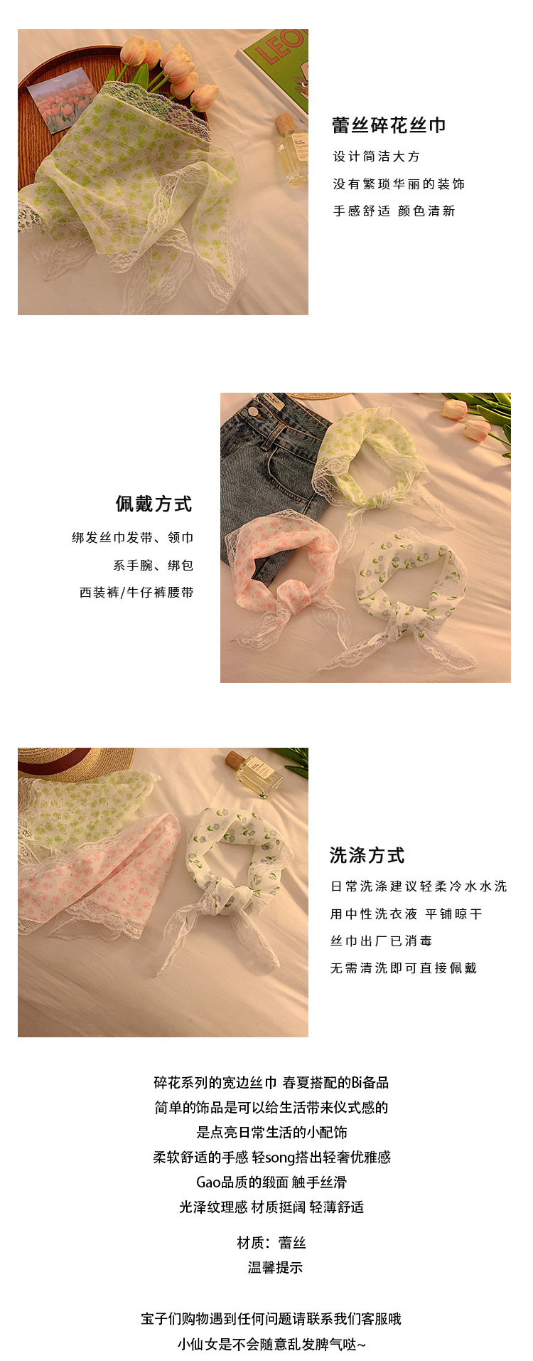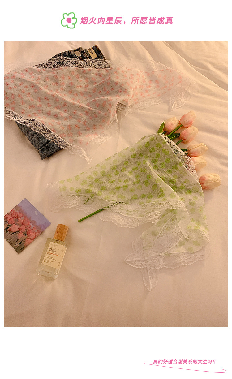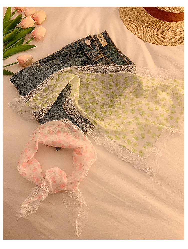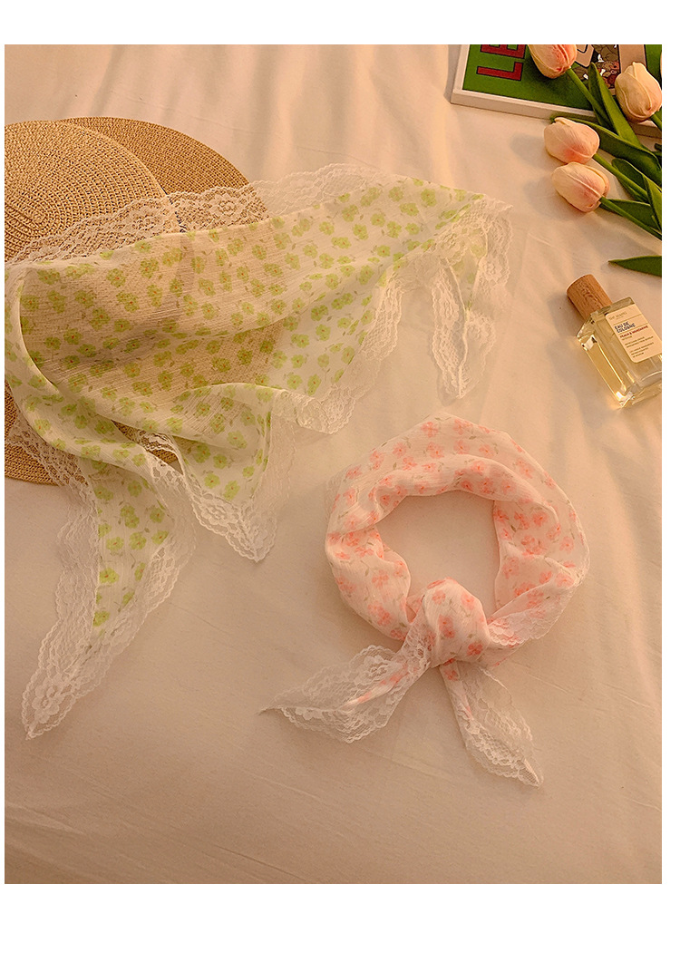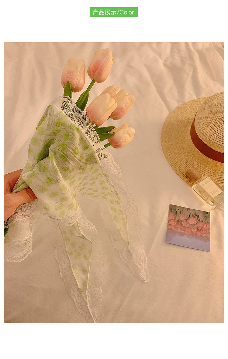 도파민 레이스 플로랄 그린 트라이앵글 스카프 여성 바오터우 목회 스타일 여름 해변 사진 헤어 벨트 실크 스카프