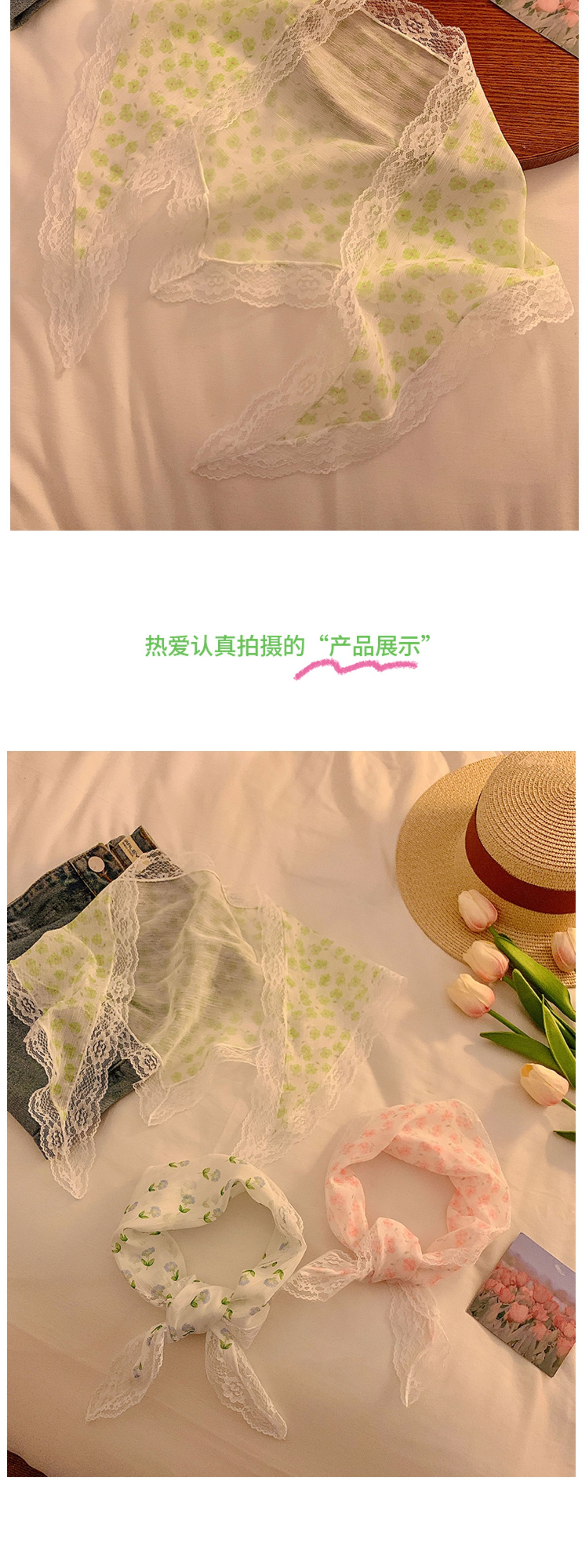 도파민 레이스 플로랄 그린 트라이앵글 스카프 여성 바오터우 목회 스타일 여름 해변 사진 헤어 벨트 실크 스카프스토어 가기