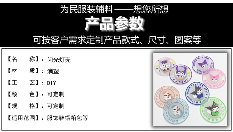 엄선된 신상 의류 액세서리, 만화 캐릭터 쿠로미 원터치 발광 소프트 고무 원형 방수 뱃지 플라스틱 라벨스토어 가기