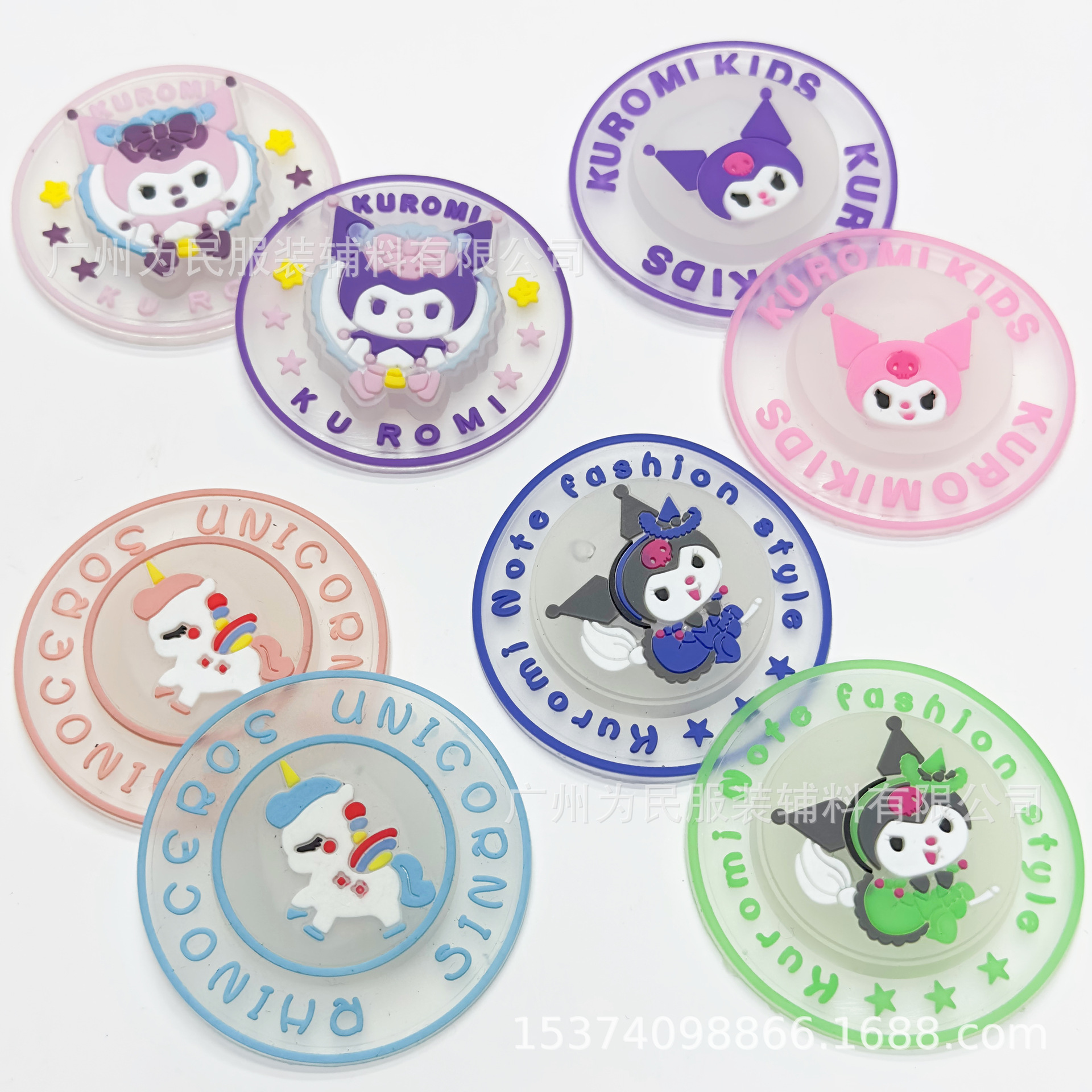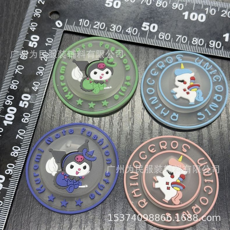 엄선된 신상 의류 액세서리, 만화 캐릭터 쿠로미 원터치 발광 소프트 고무 원형 방수 뱃지 플라스틱 라벨