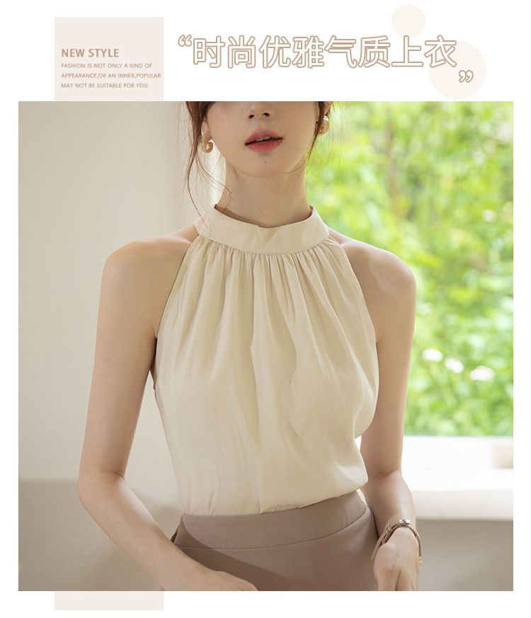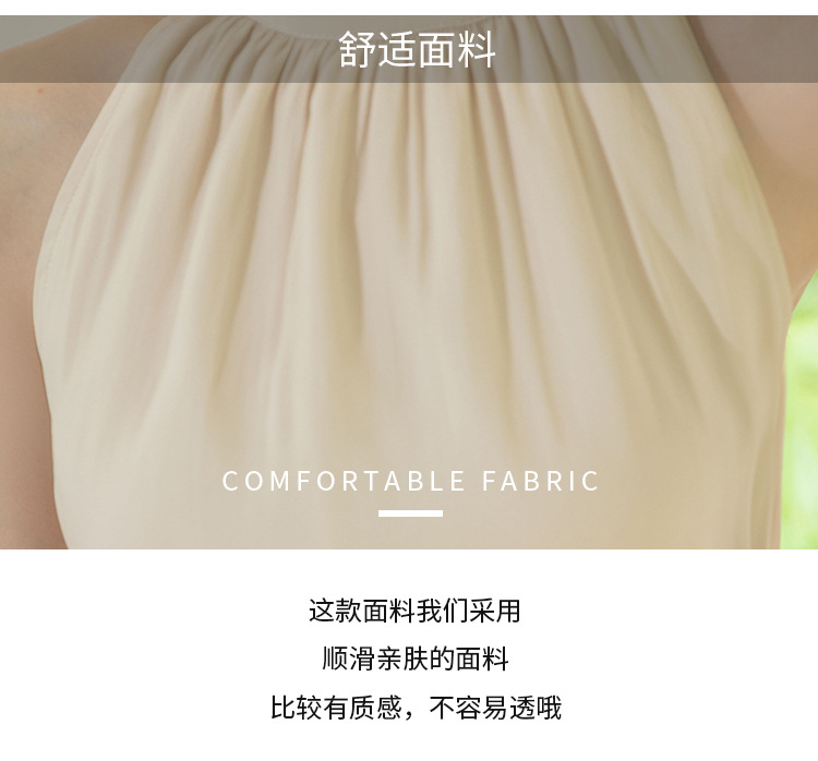 2024 리얼 샷 새로운 교수형 목 민소매 조끼 여름 프랑스 우아한 슬림 핏 섹시한 부드러운 짧은 어깨 슬링