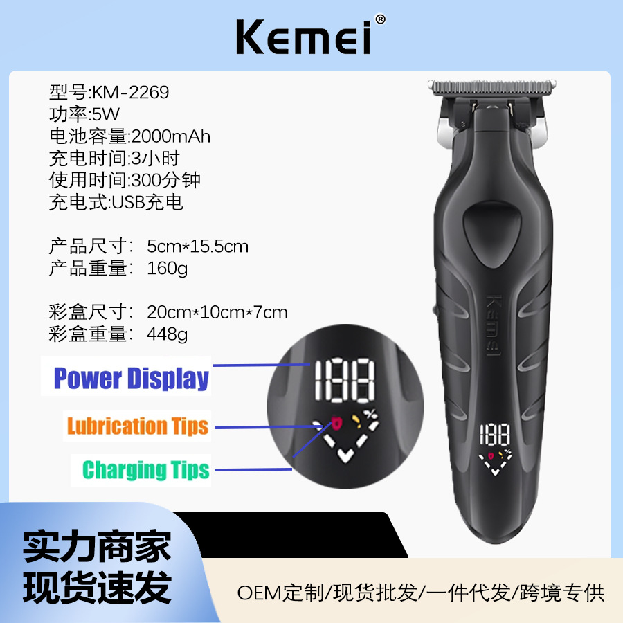 LCD 디스플레이 km-2299 업그레이드 Kemei 전기 클리퍼 KM-2269 전기 클리퍼 USB 오일 헤드 조각 클리퍼