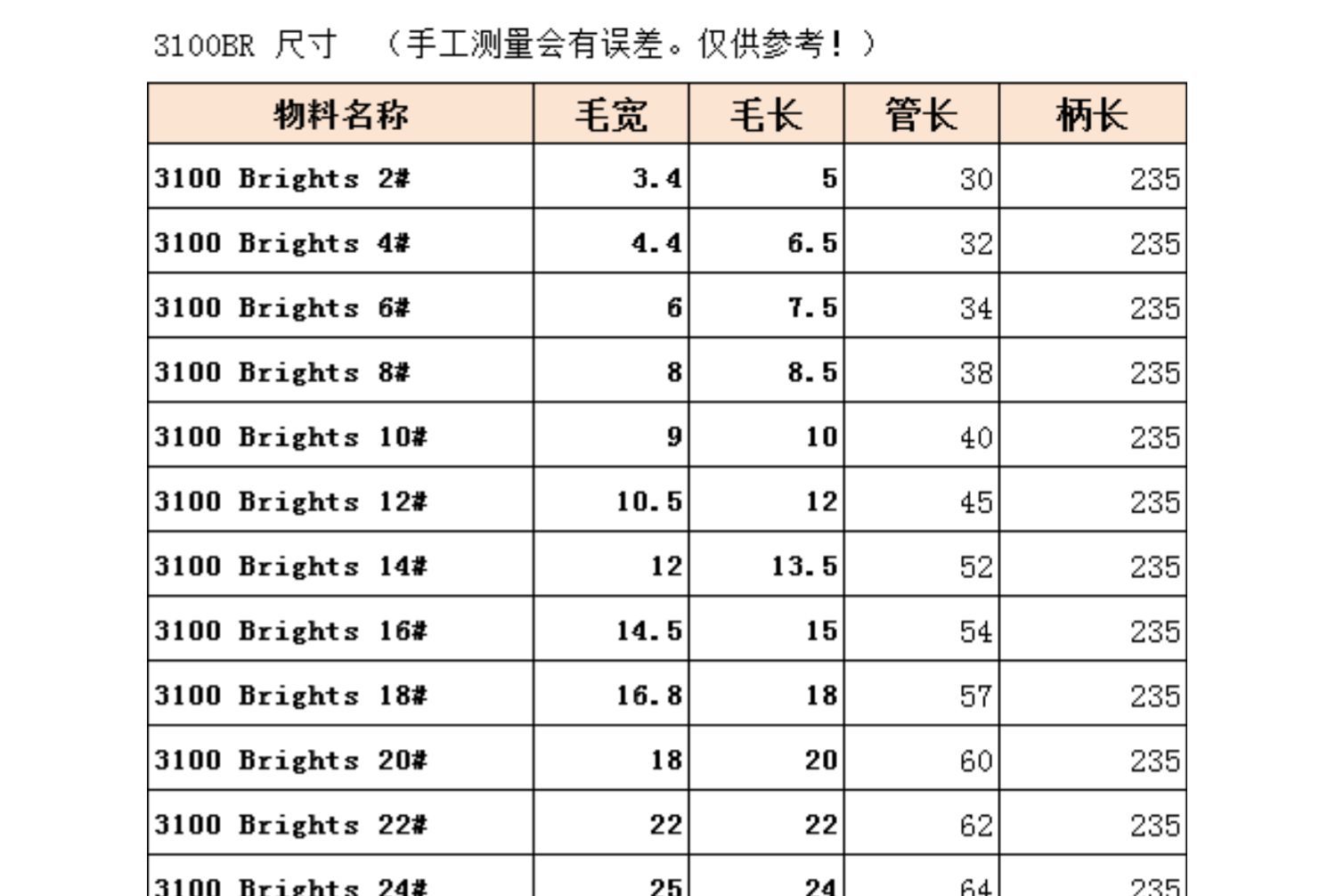 한국 ARTSECRET 강모 플랫 오일 브러시 충칭 강모 오일 브러시 3100BR 오일 브러시